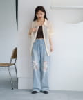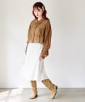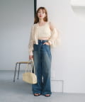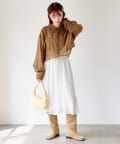 フレアスカートやバルーンパンツなど、ボリューム感のあるボトムスと合わせても◎。
