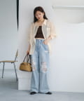 前を開けて羽織りとして着ることで、リラックス感のある大人カジュアルに。