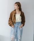 前を開けて羽織りとしても、ボタンを留めてトップス風にも使える万能デザインです。