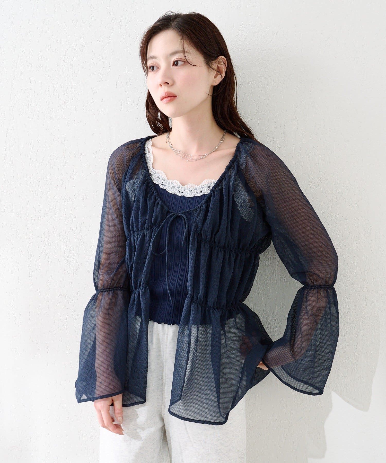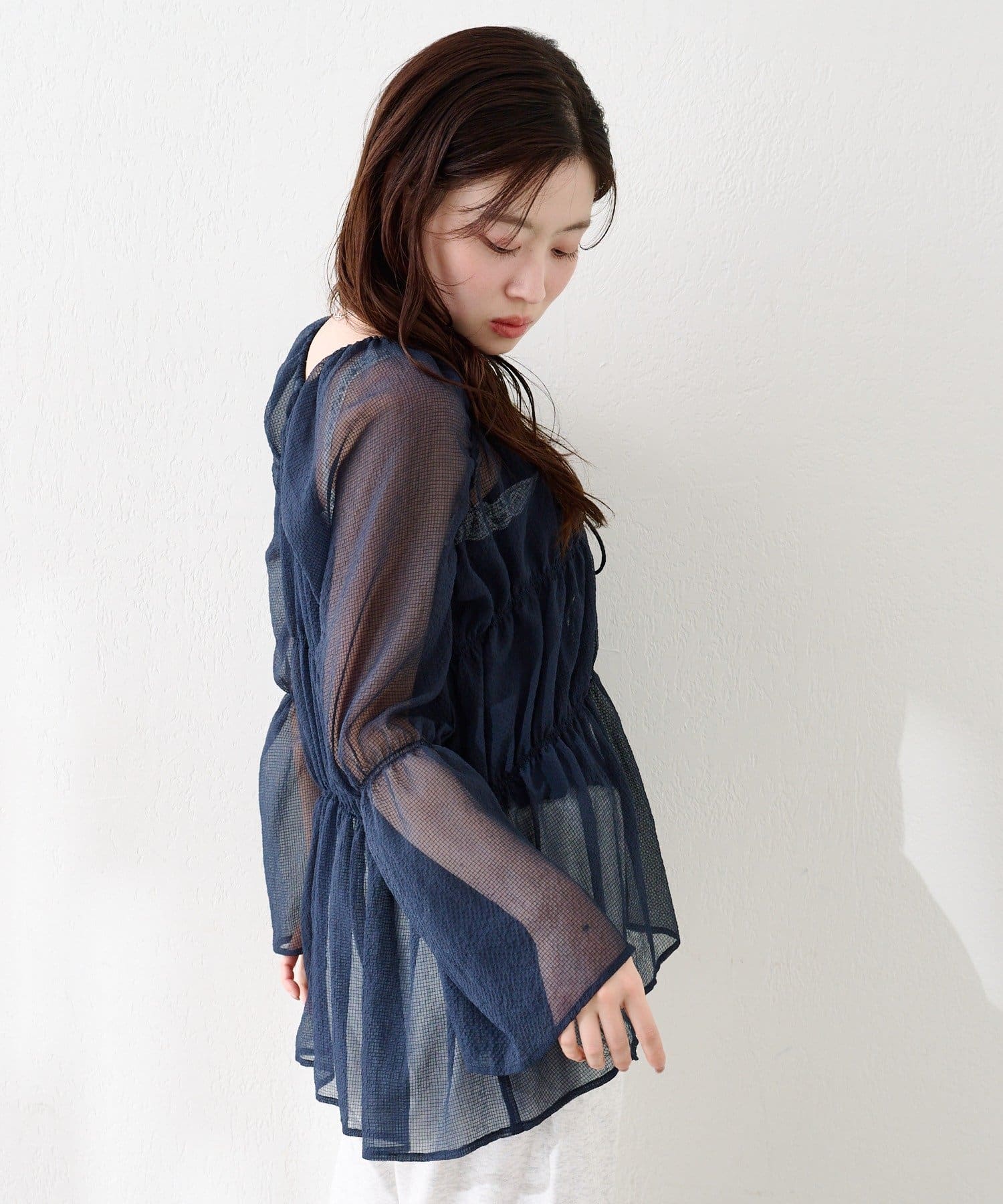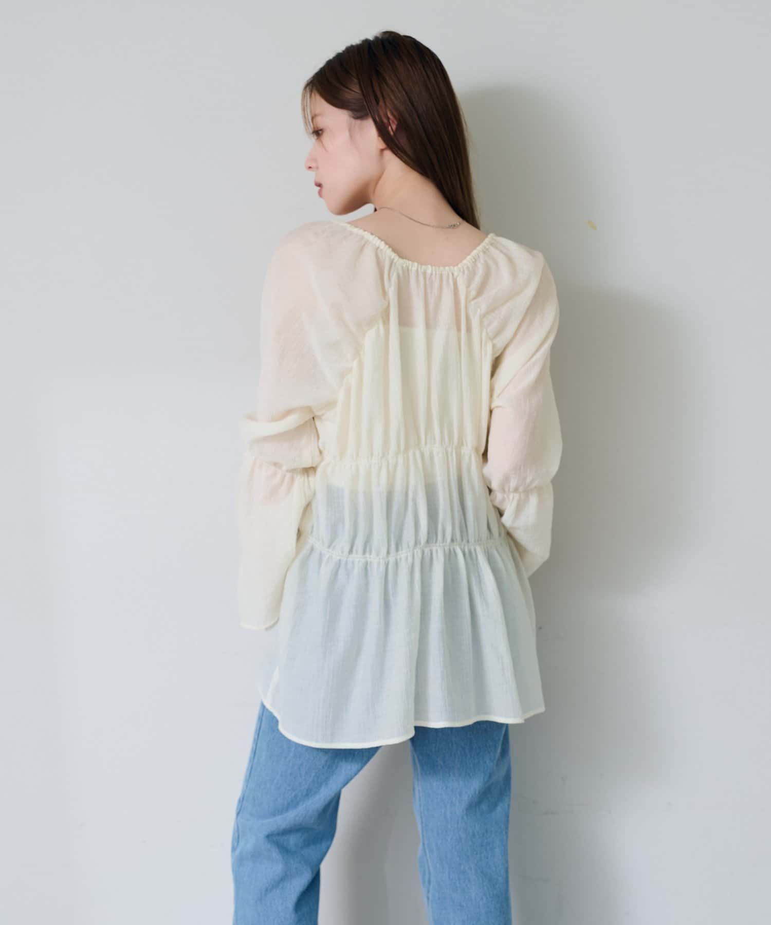 【S.Lサイズ展開】シャーリングシアーブラウス