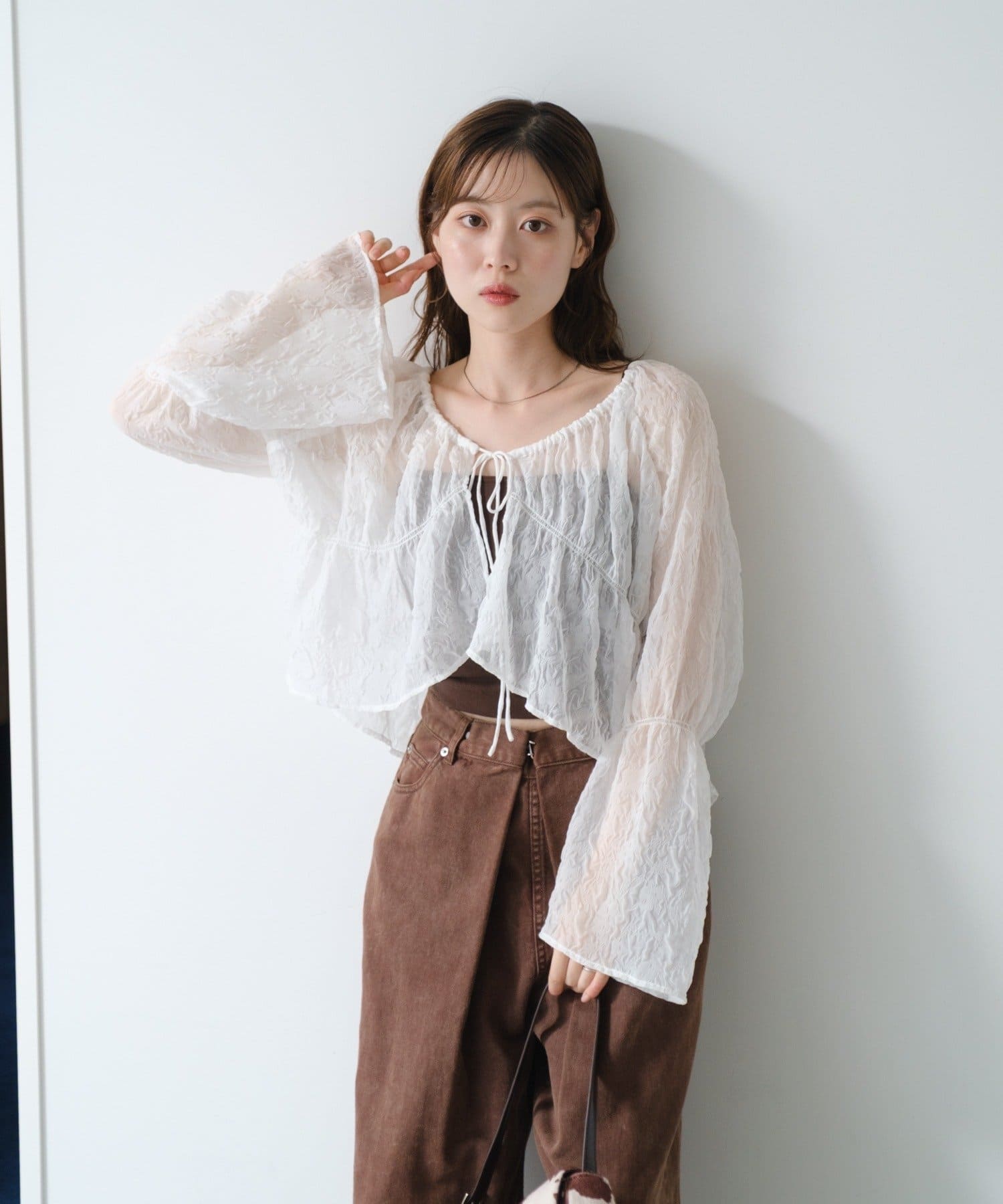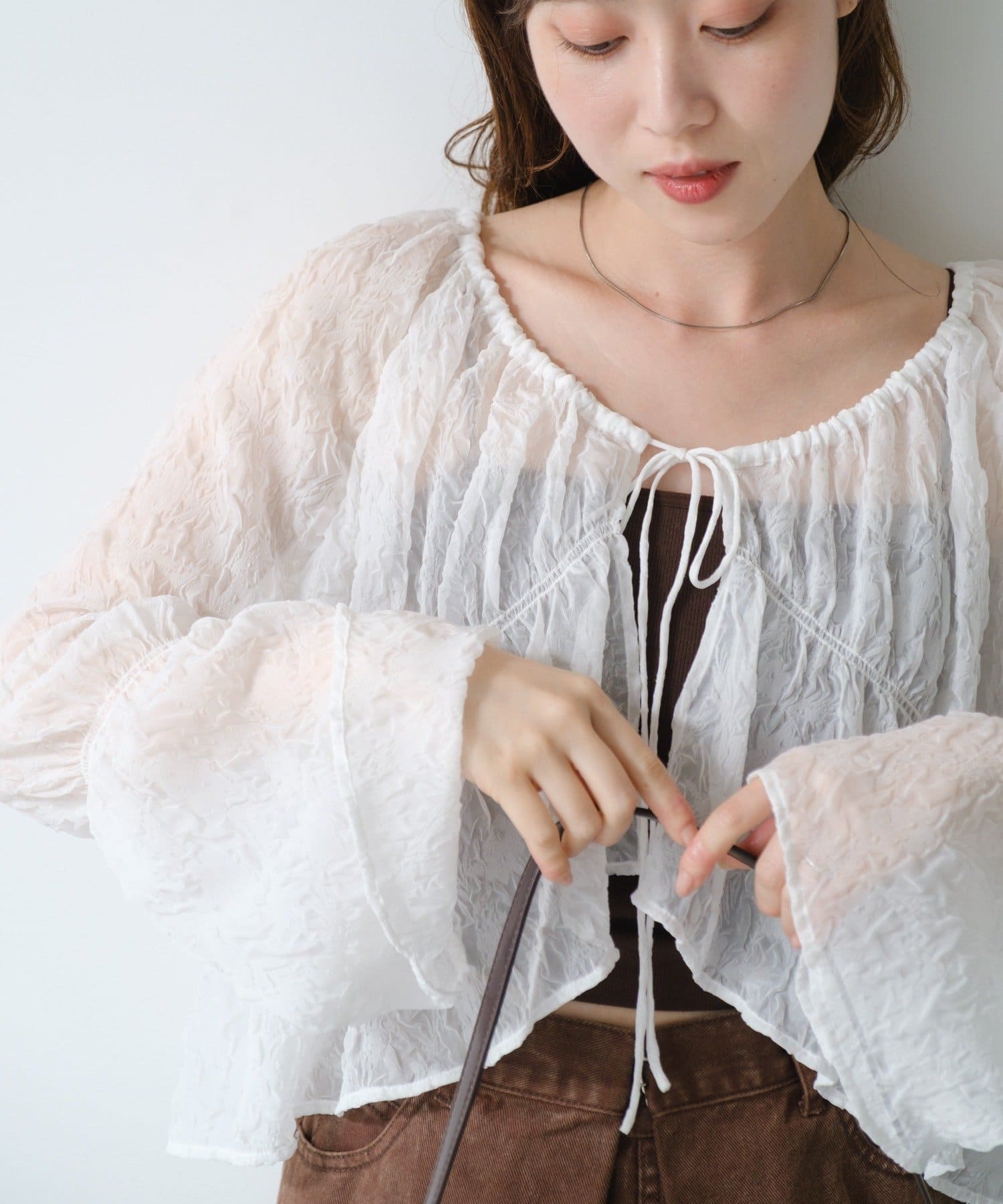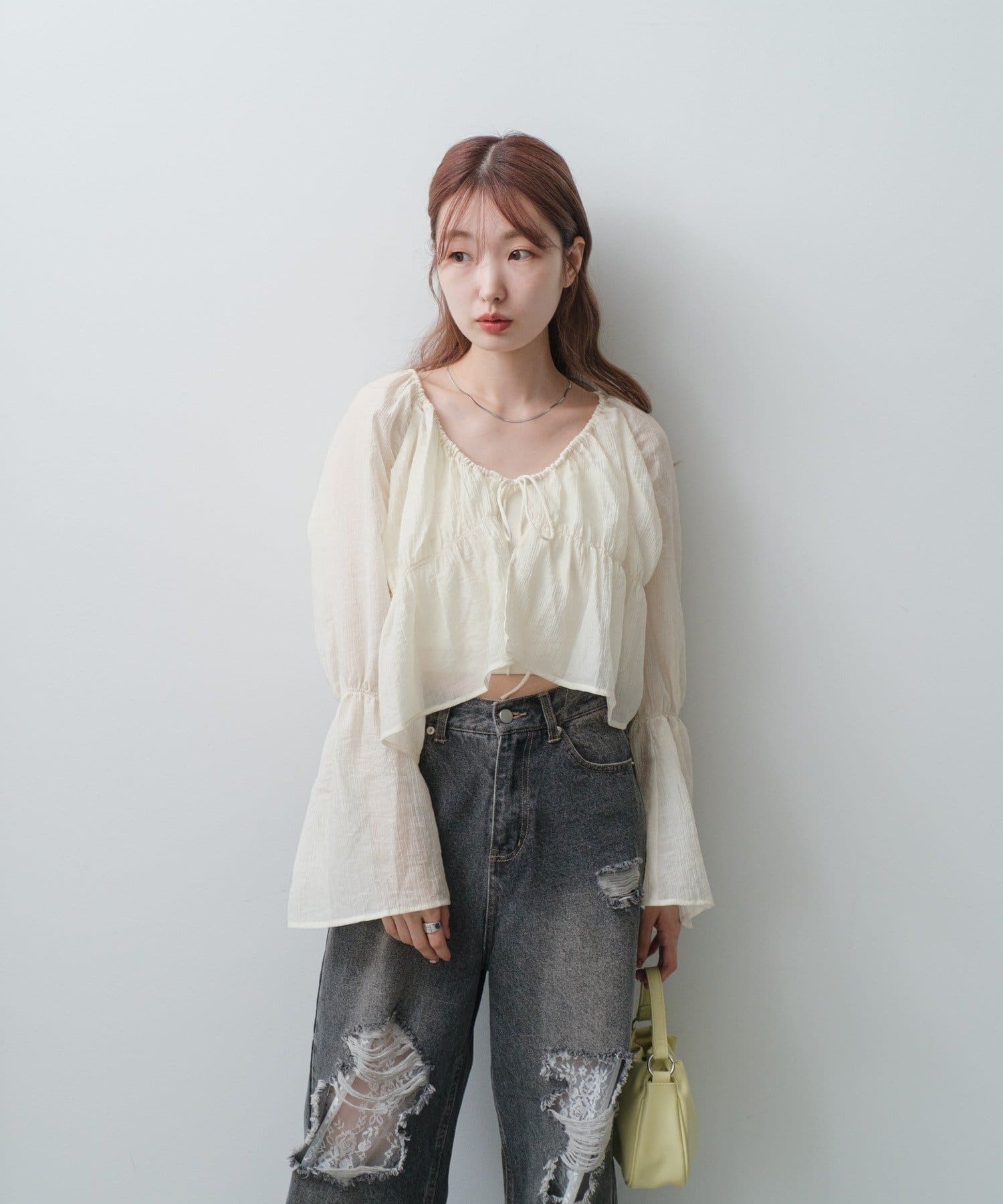 【S.Lサイズ展開】シャーリングシアーブラウス