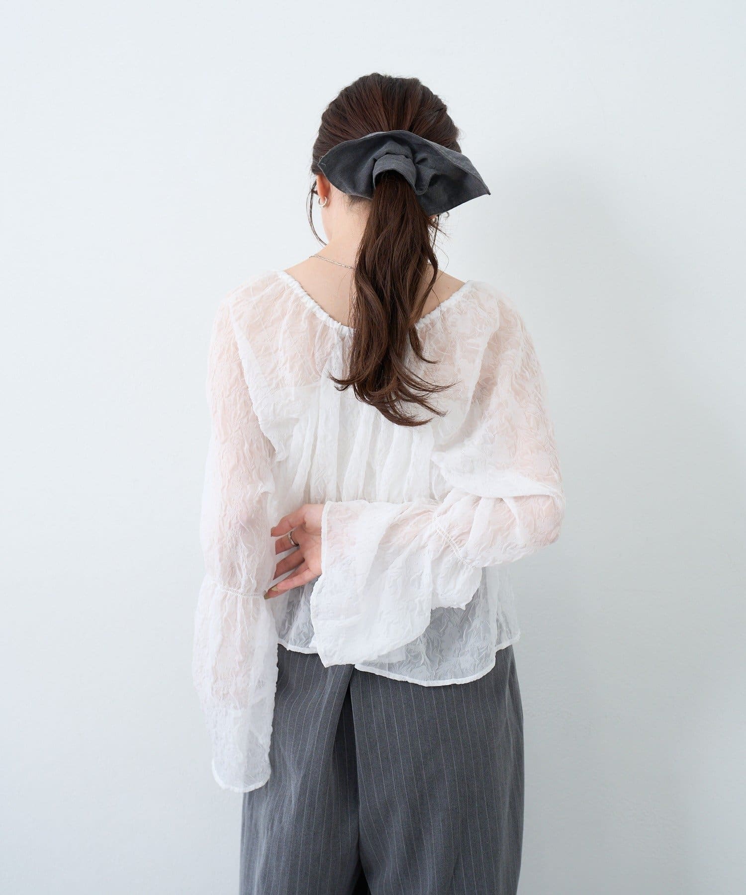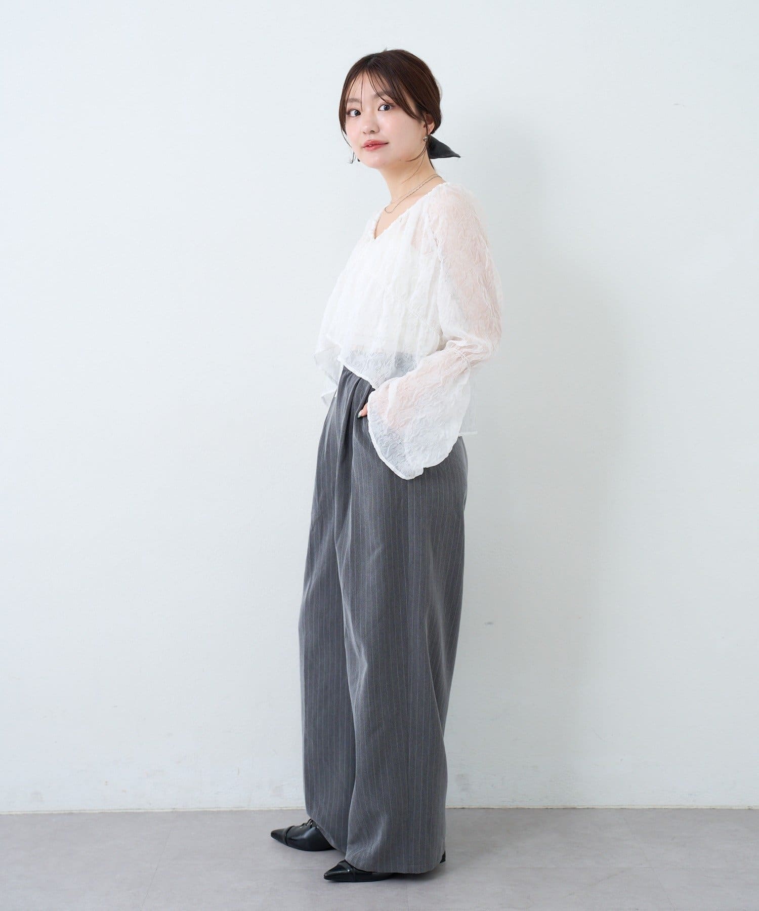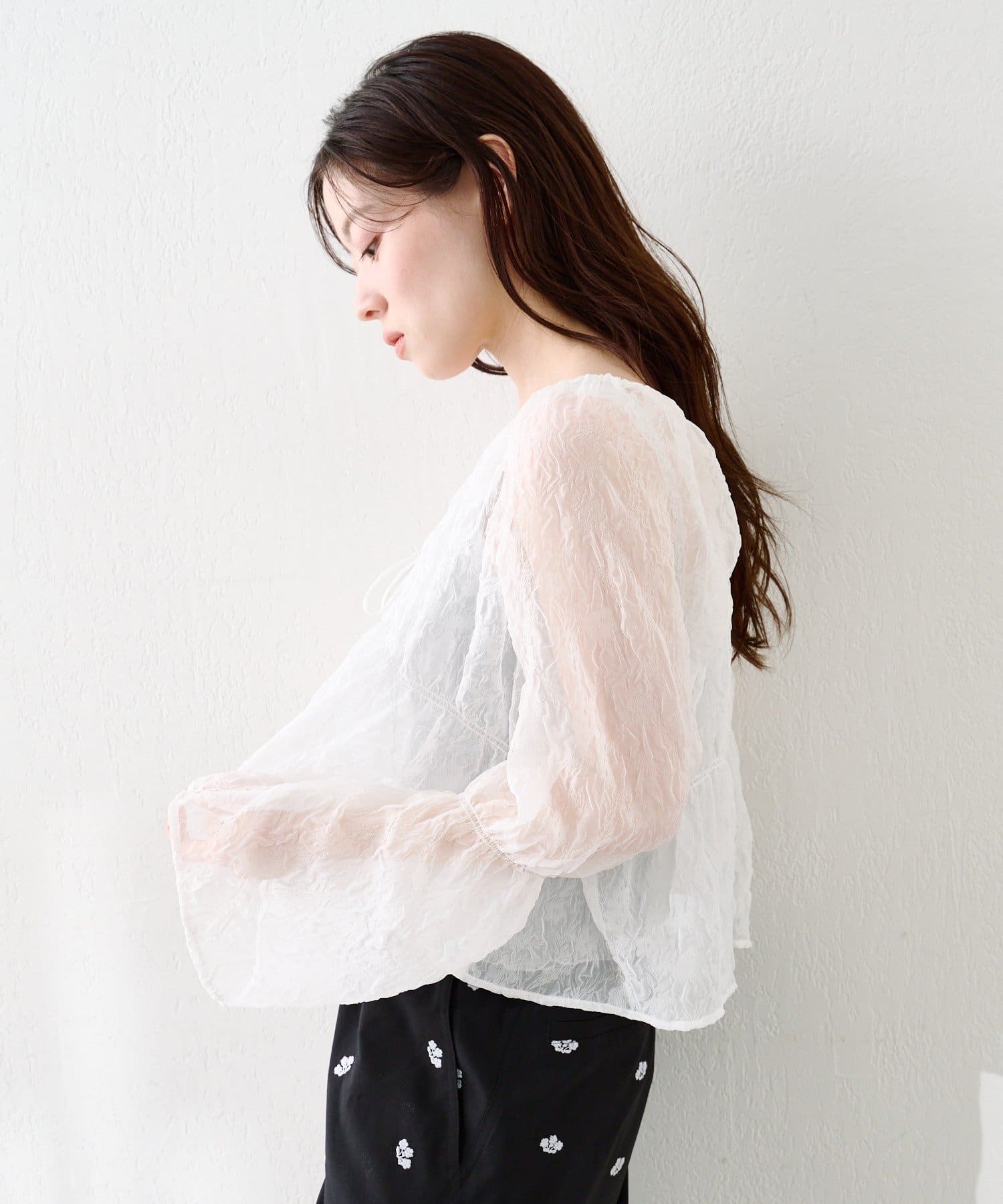 柔らかい透け感もあり、女性らしいブラウスです。