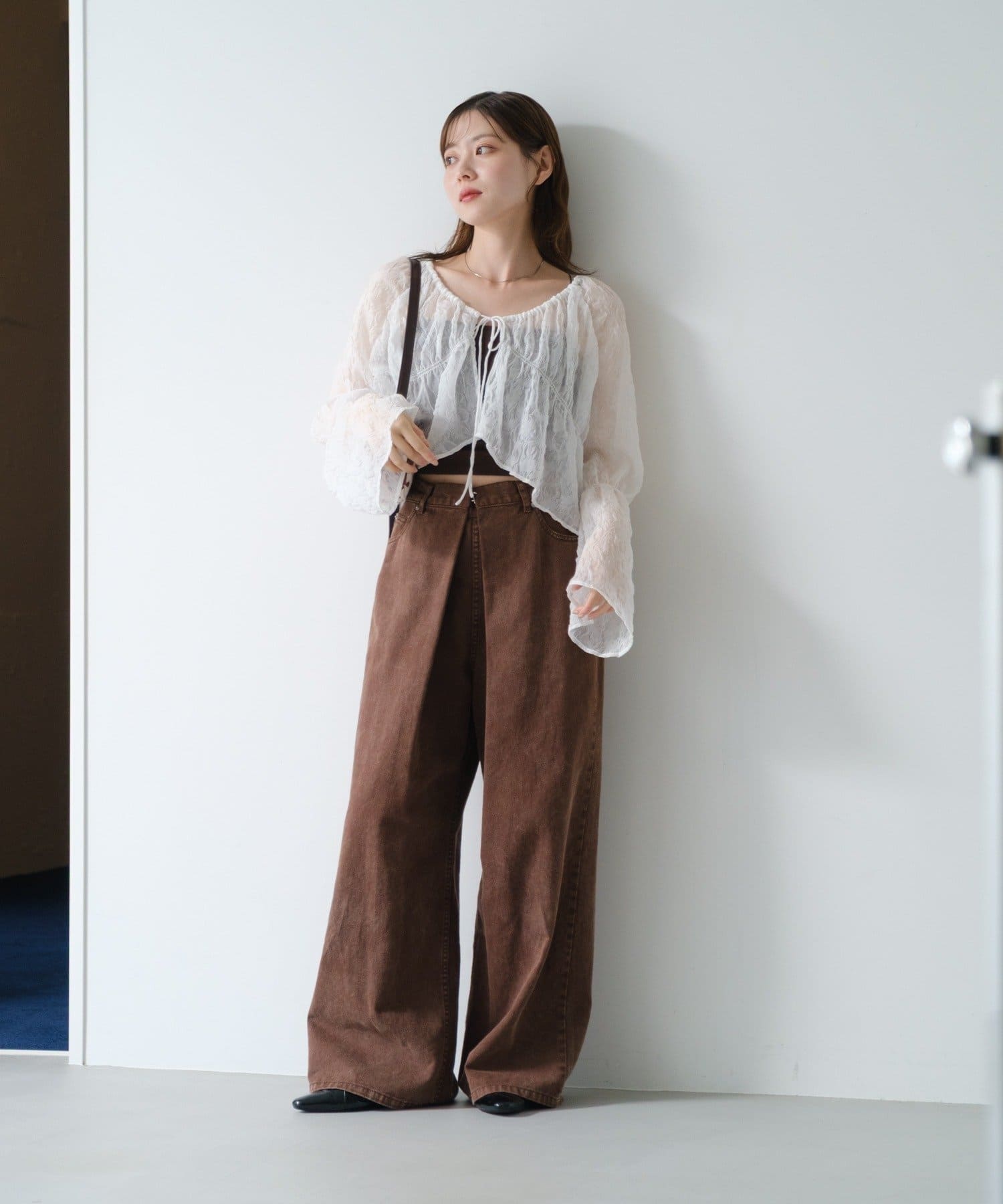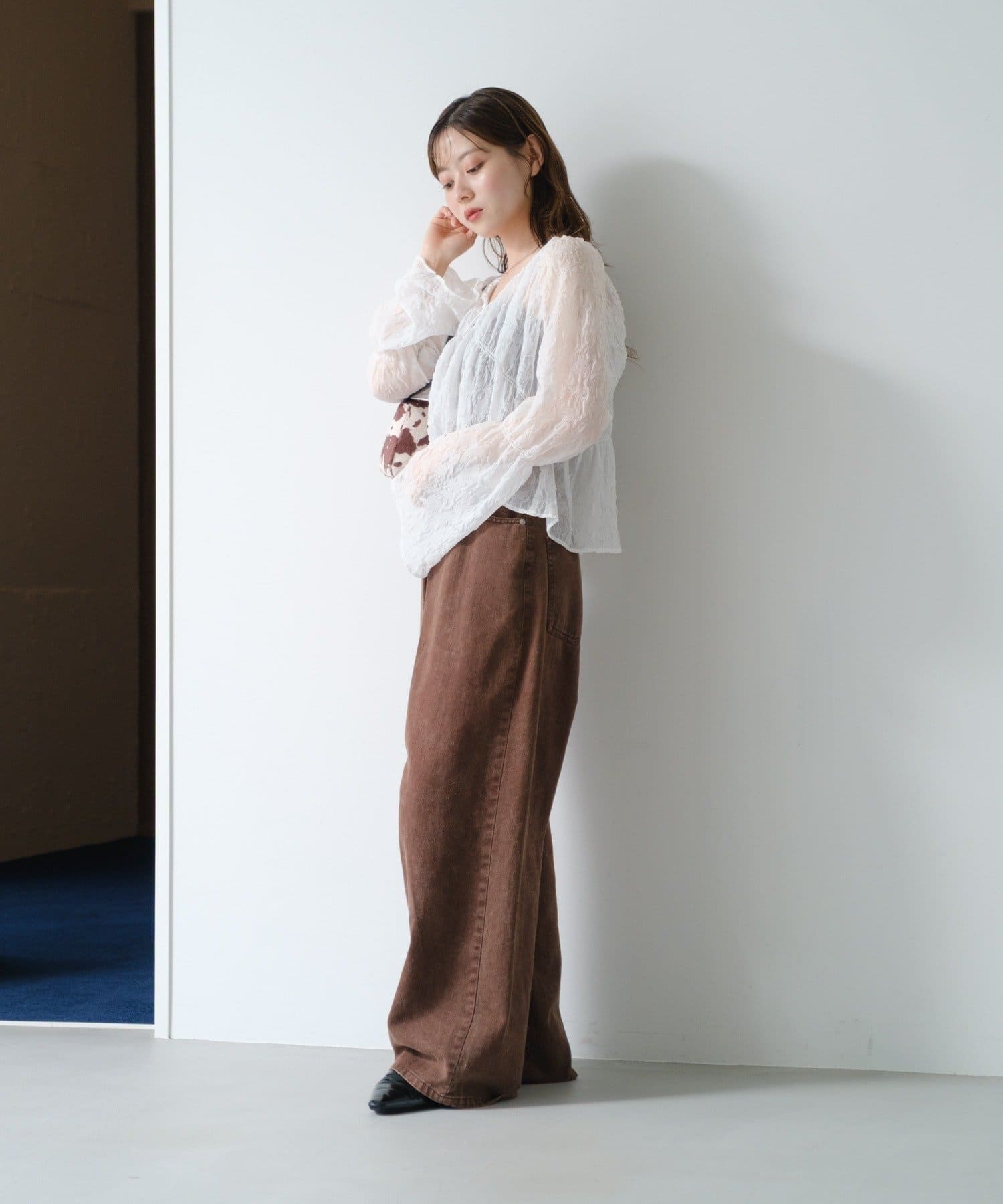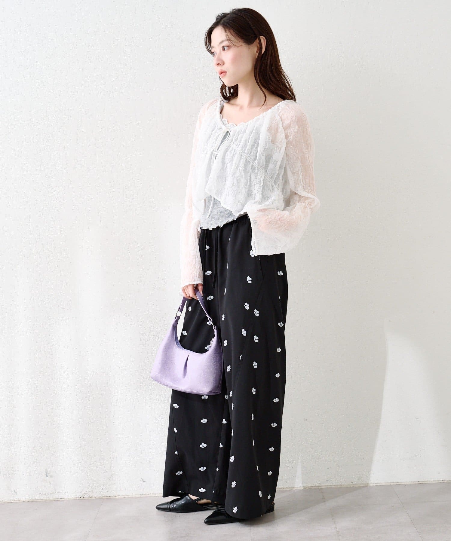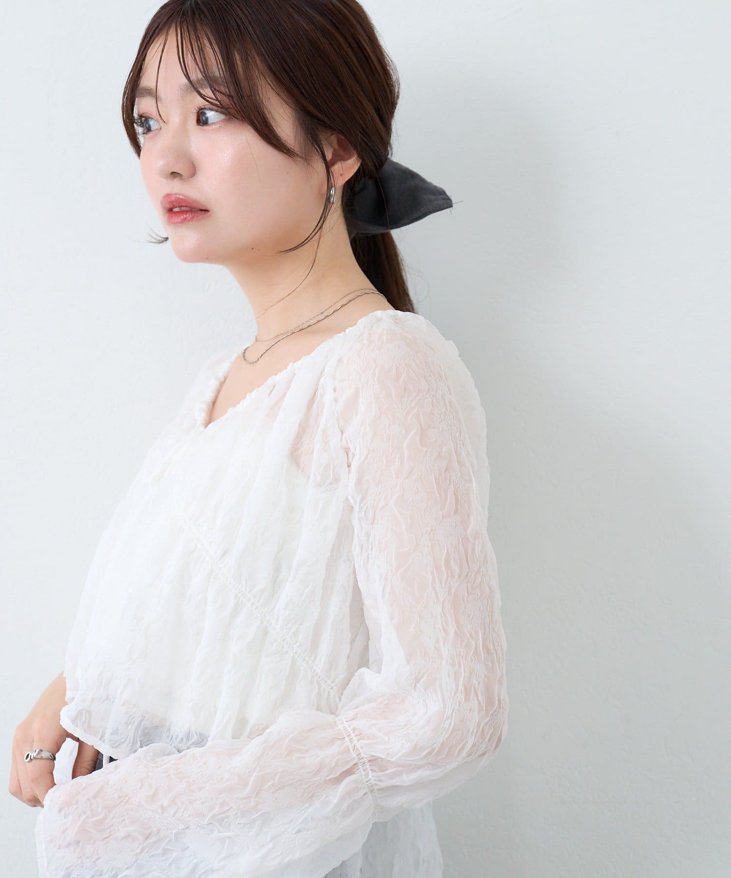 柔らかい透け感もあり、女性らしいブラウスです。