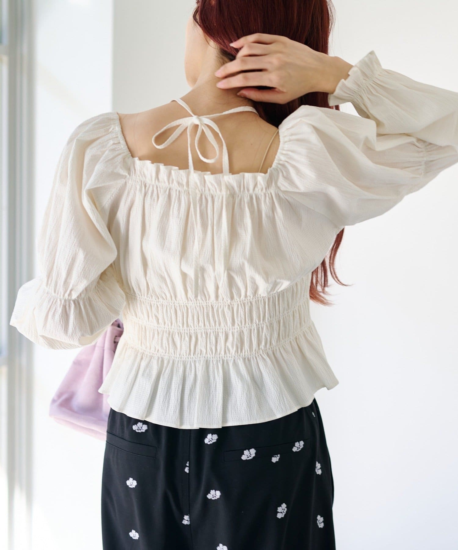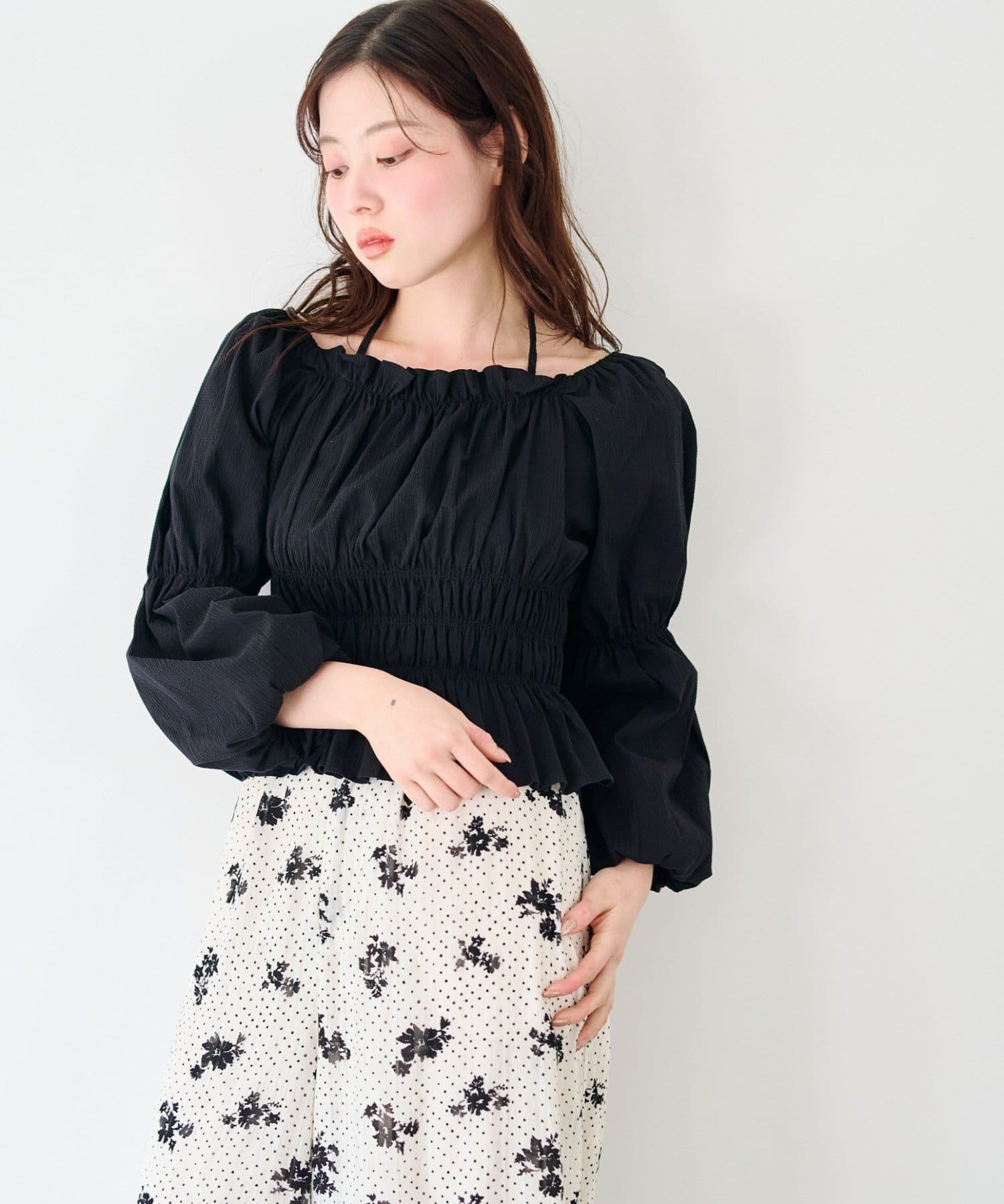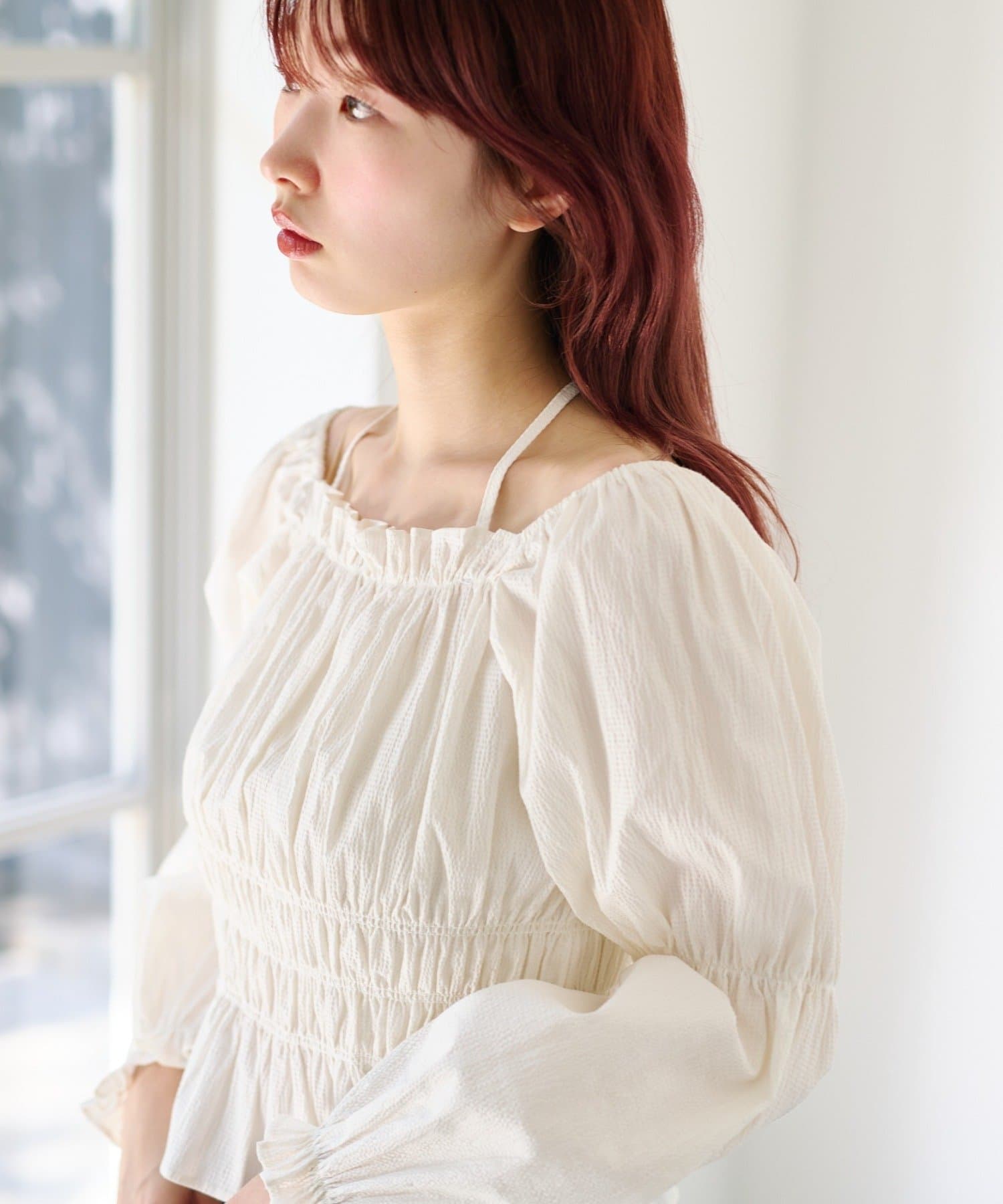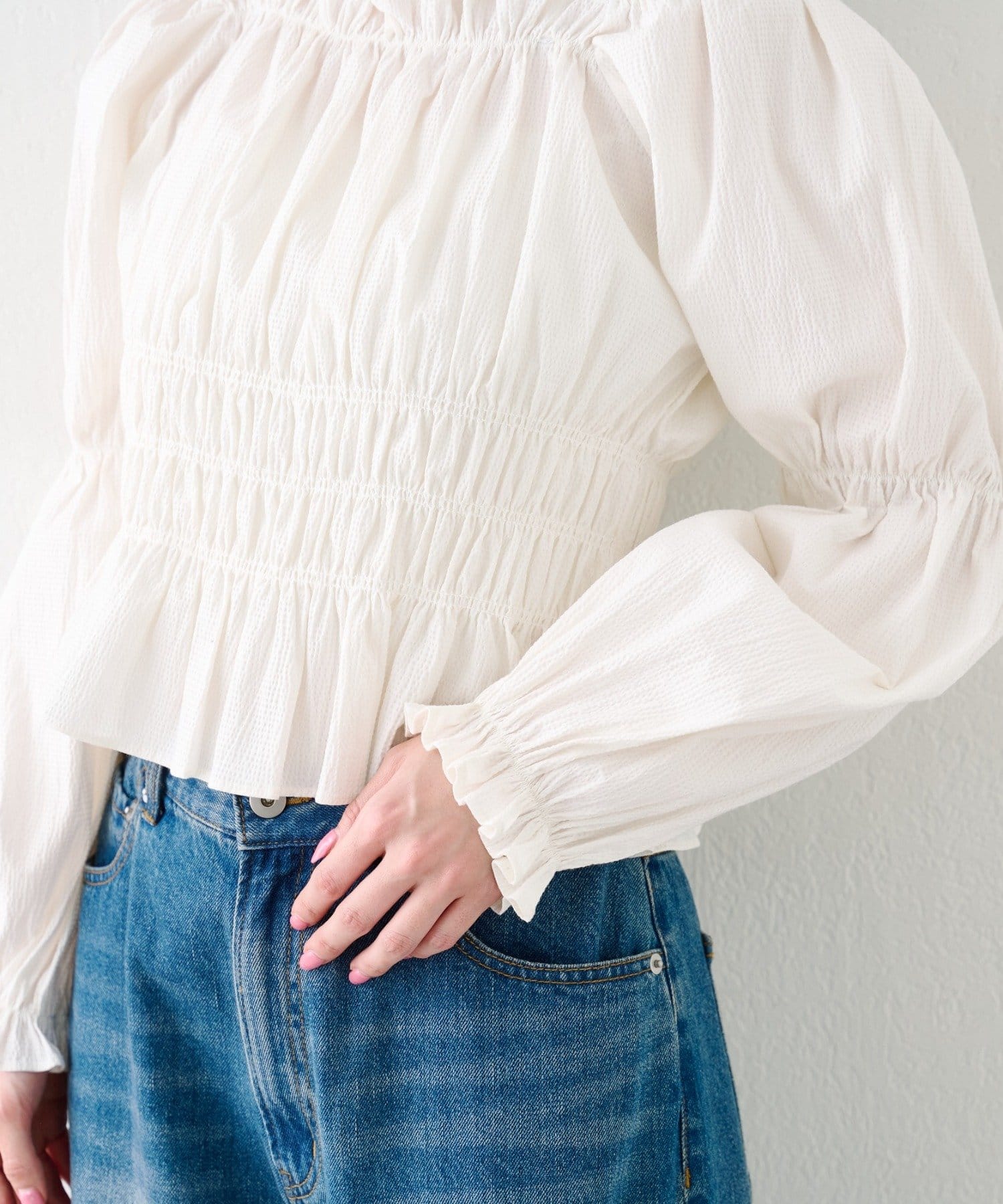 シャーリングで魅せる、華奢見えフェミニンブラウス