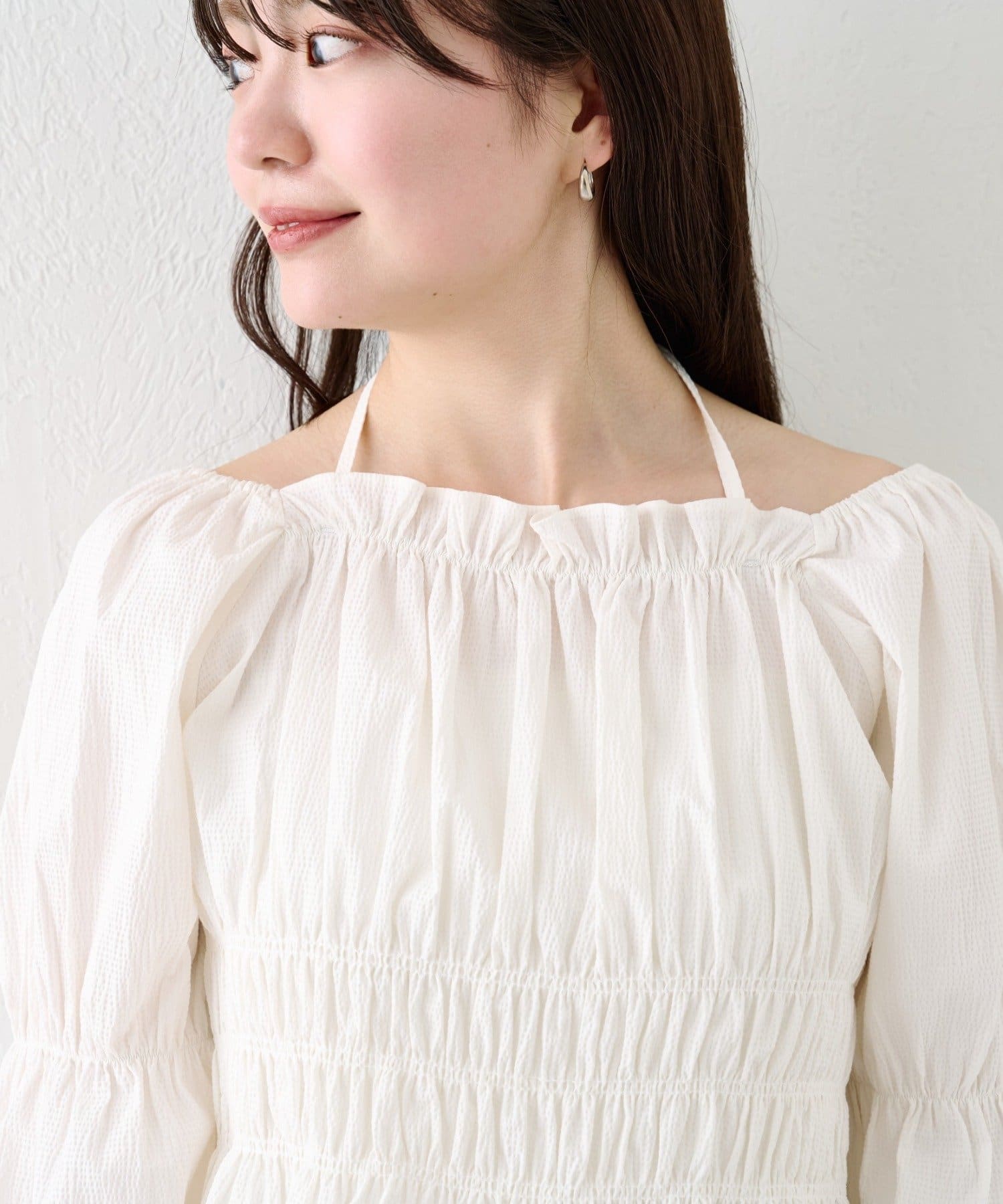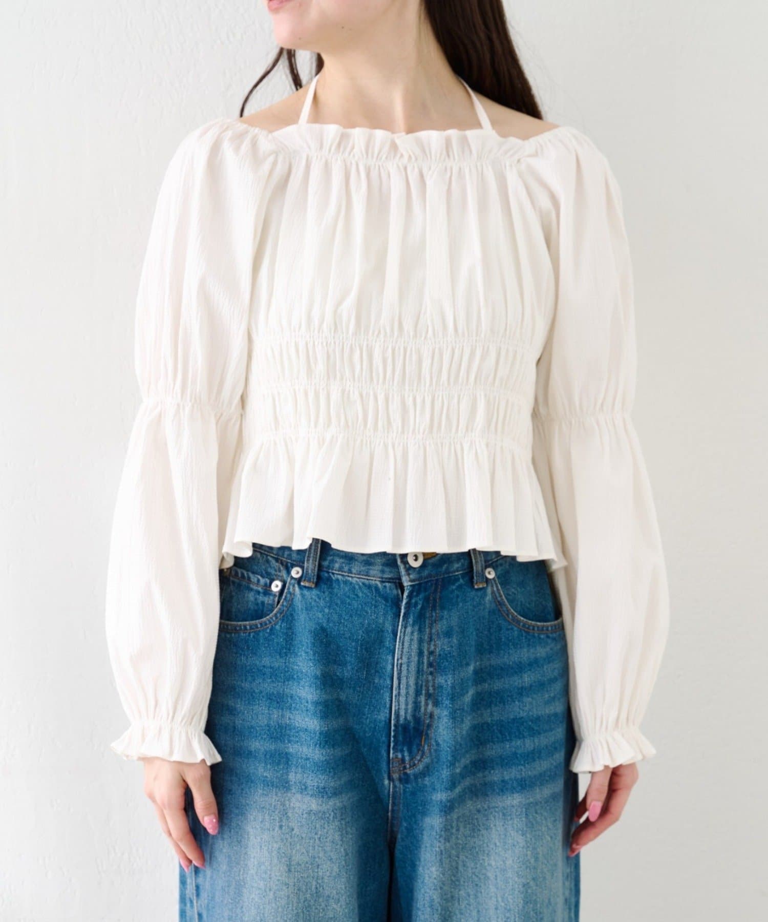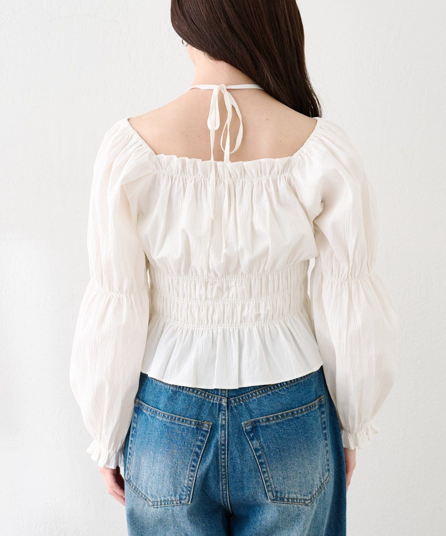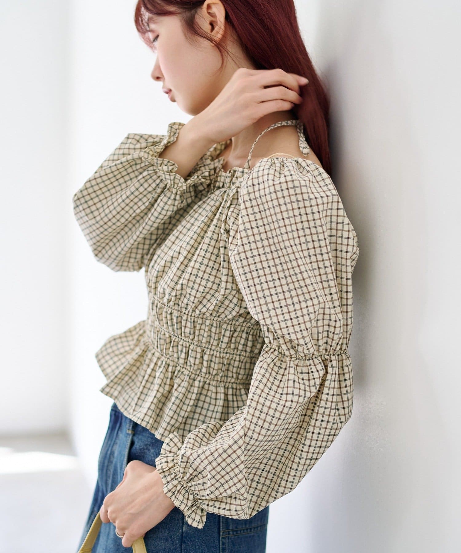 シャーリングで魅せる、華奢見えフェミニンブラウス