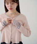 袖のチュールが目を引く配色カーディガン