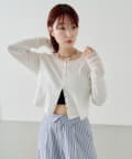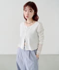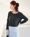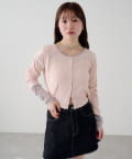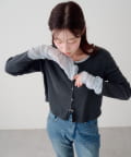 異素材切り替えがポイントのカーディガン。