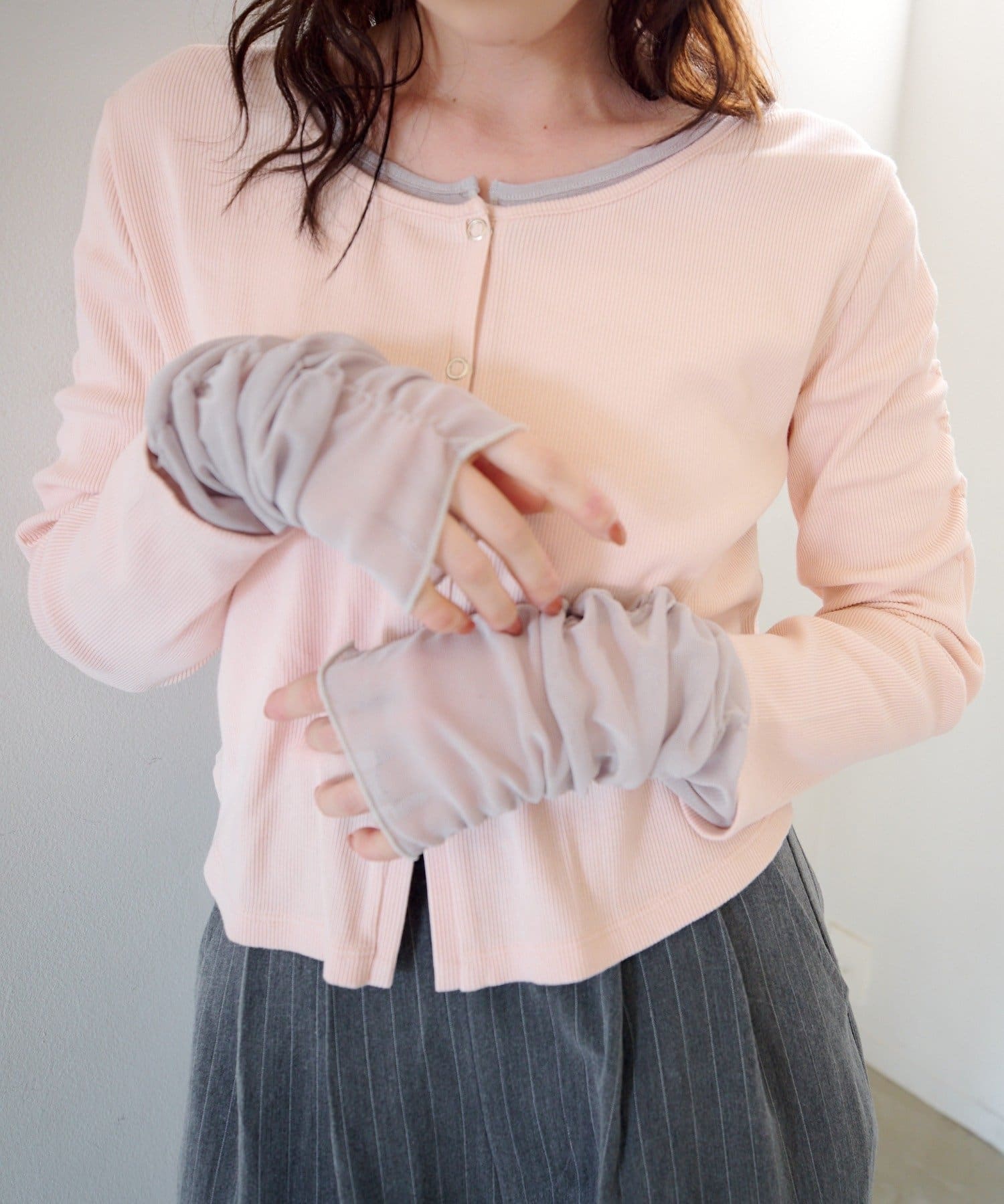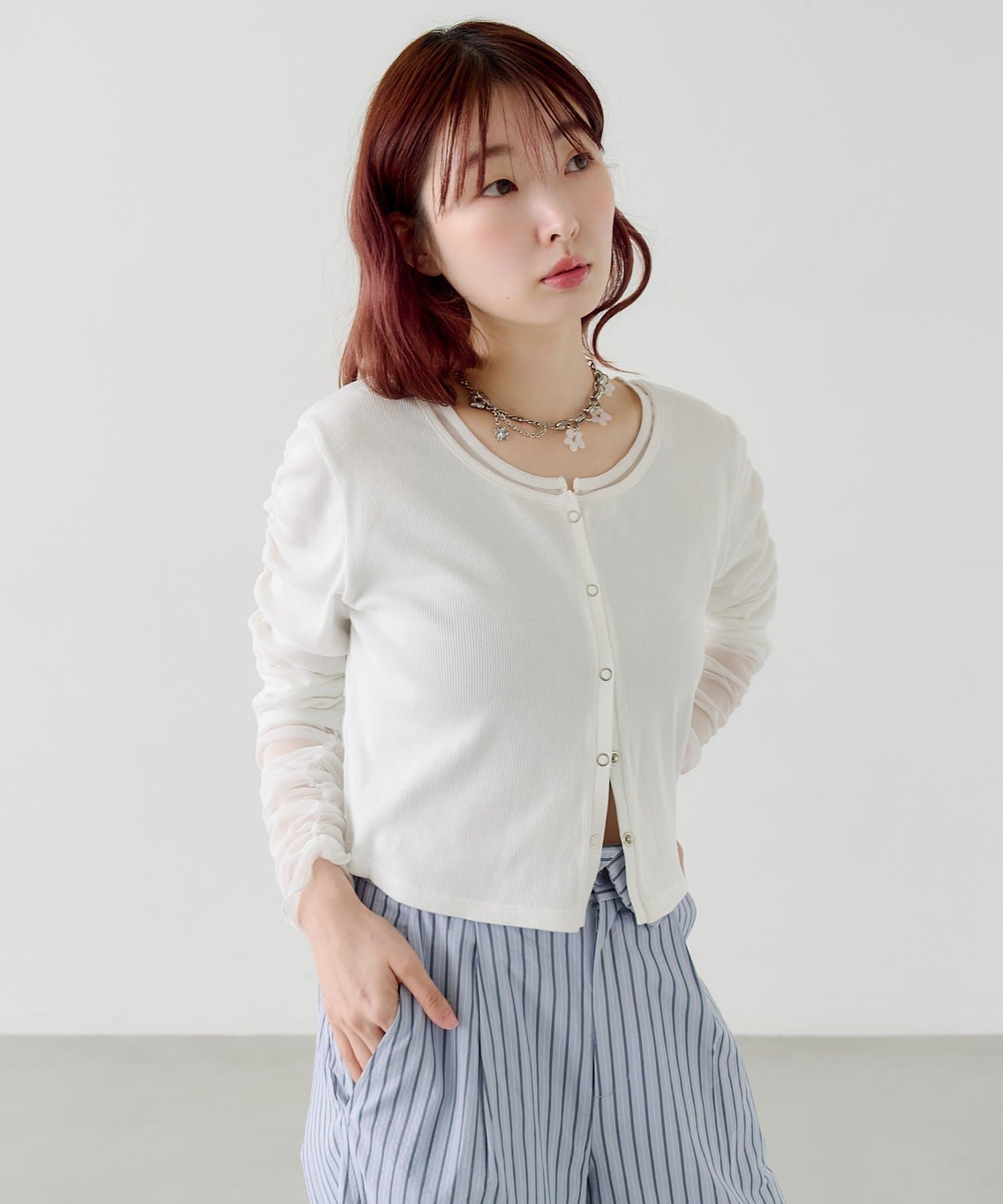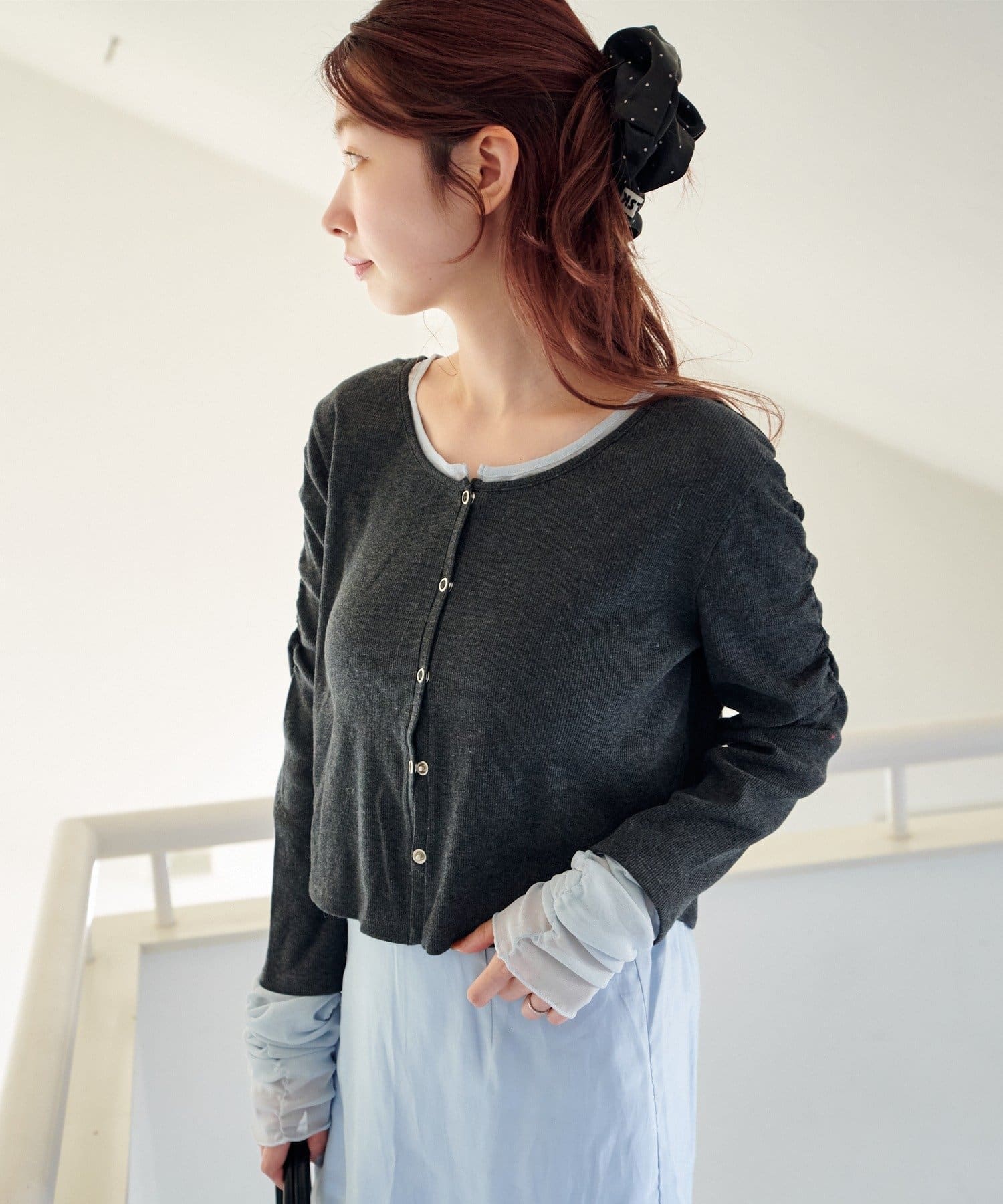 前を開けてキャミソールやワンピースに羽織れば、抜け感のあるレイヤードスタイルに。