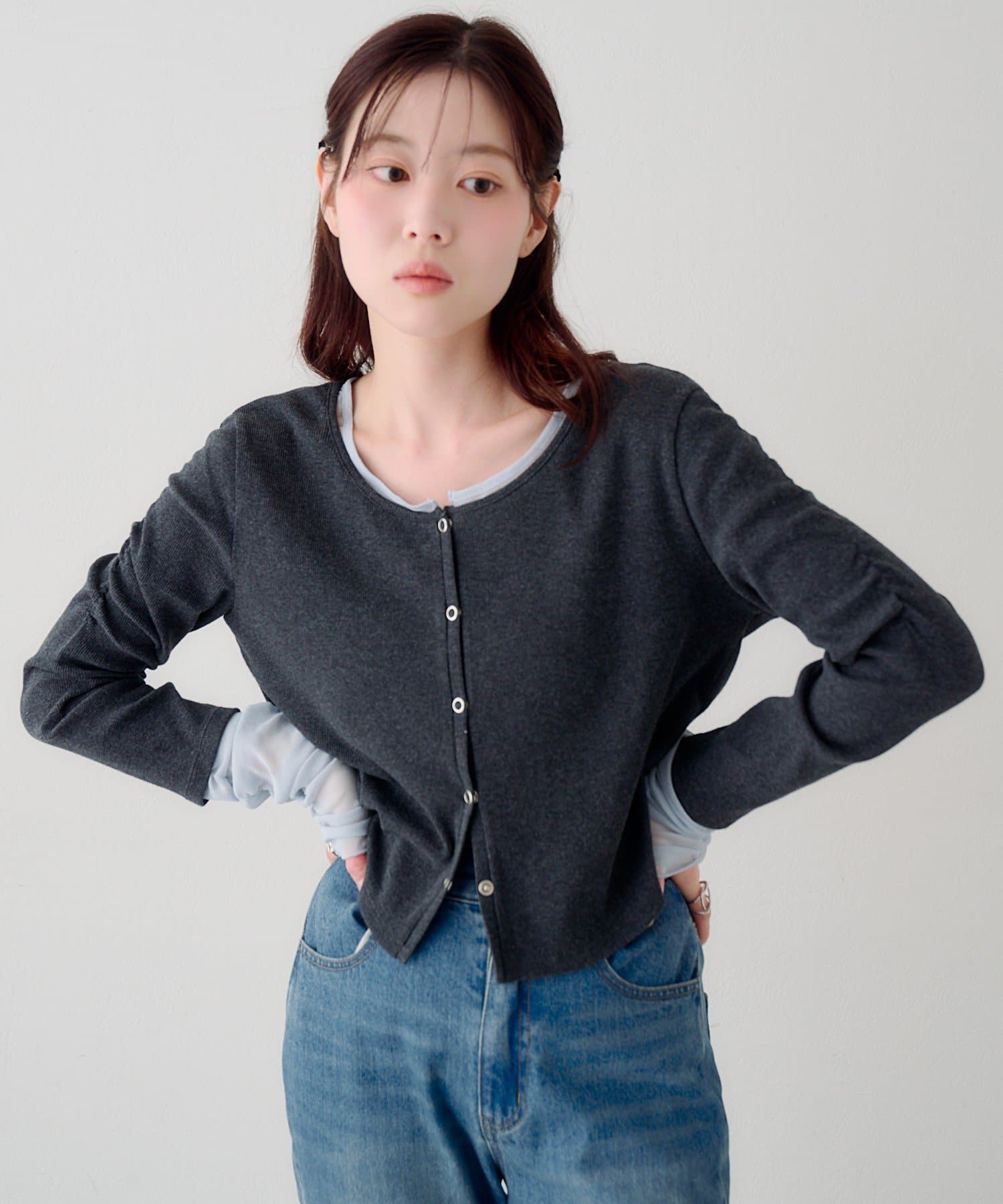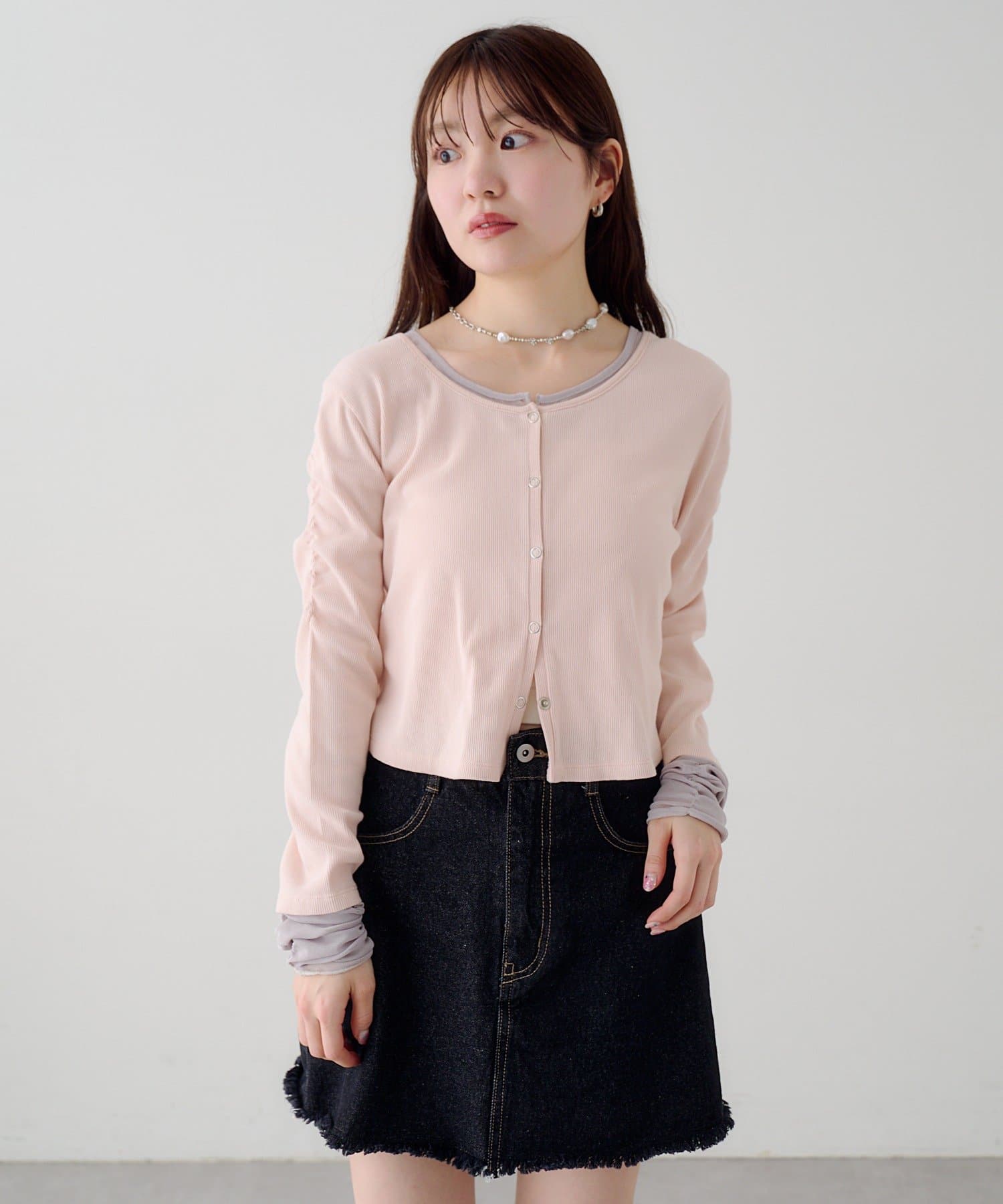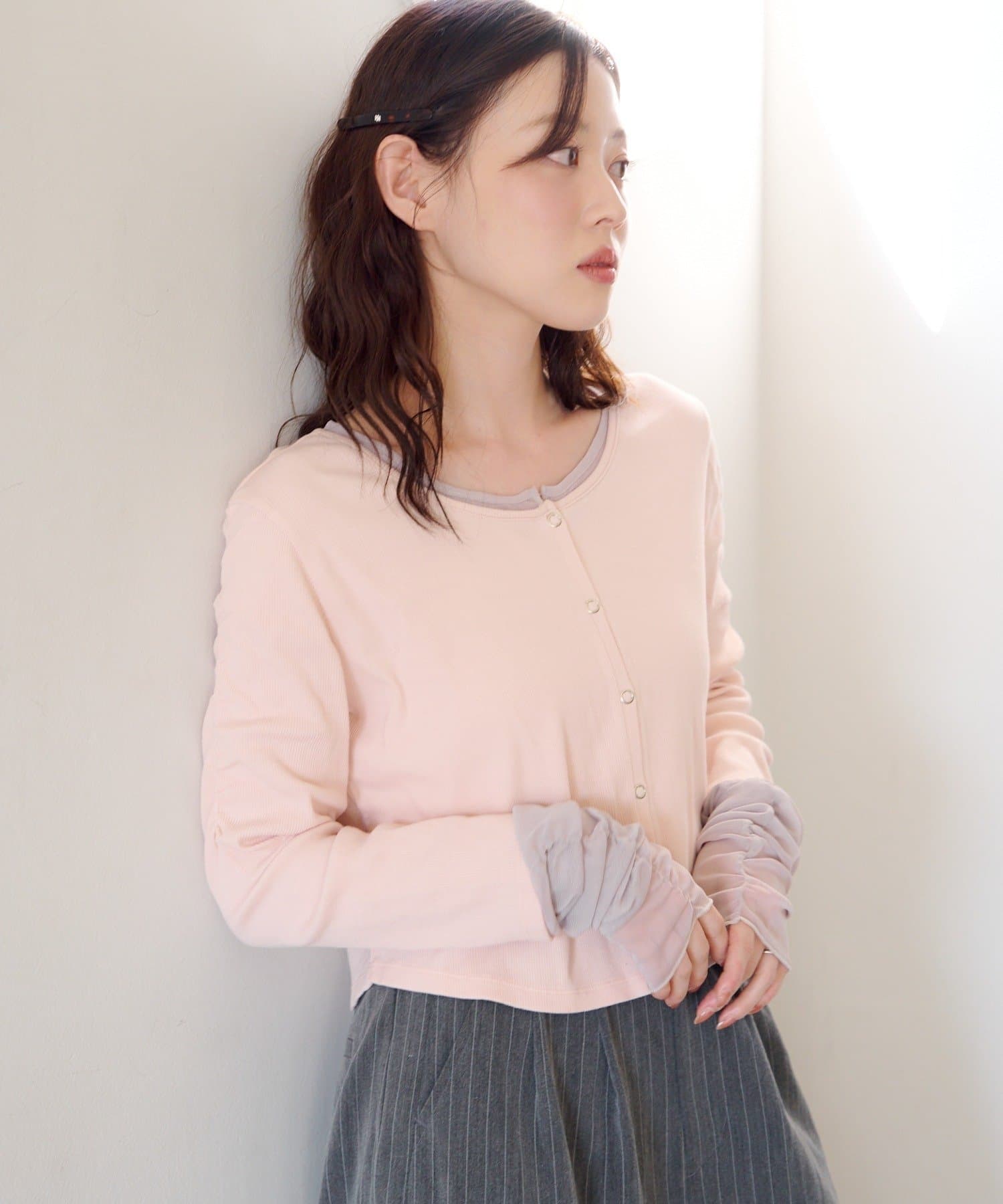 袖チュールテレコカーディガン