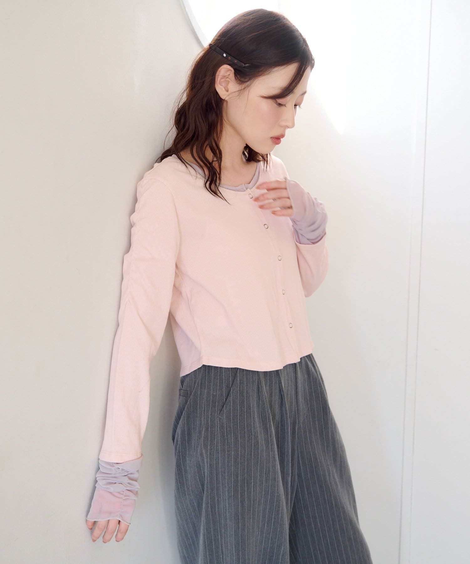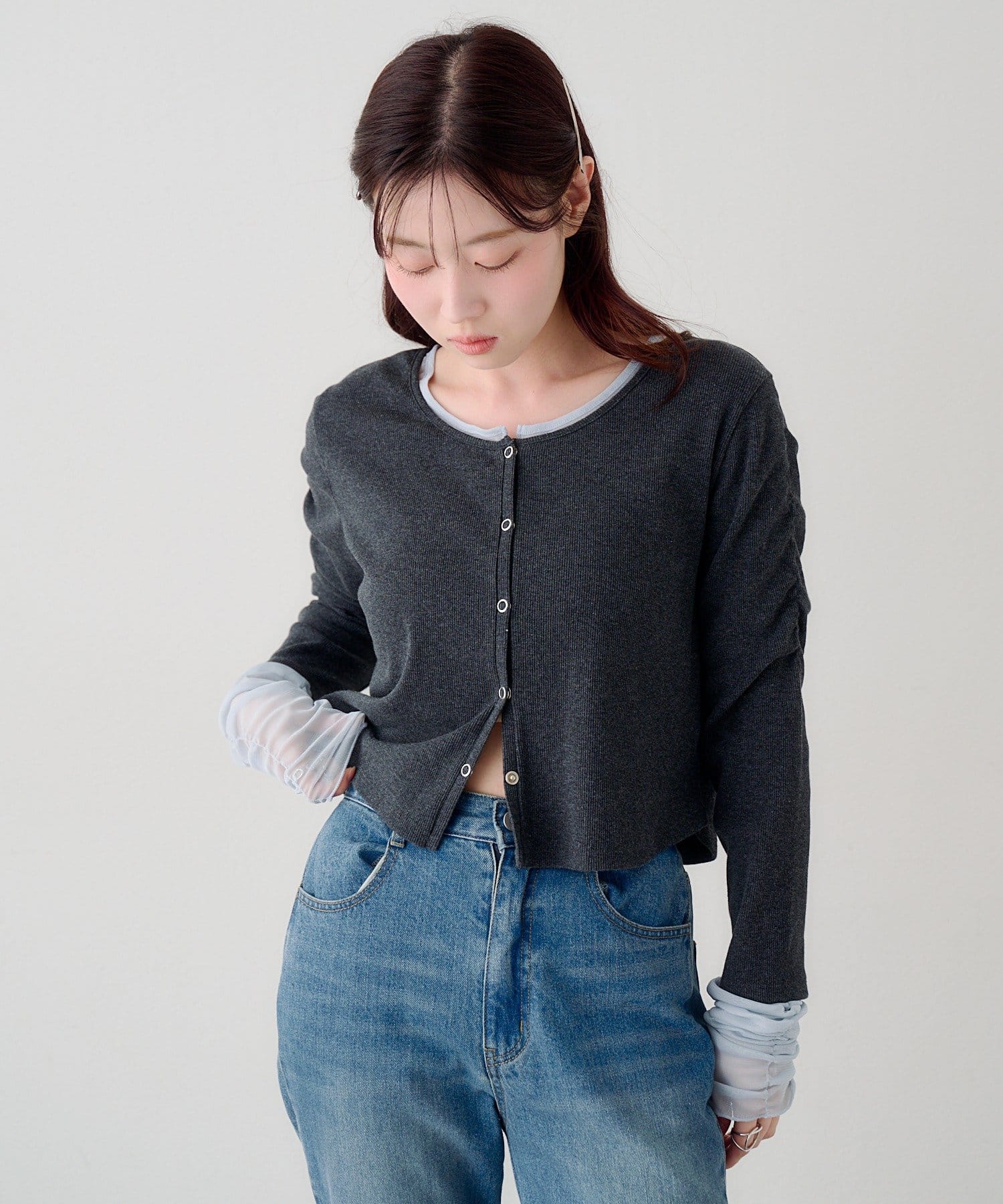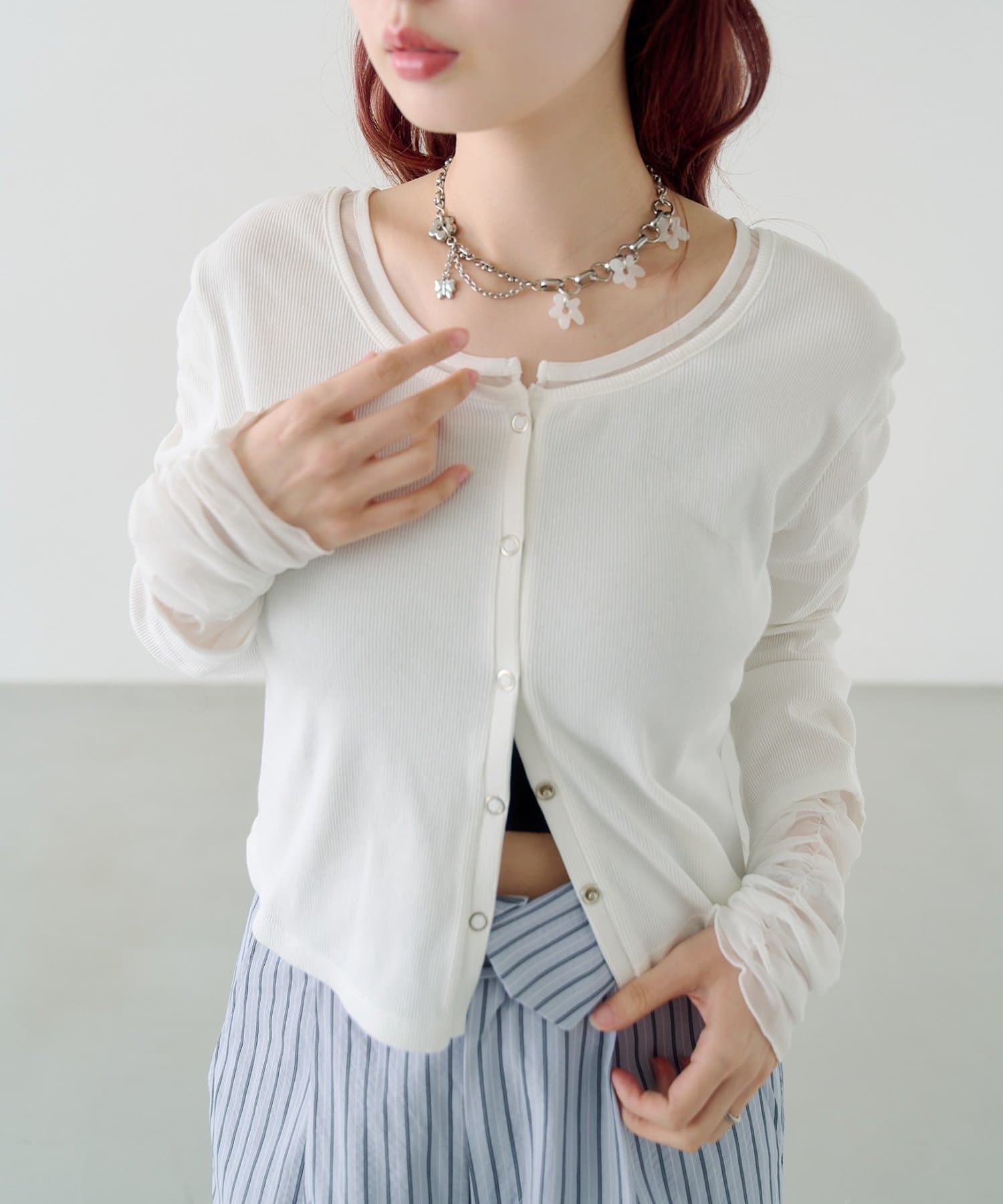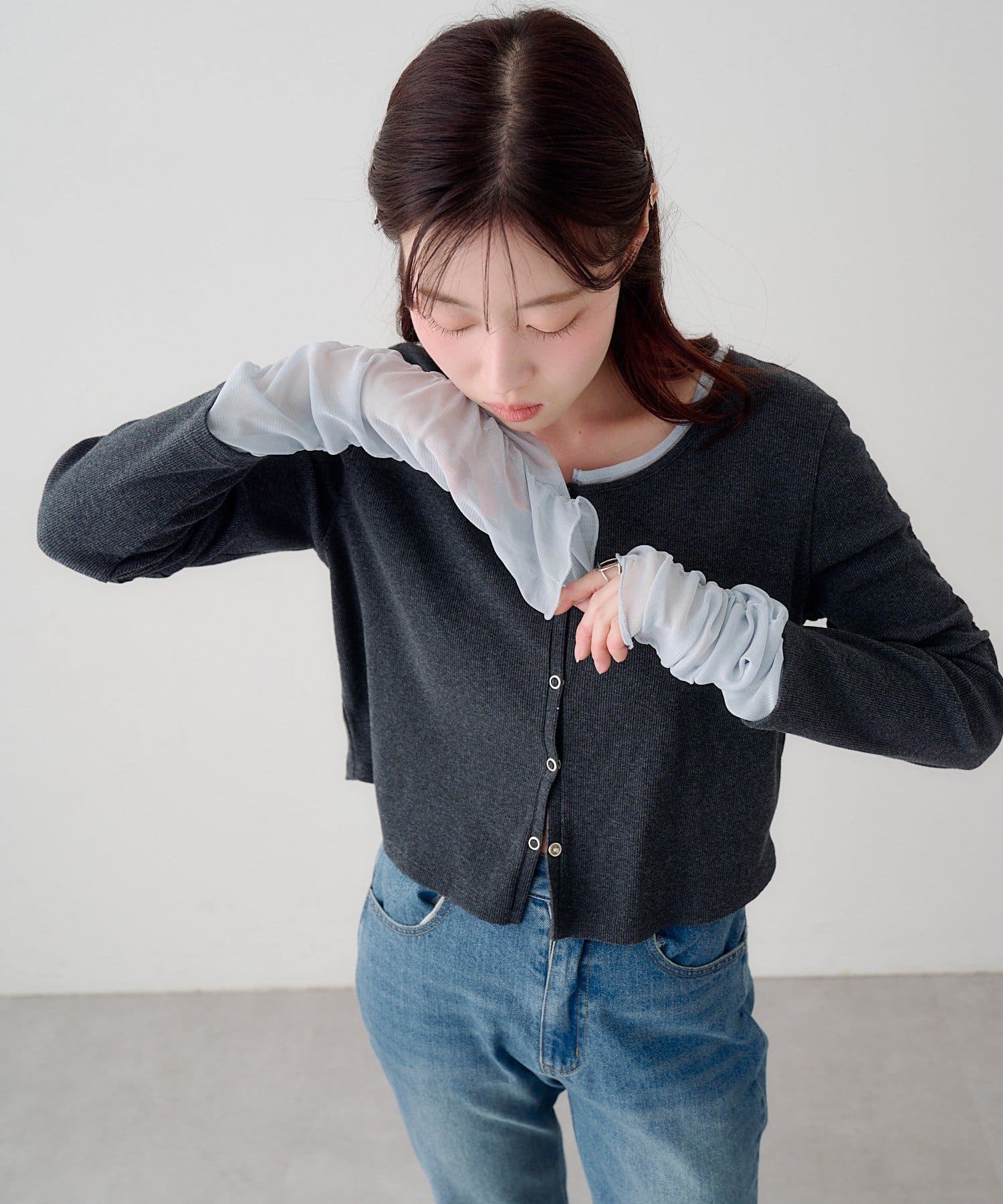袖チュールテレコカーディガン