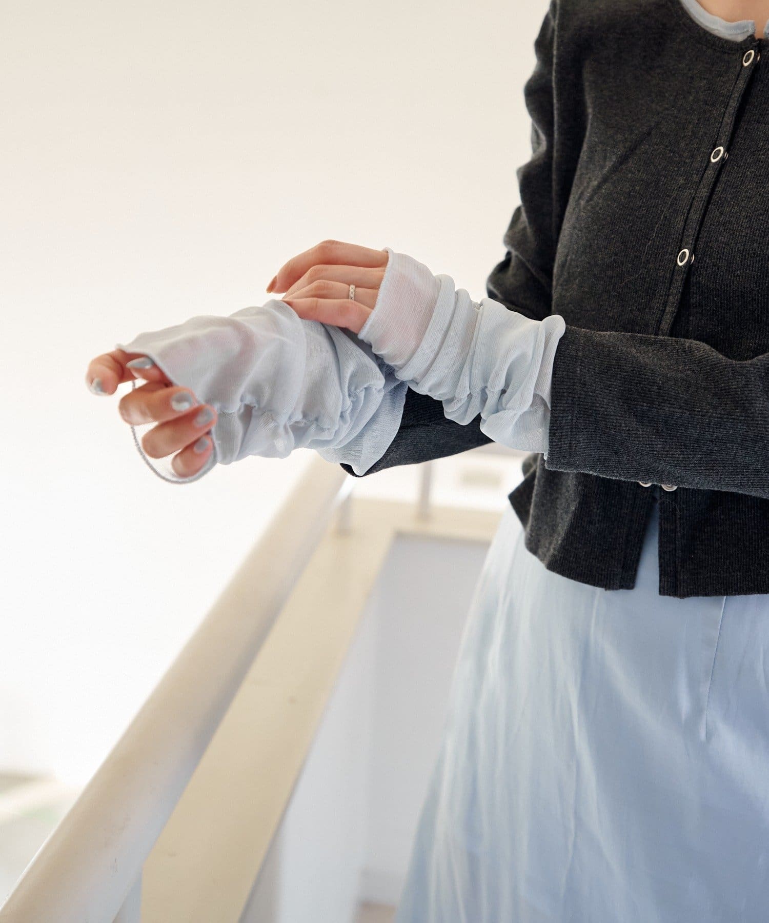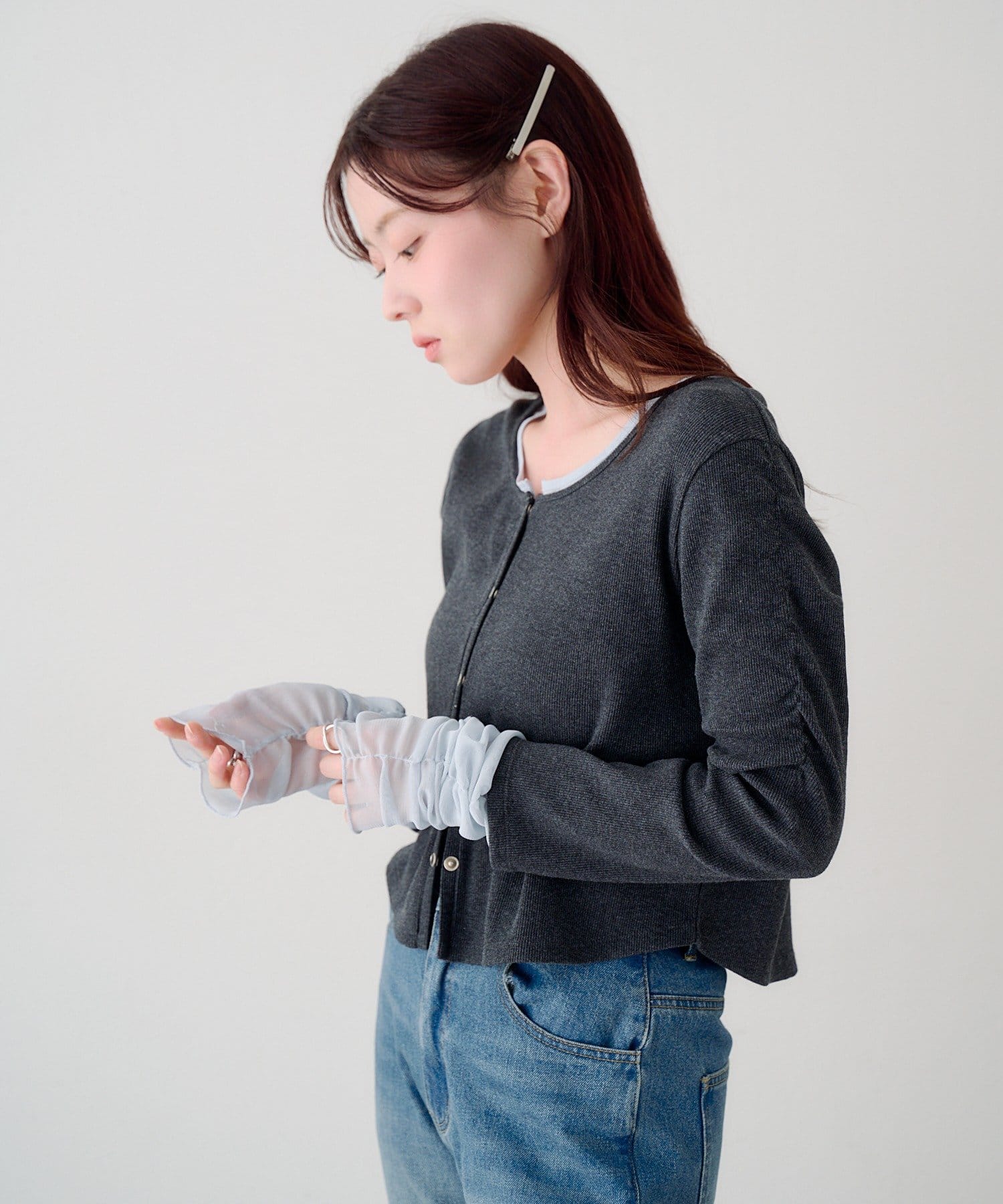 袖先は、軽やかで透け感のあるチュール素材を使用。