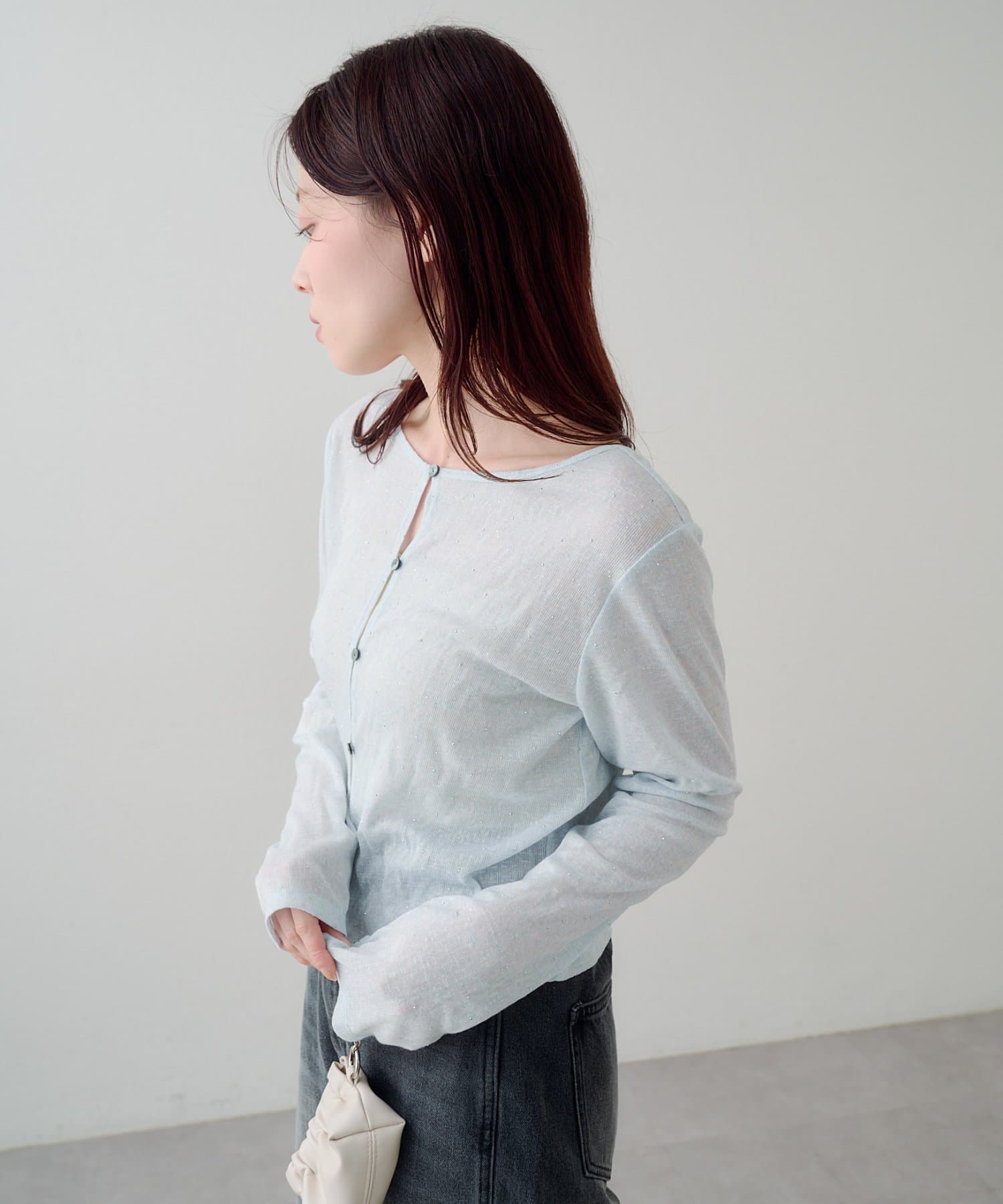 さりげないきらめきとシアー感が魅力の、前後2WAYで楽しめるカットソー