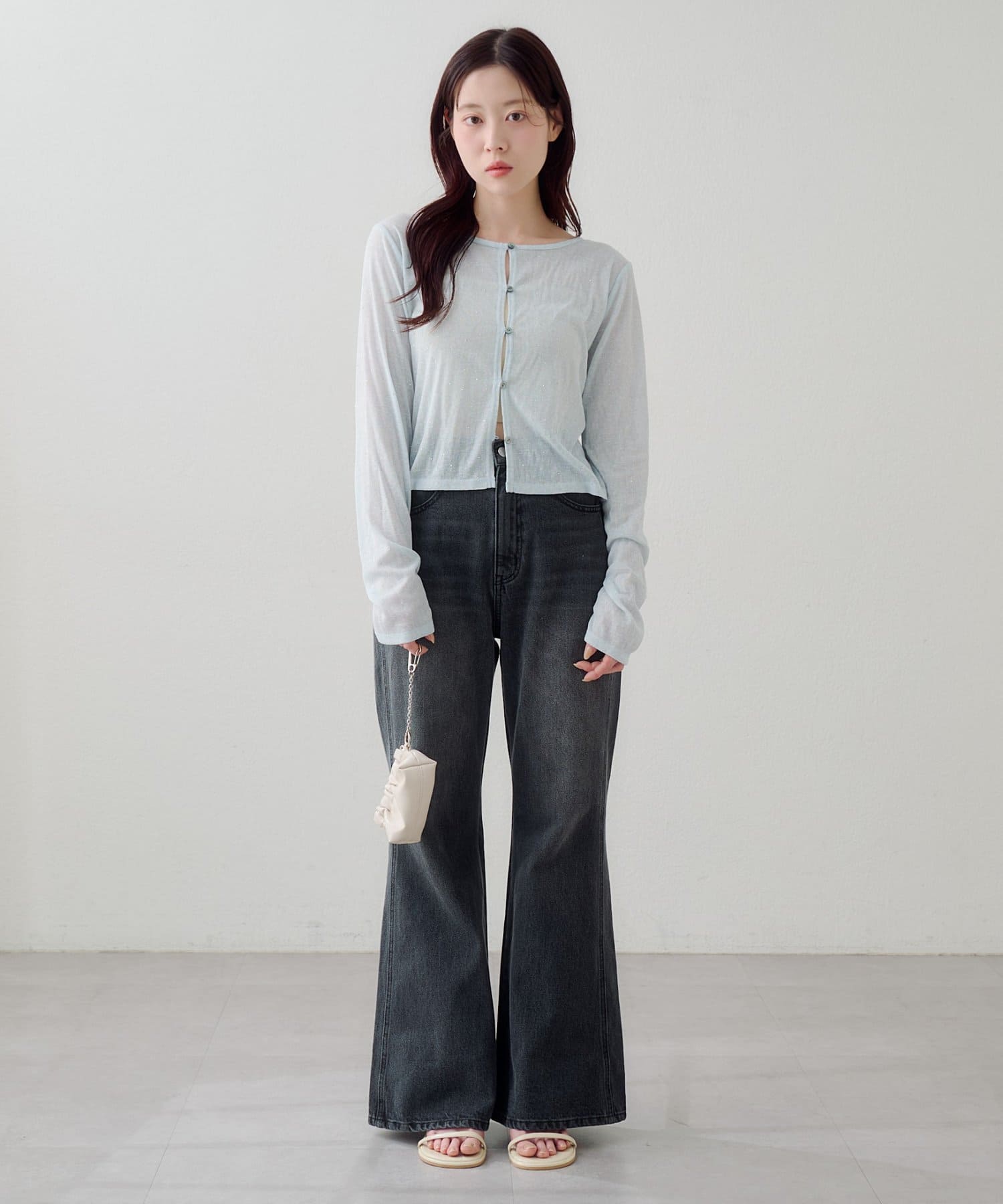 ほどよい透け感が女性らしく、スタイリングに抜け感をプラスしてくれる一枚。