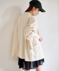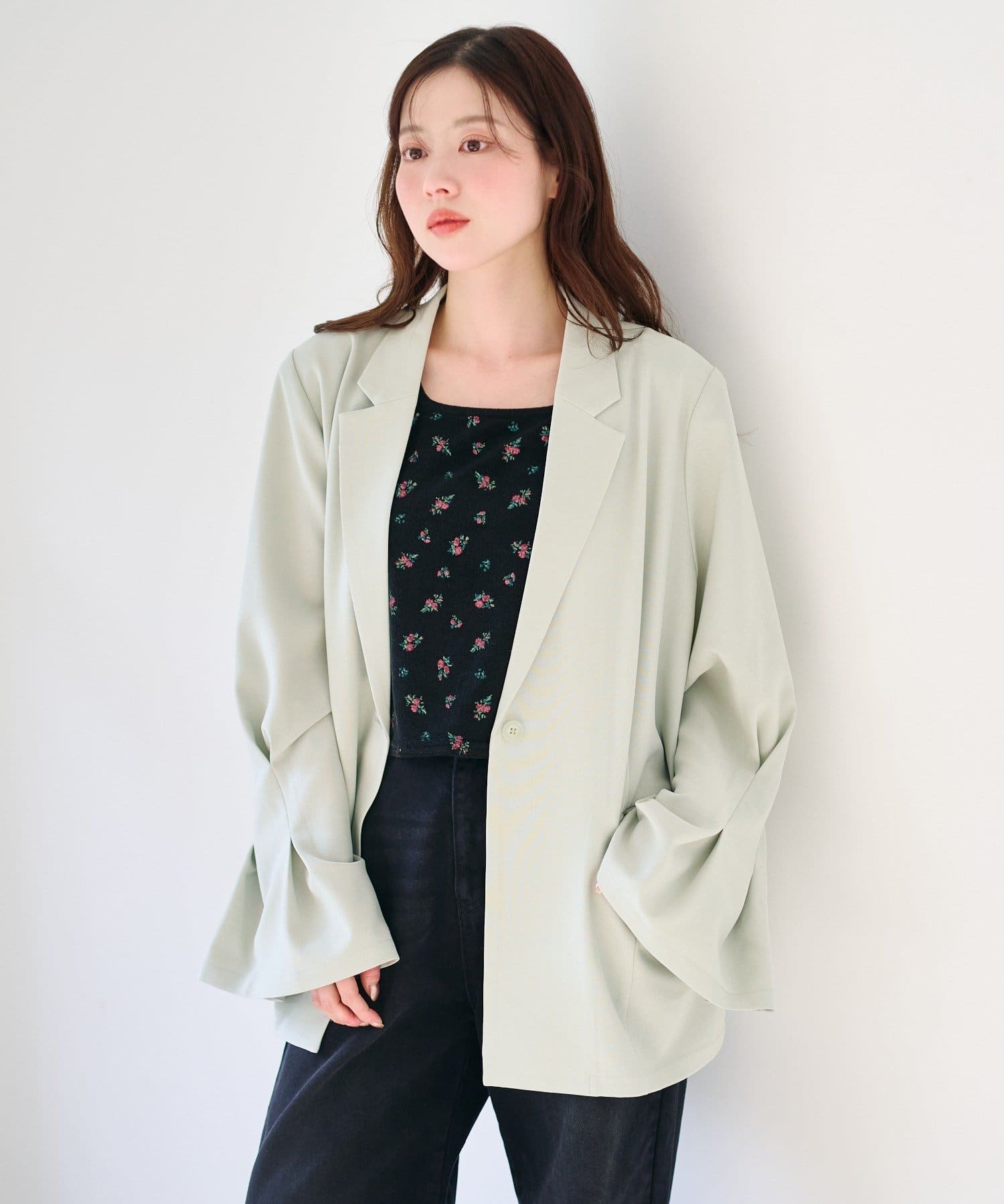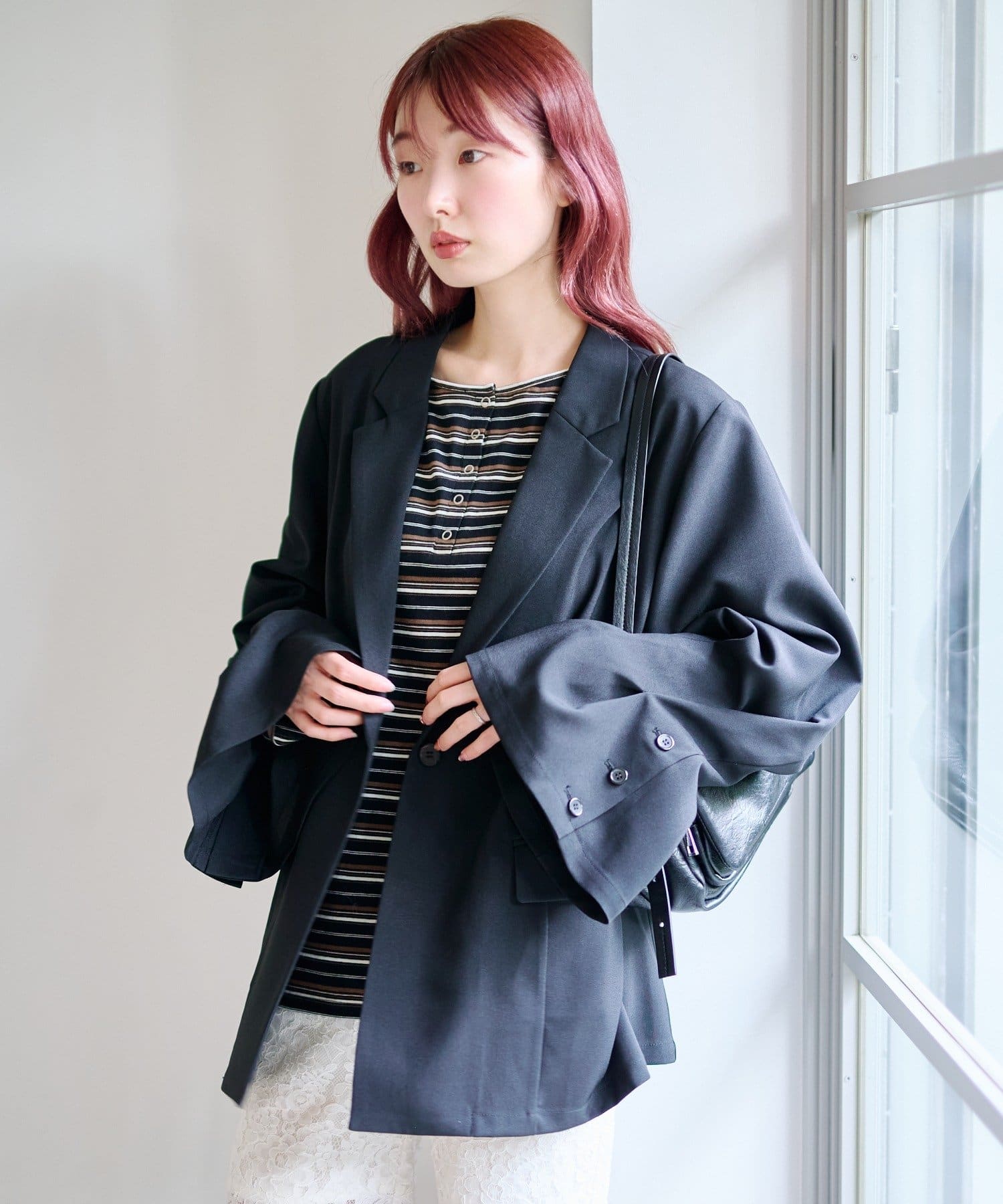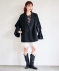 ふんわりと広がるフレアスリーブが目を惹く、女性らしさ漂うジャケット。