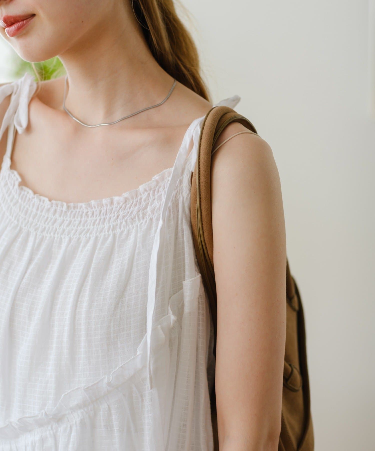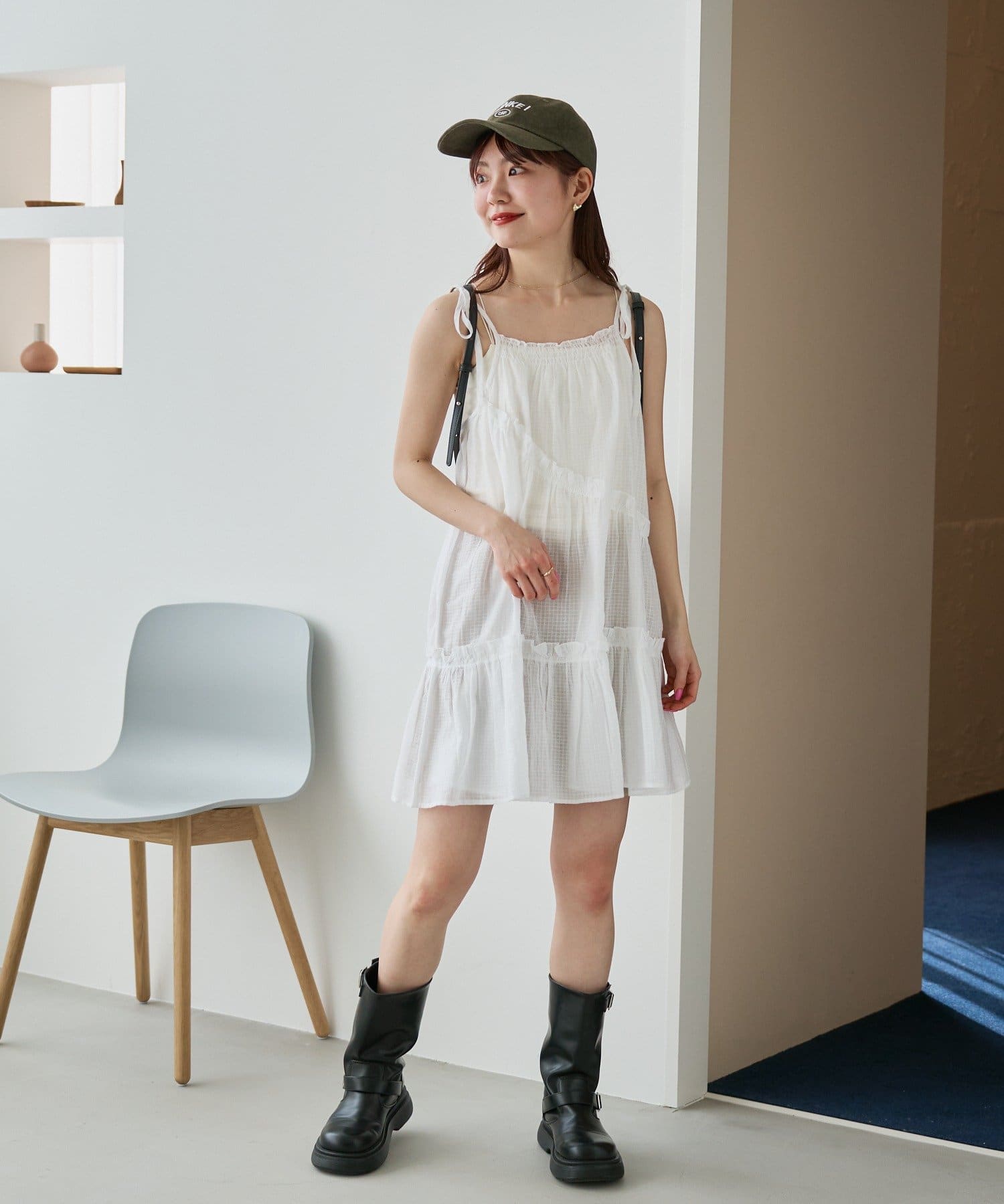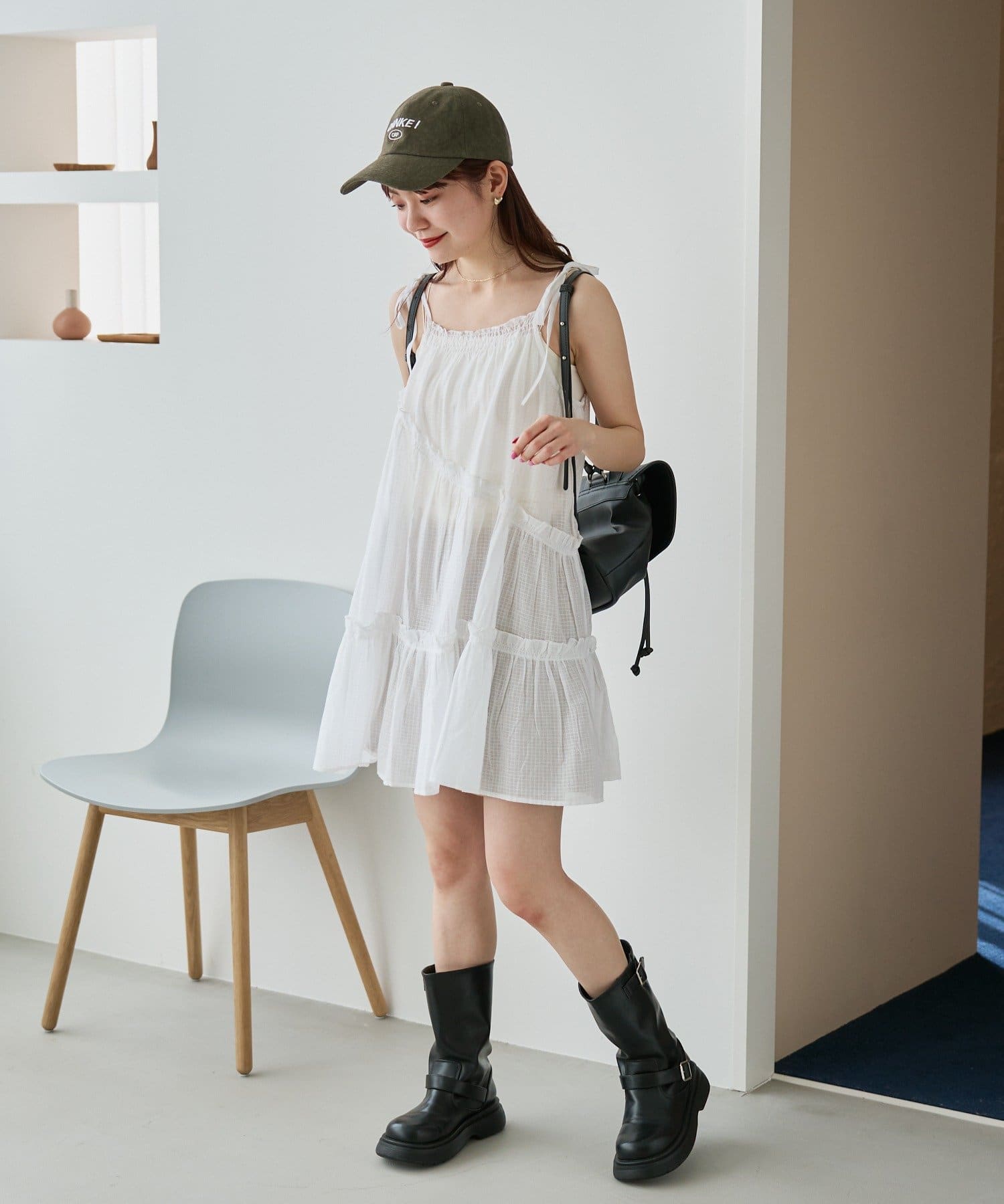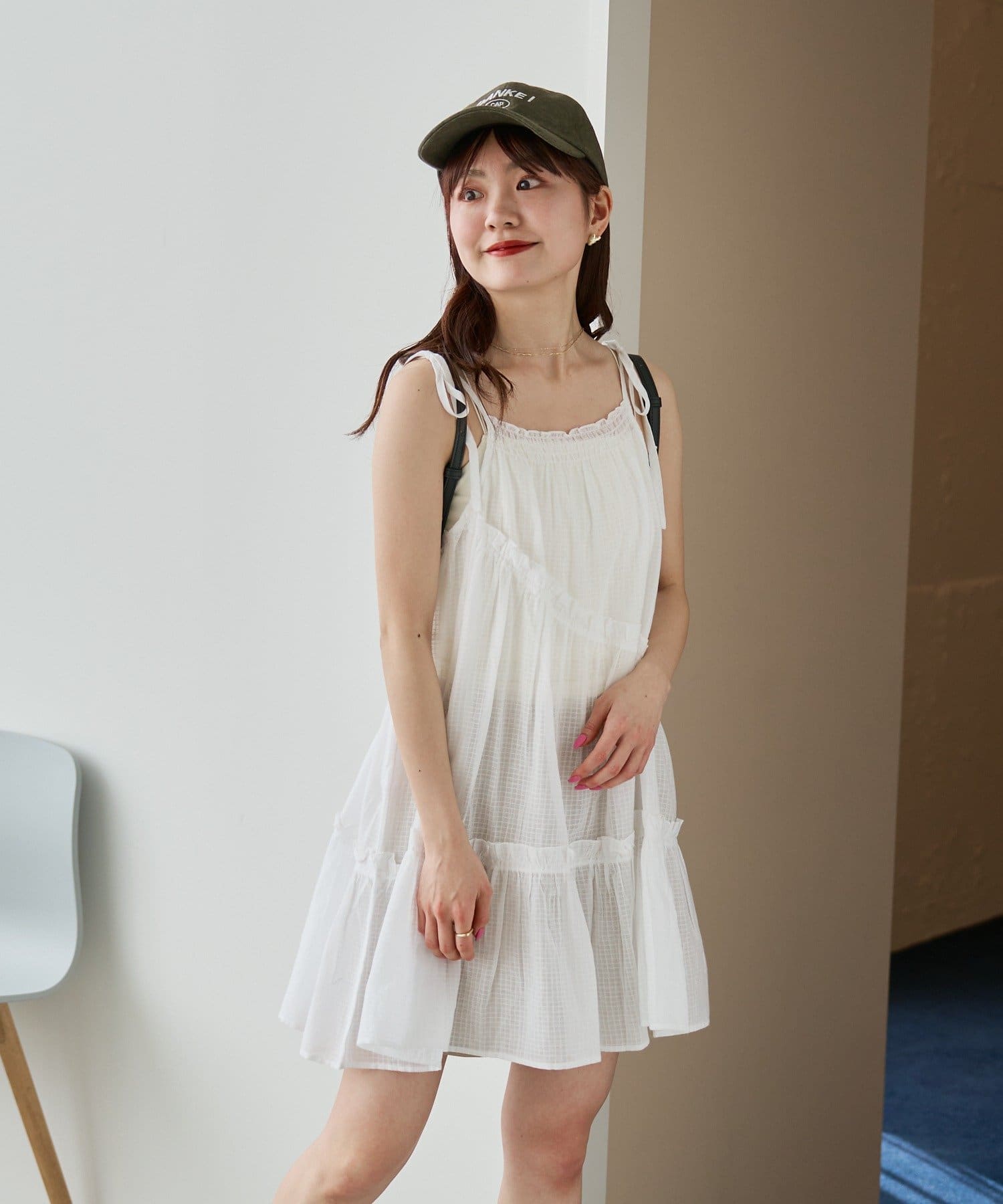 ティアードのデザインに胸元はギャザー仕様でアクセント。