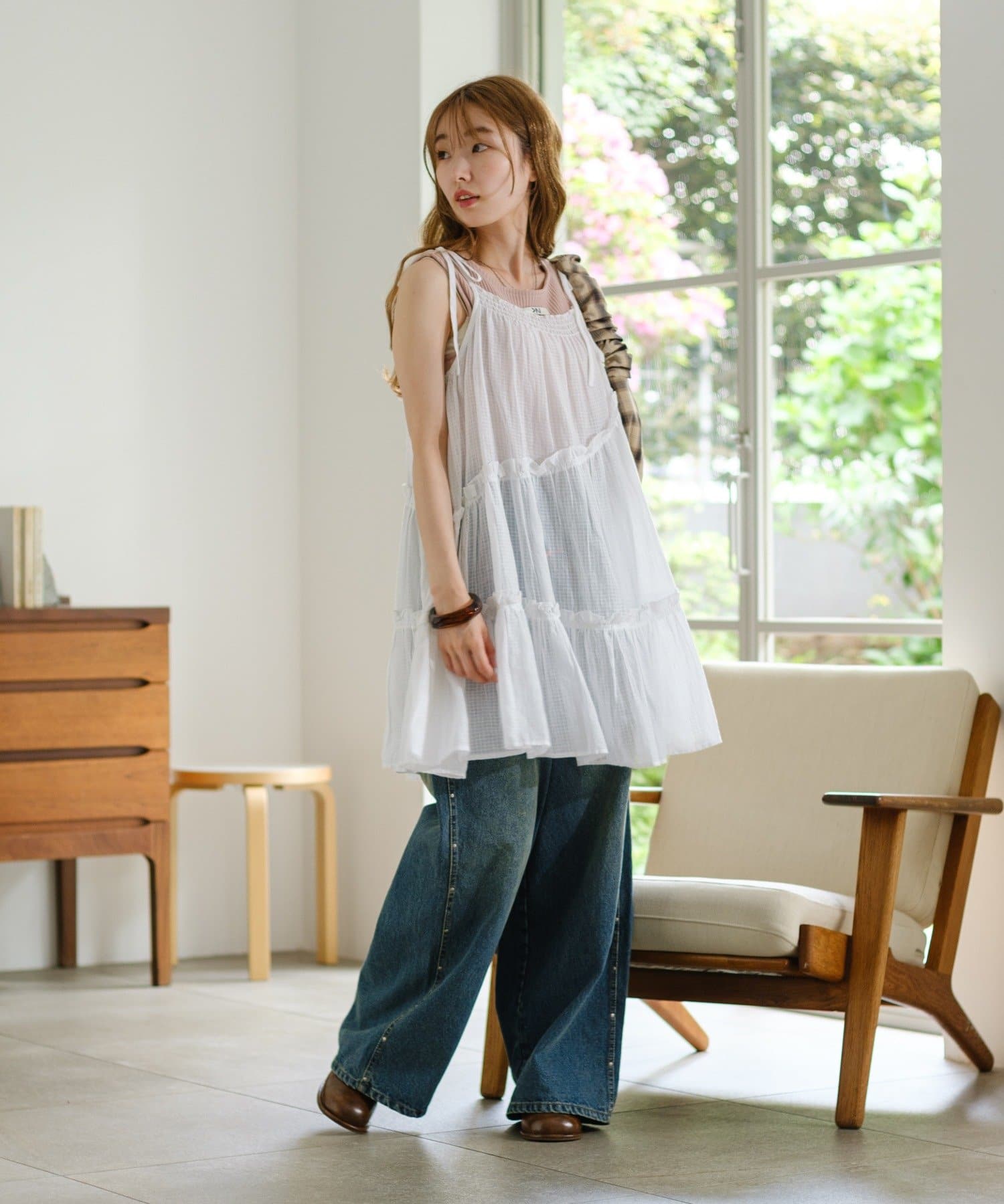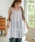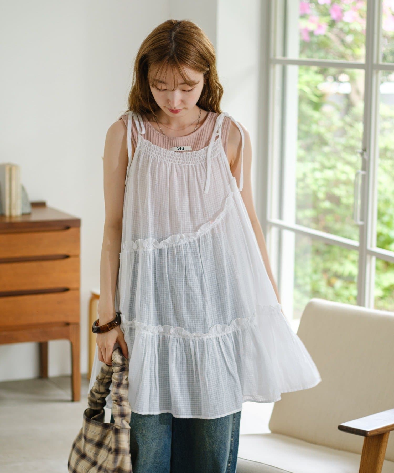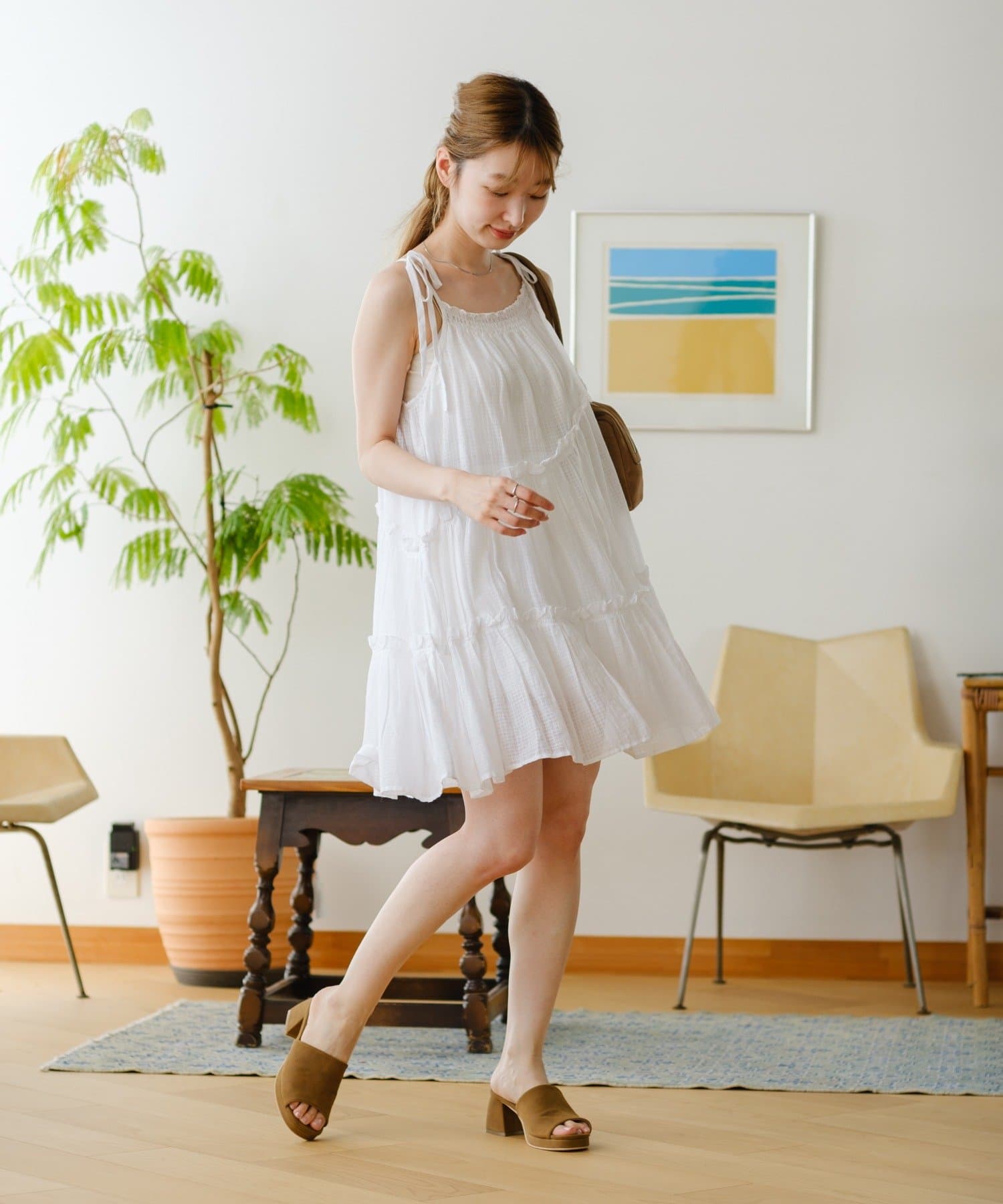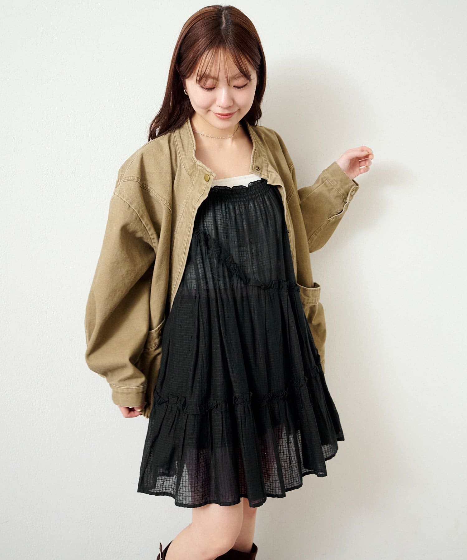 ティアードのデザインに胸元はギャザー仕様でアクセント。