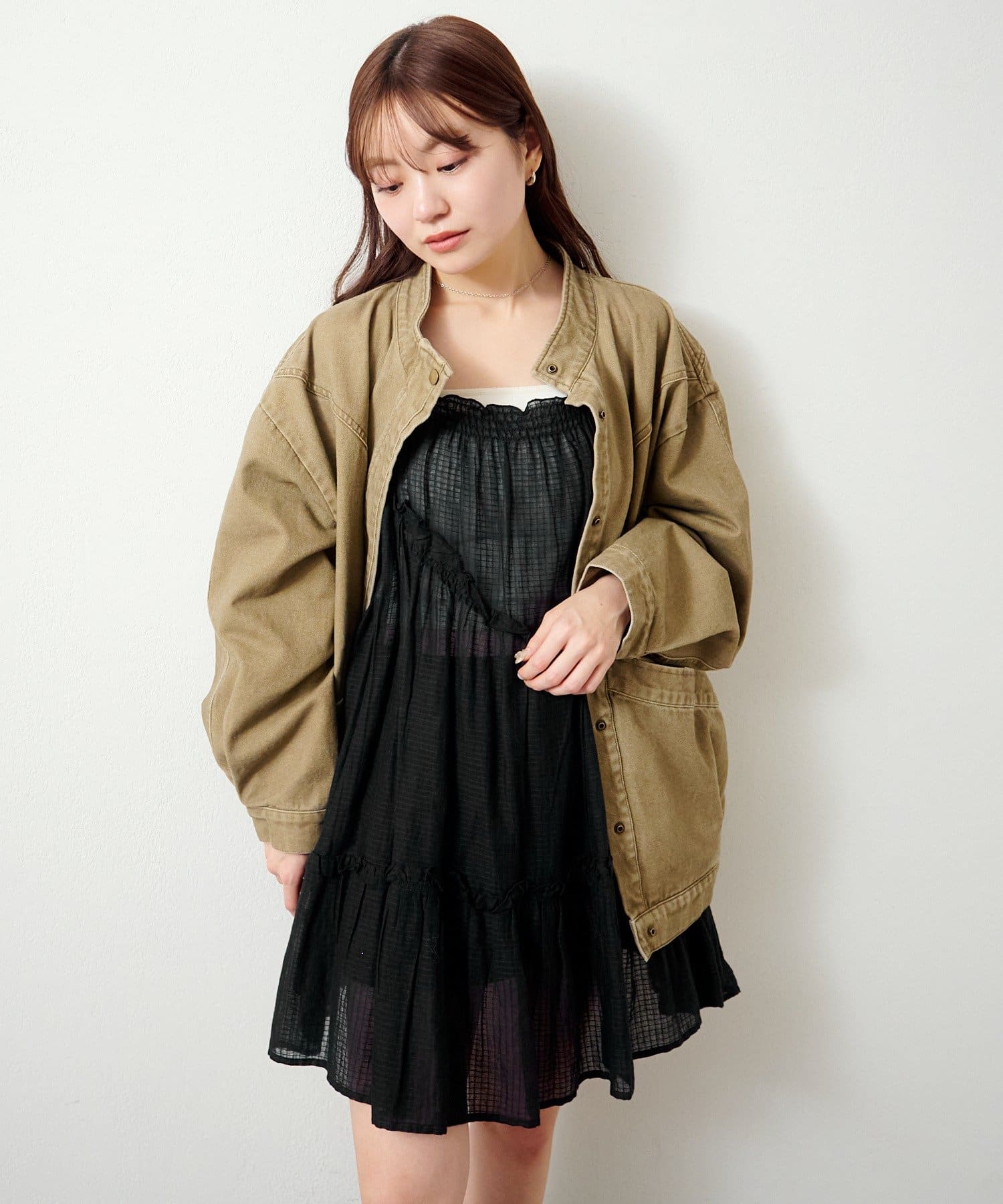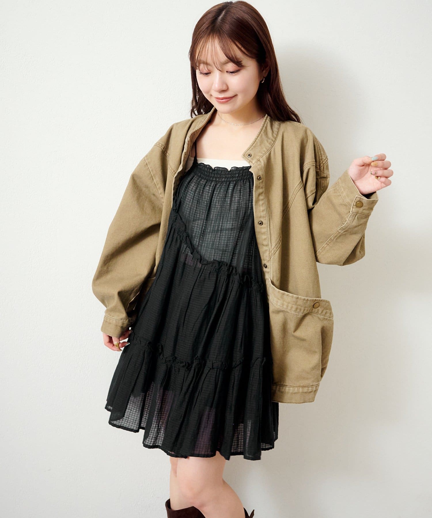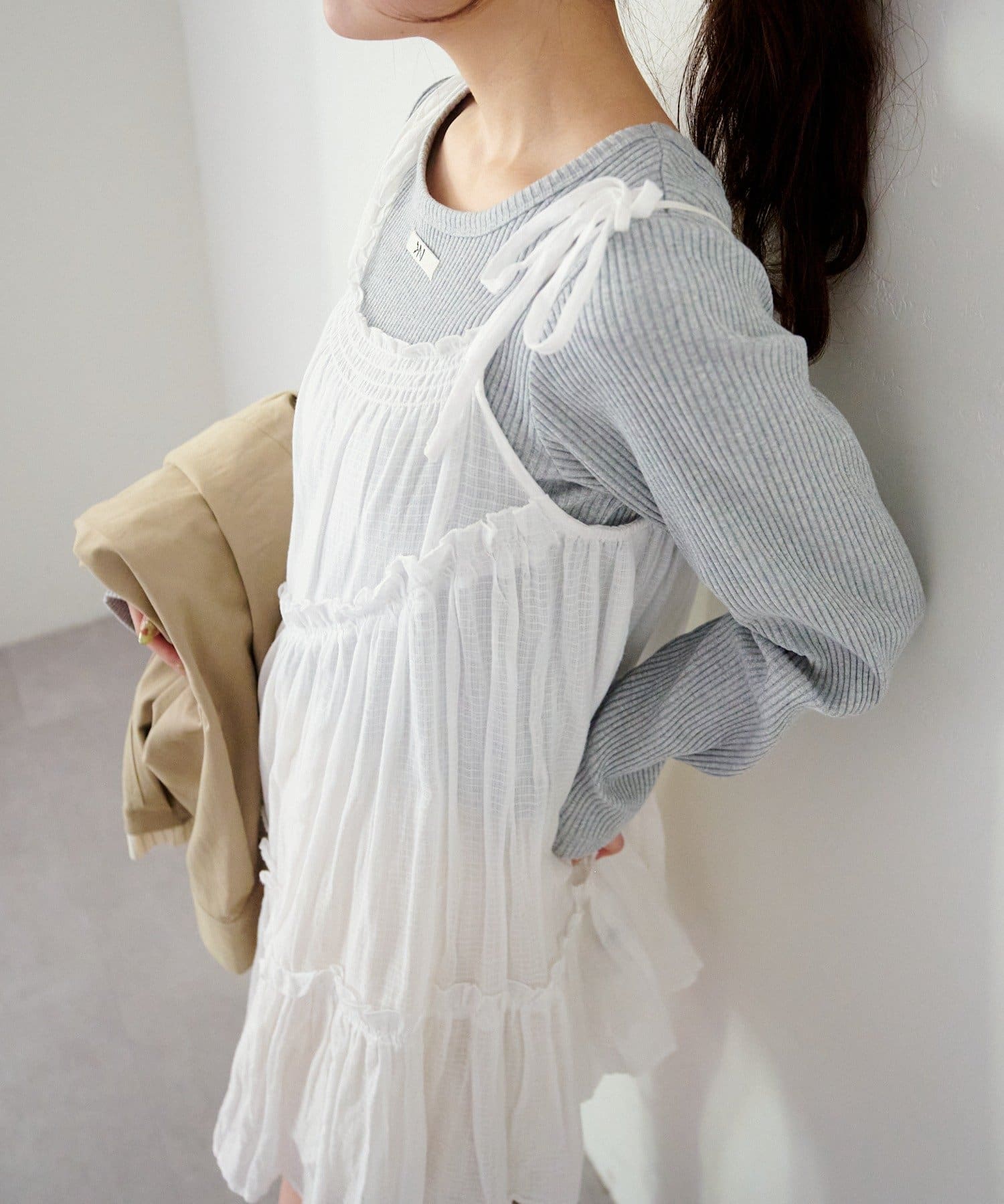 ふわふわのフリフリ、中は長袖からタンクトップまで何にでも合うこと間違いなし。