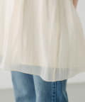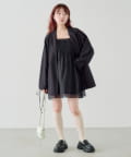 胸元にはギャザーを寄せ、ふんわりと広がるシルエットが女性らしい軽やかな印象に。