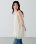 華奢なストラップとシアー感のある素材が抜け感を演出し、レイヤードスタイルを楽しめるデザイン。