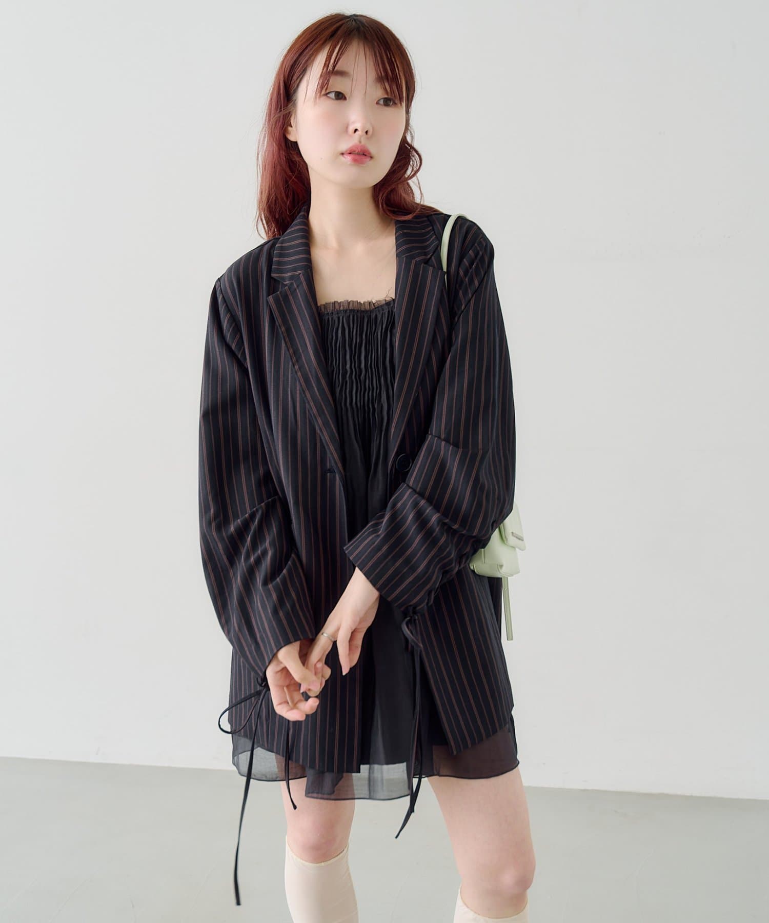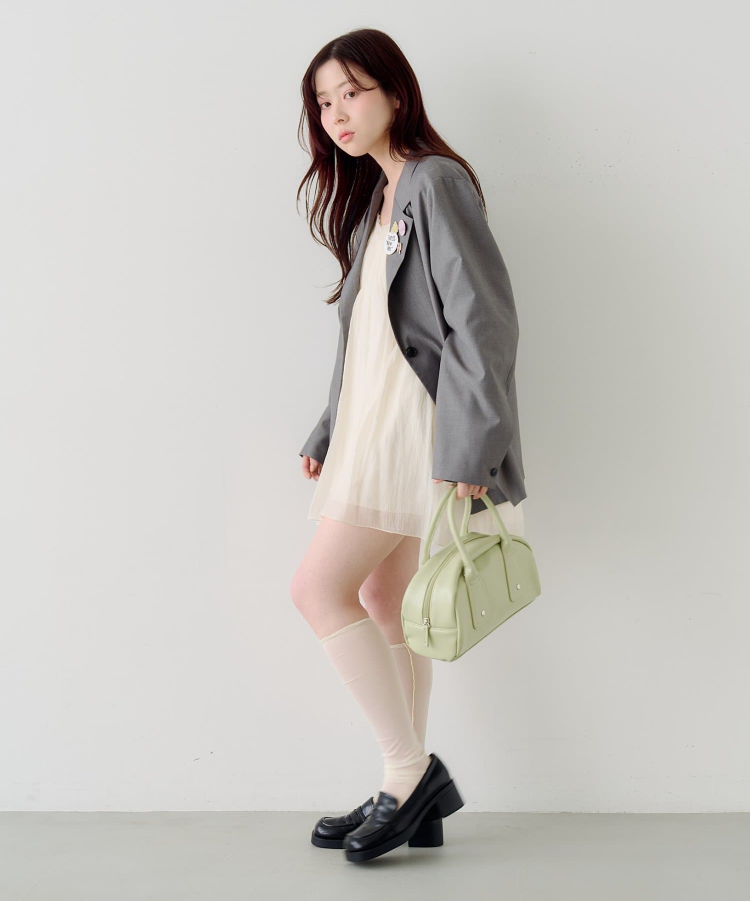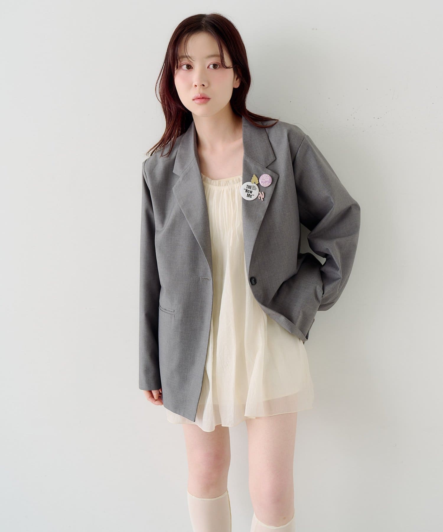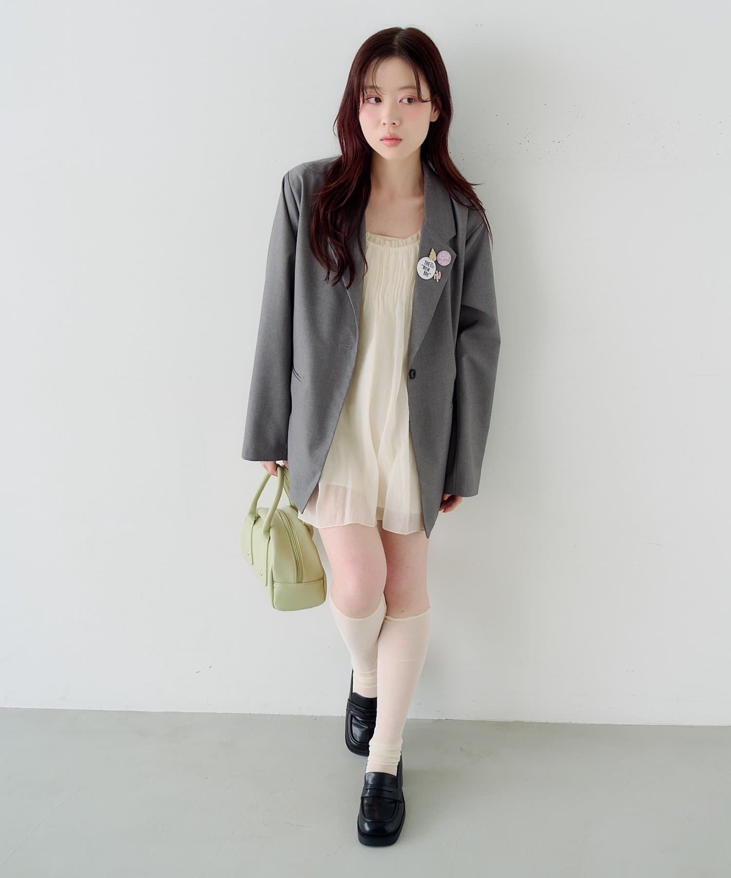 上からジャケットを羽織れば、甘さを抑えた大人カジュアルな着こなしに。