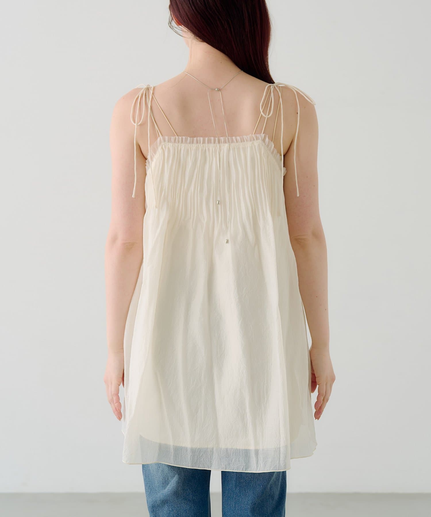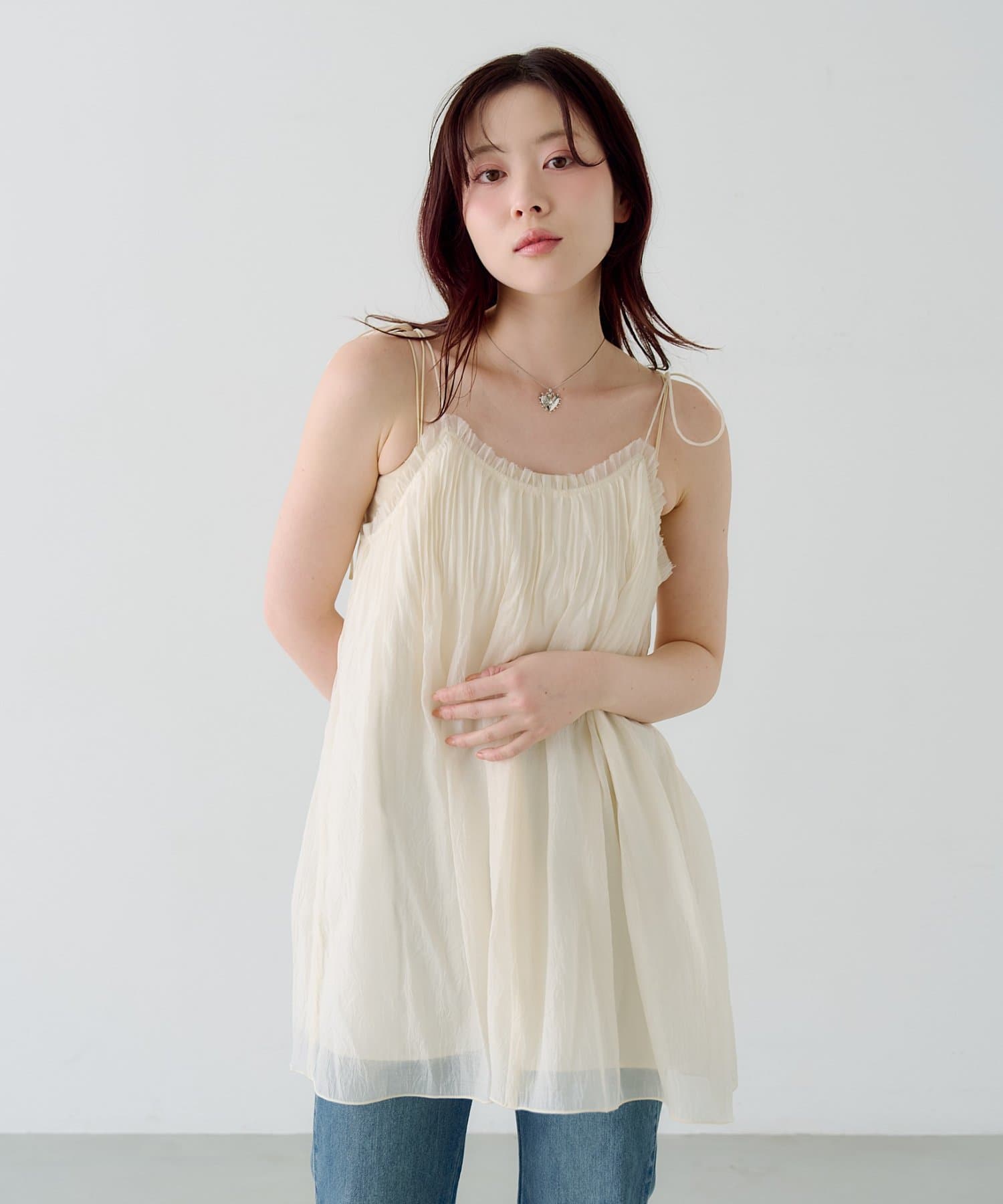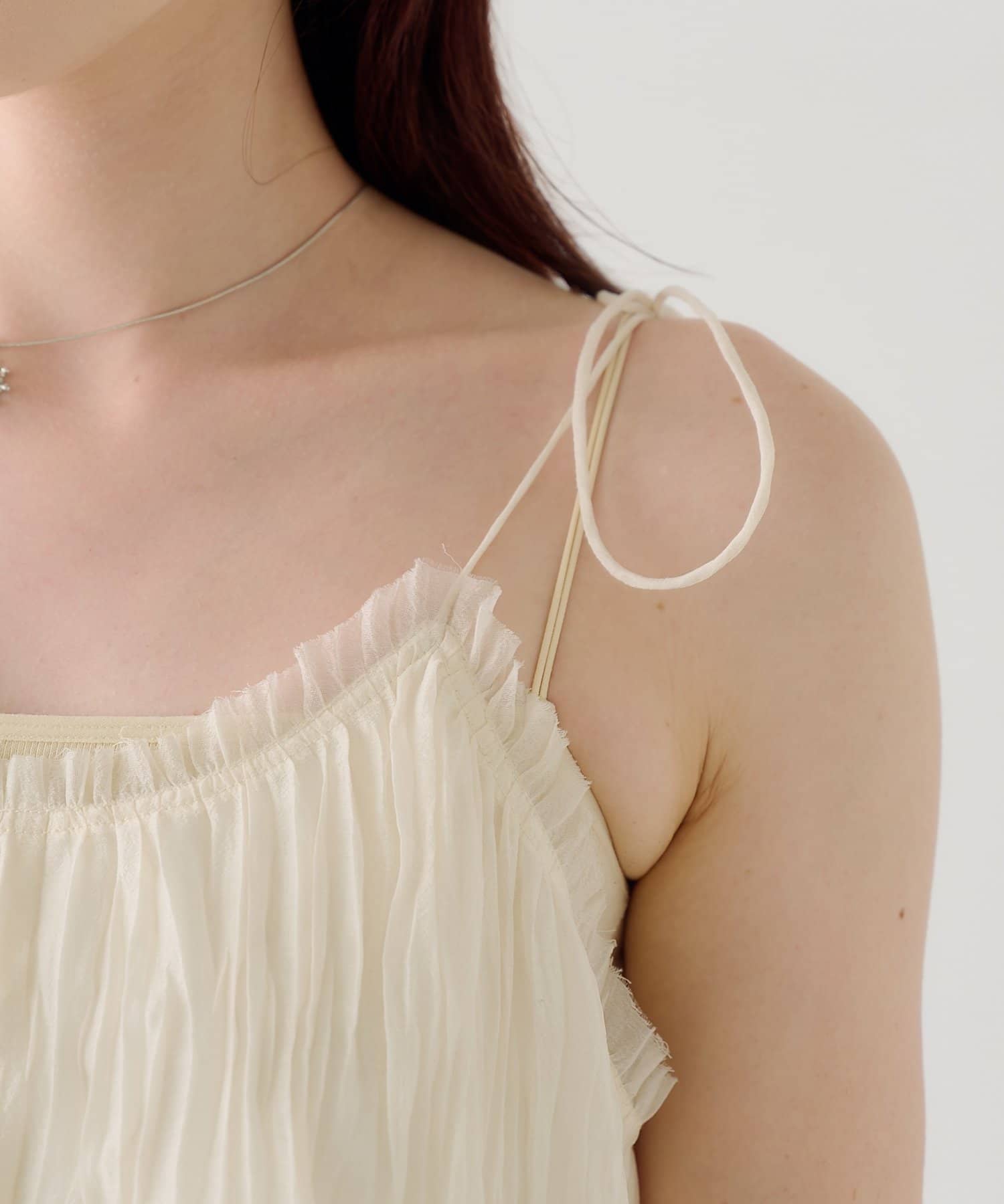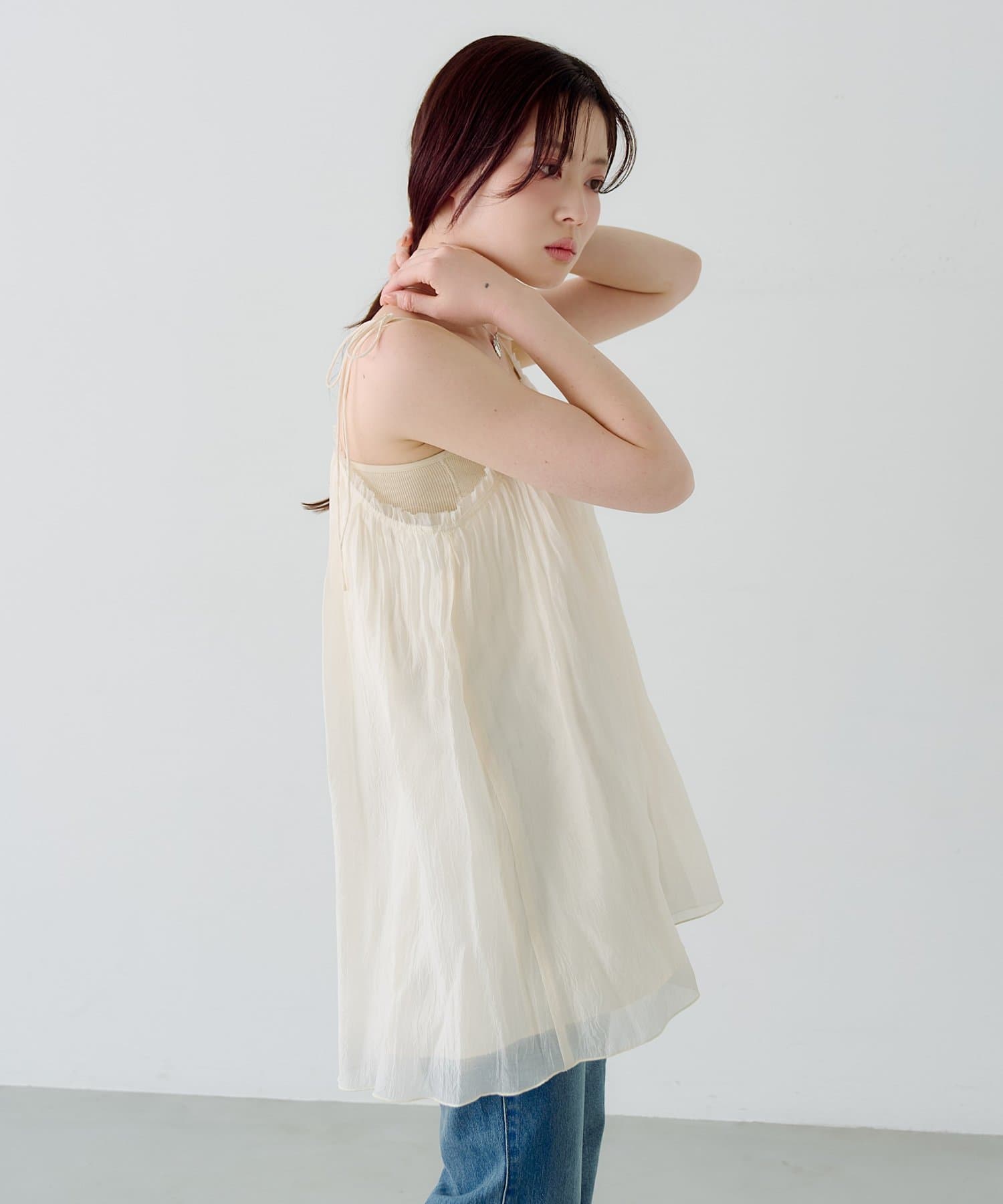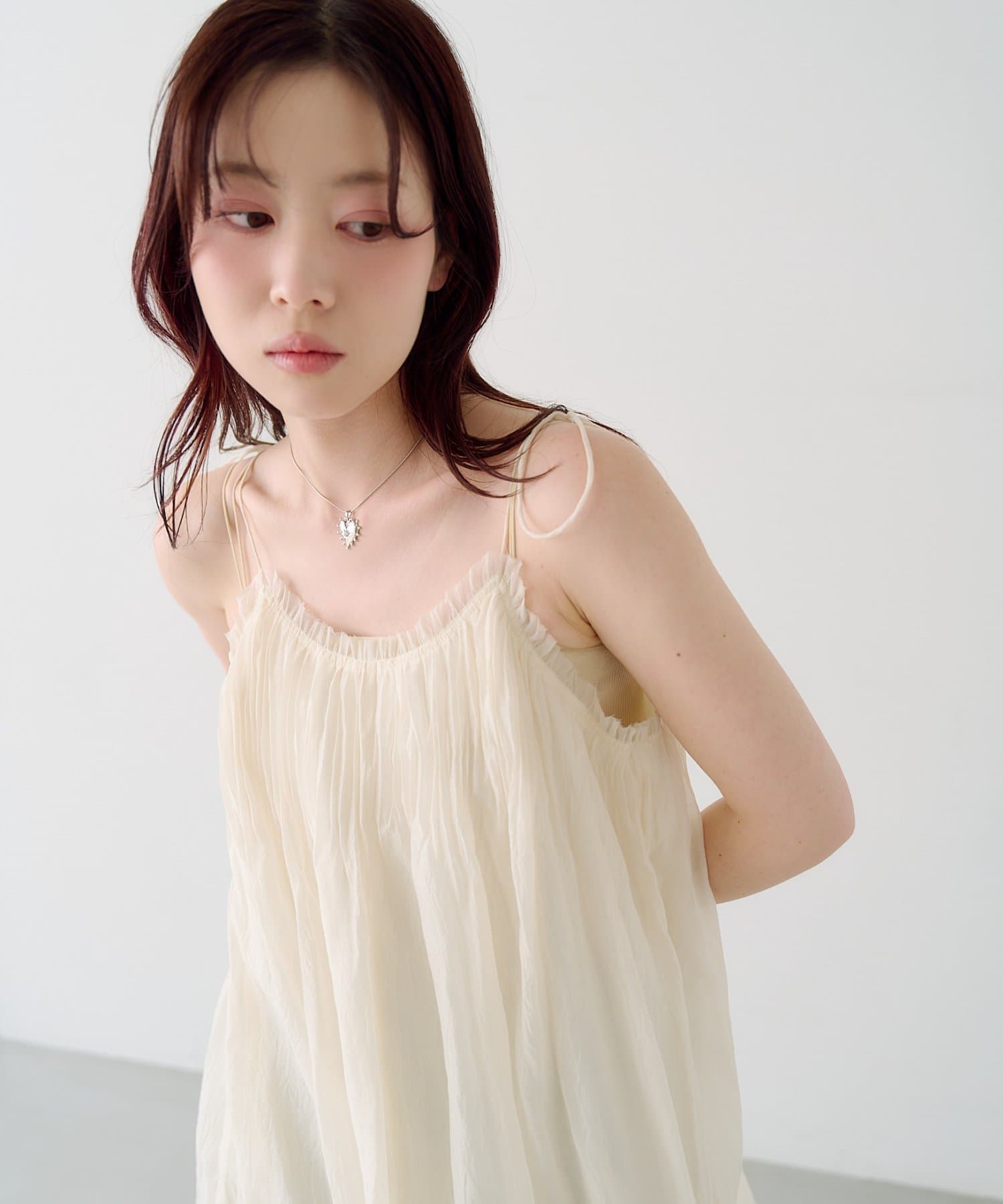 華奢なストラップとシアー感のある素材が抜け感を演出し、レイヤードスタイルを楽しめるデザイン。