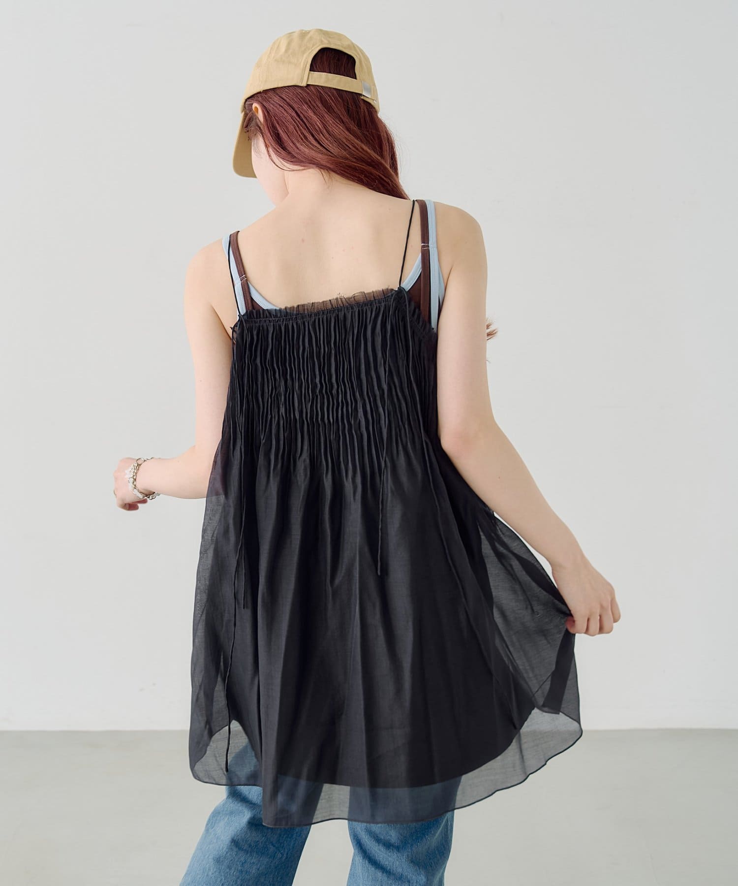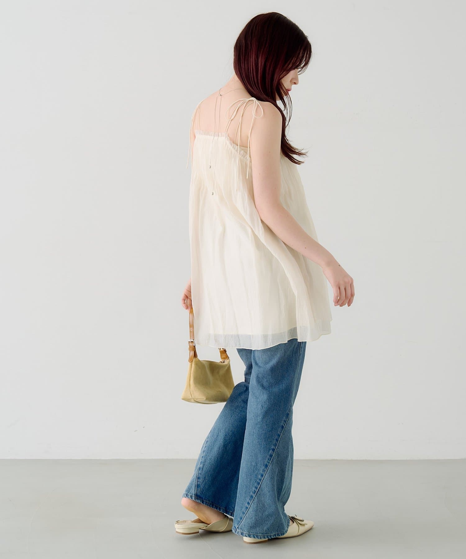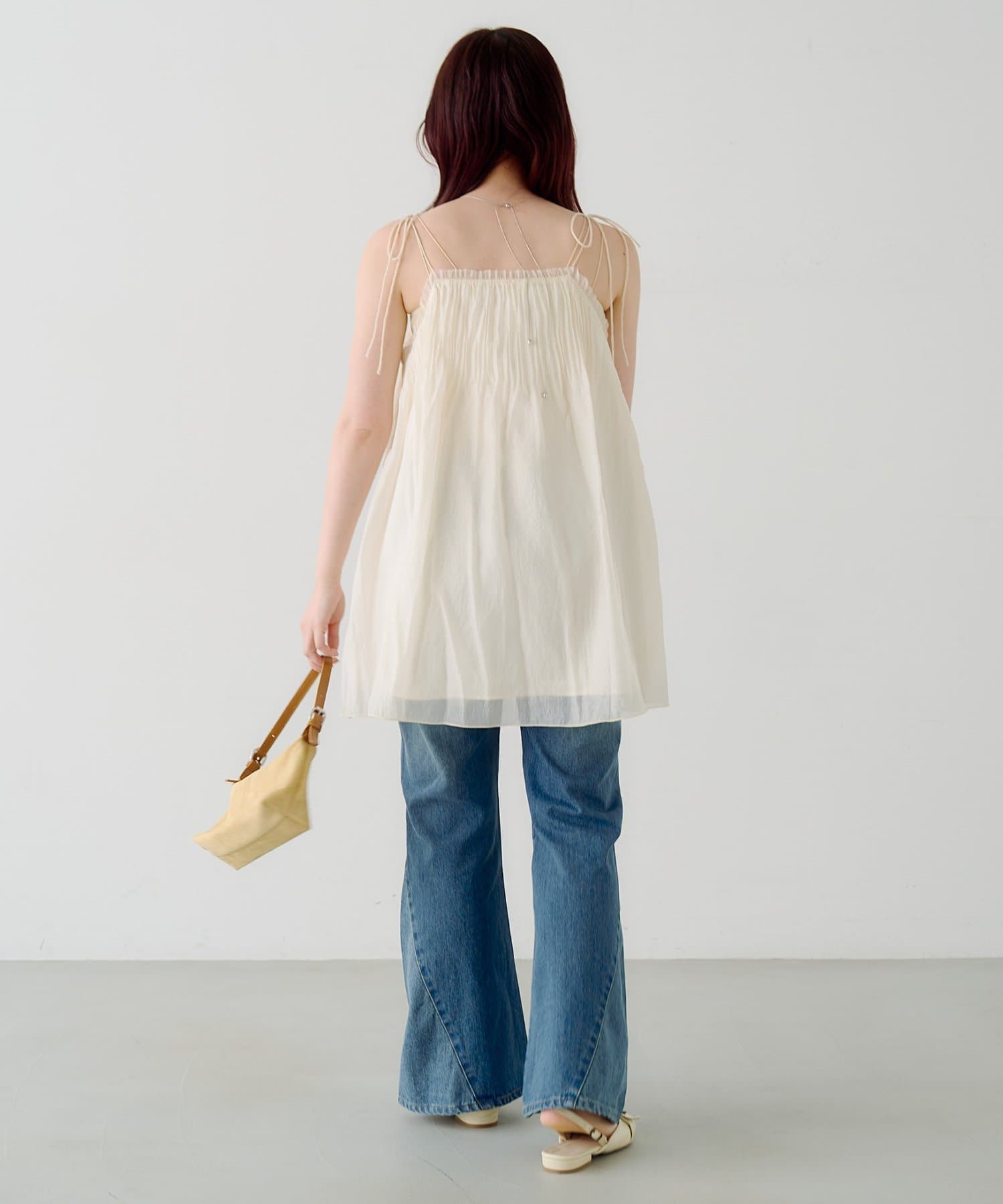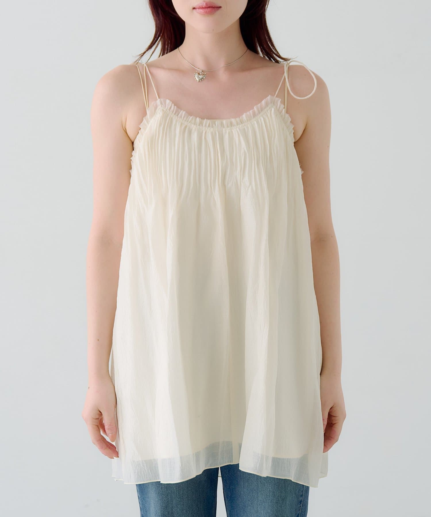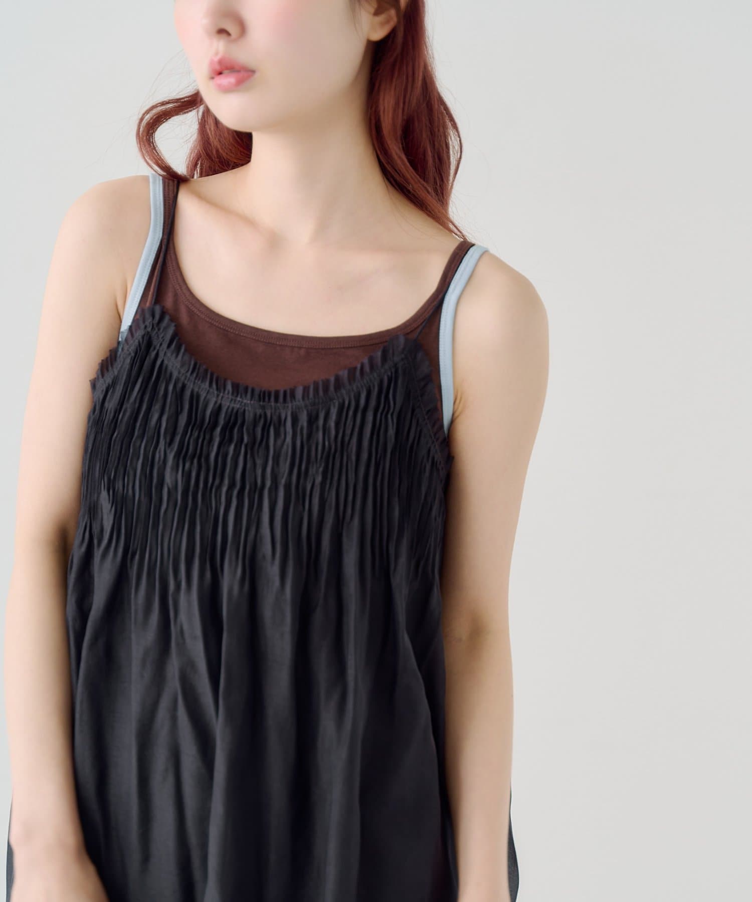 華奢なストラップとシアー感のある素材が抜け感を演出し、レイヤードスタイルを楽しめるデザイン。