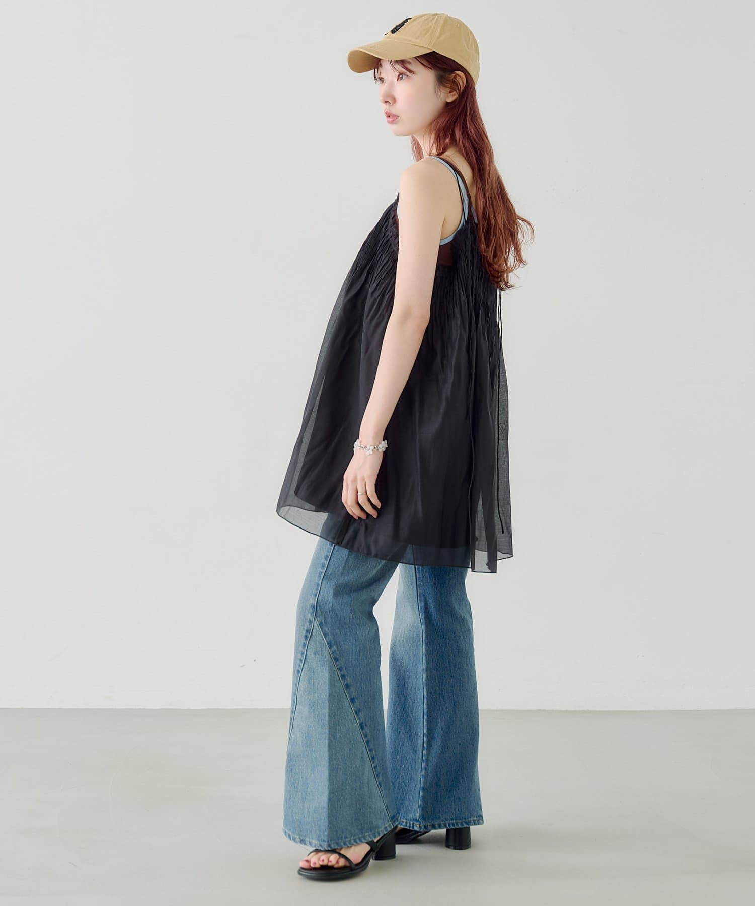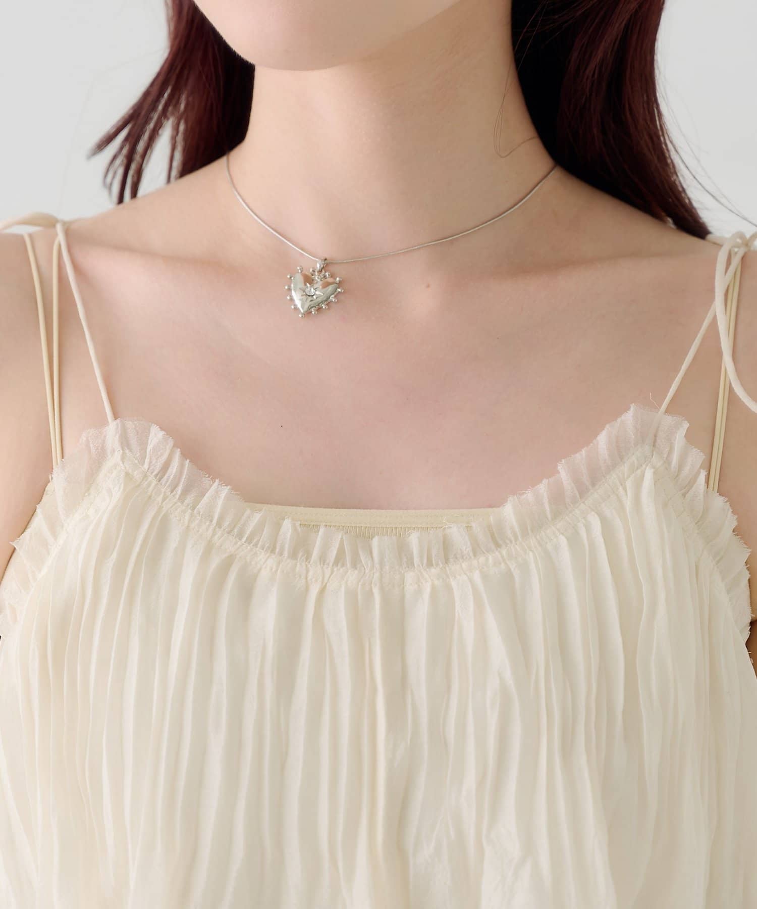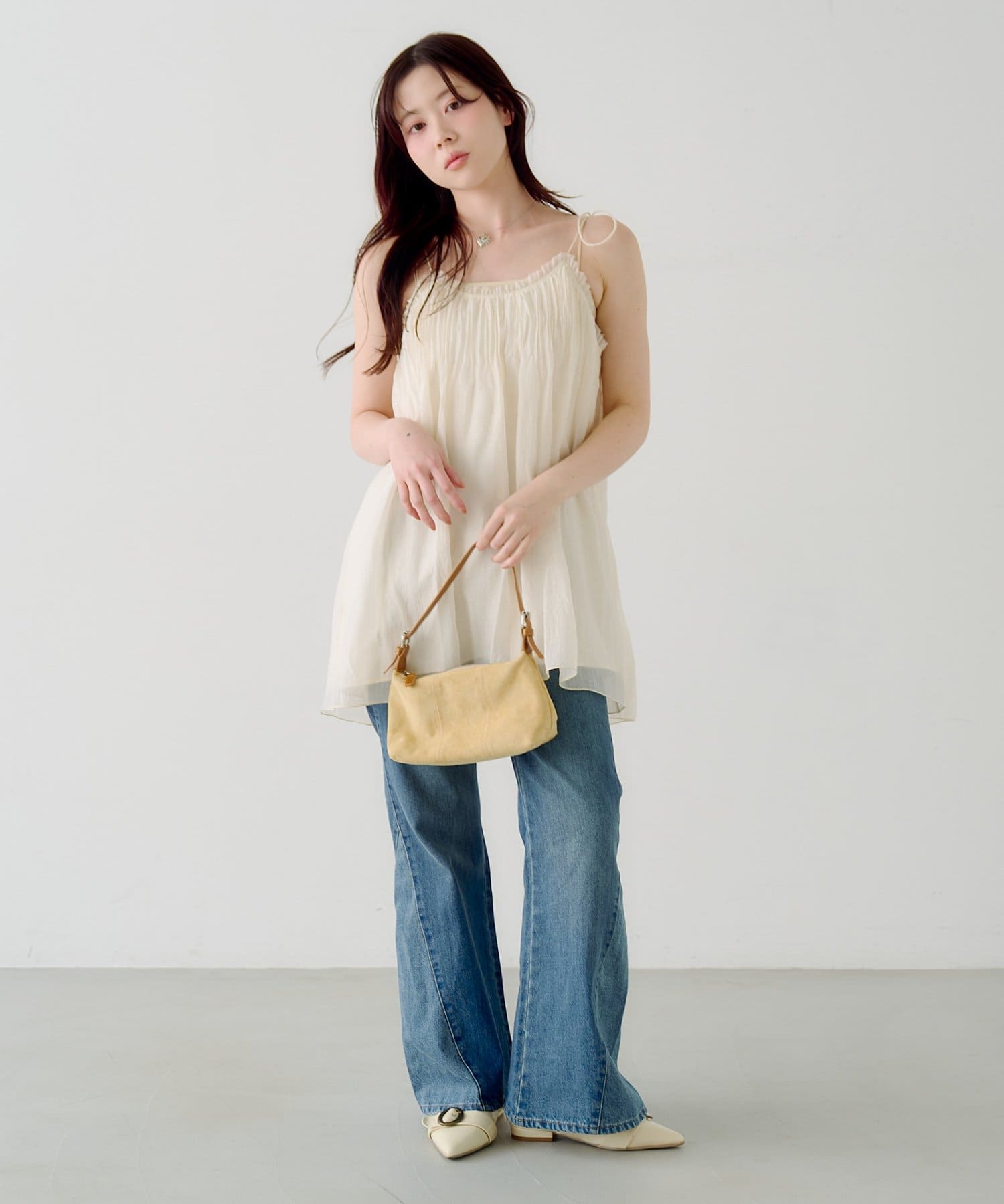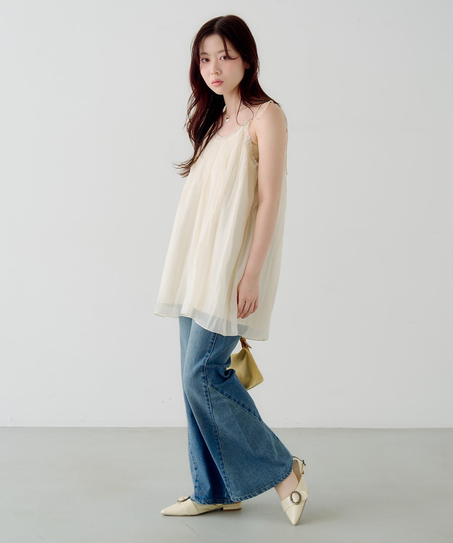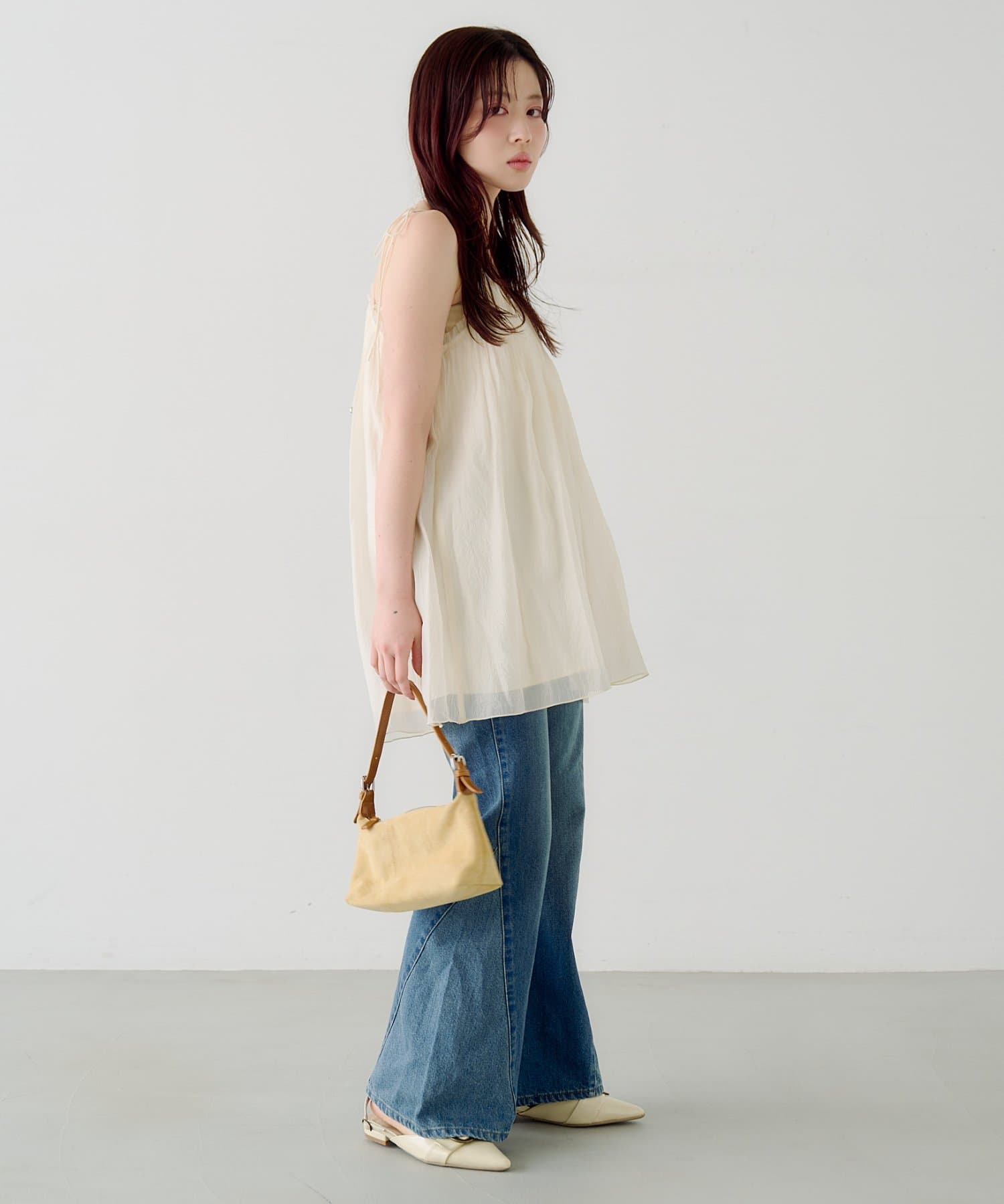 華奢なストラップとシアー感のある素材が抜け感を演出し、レイヤードスタイルを楽しめるデザイン。
