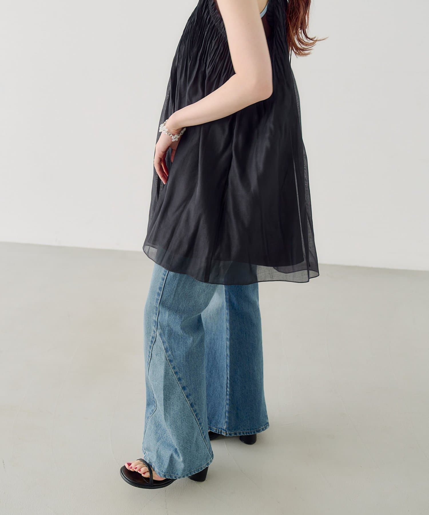 プリーツの立体感とほどよいシアー感があり、動くたびに柔らかな表情を生み出します。