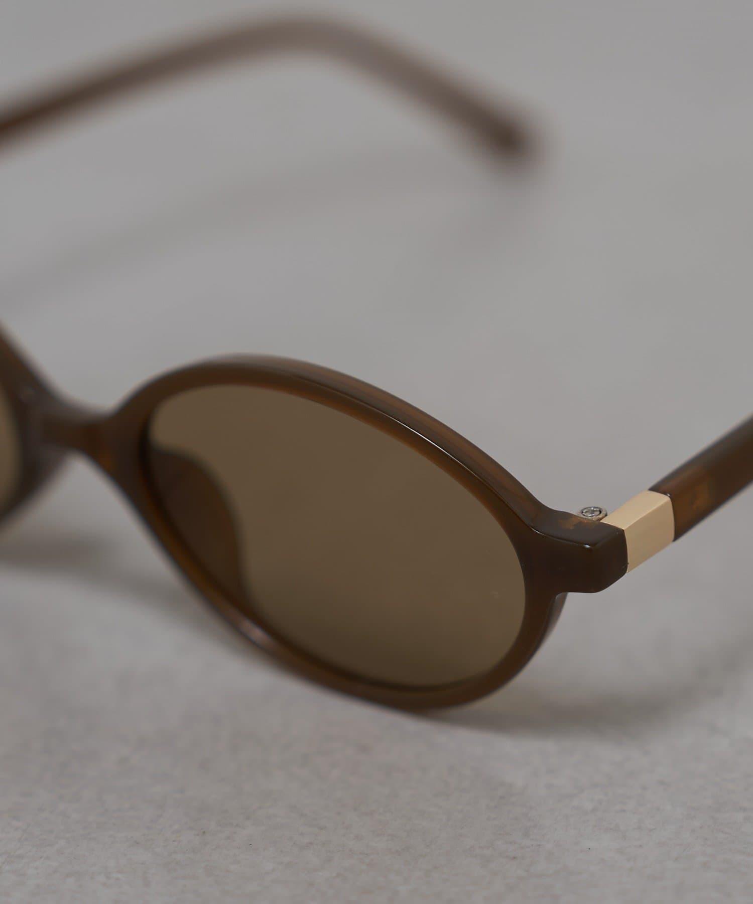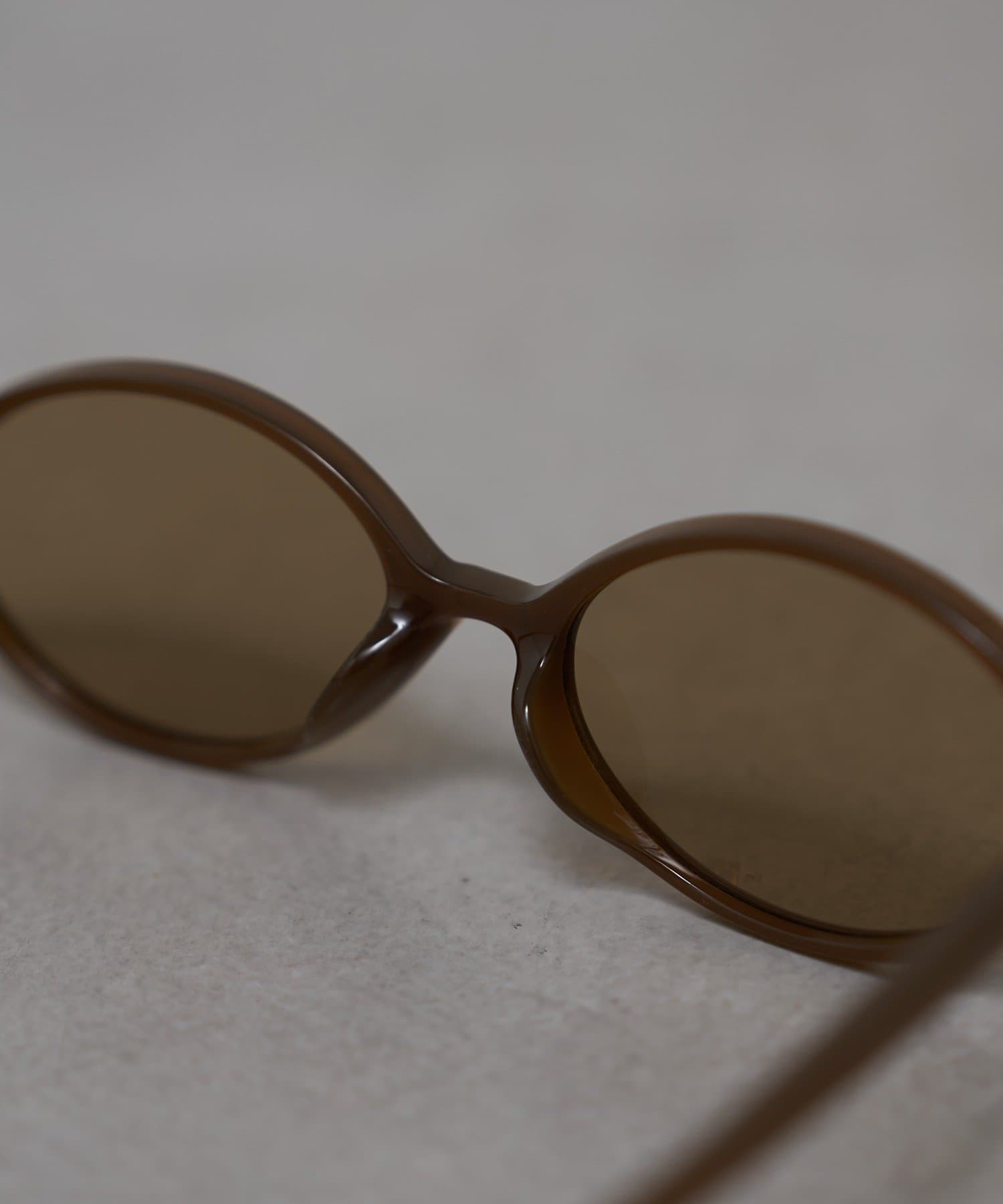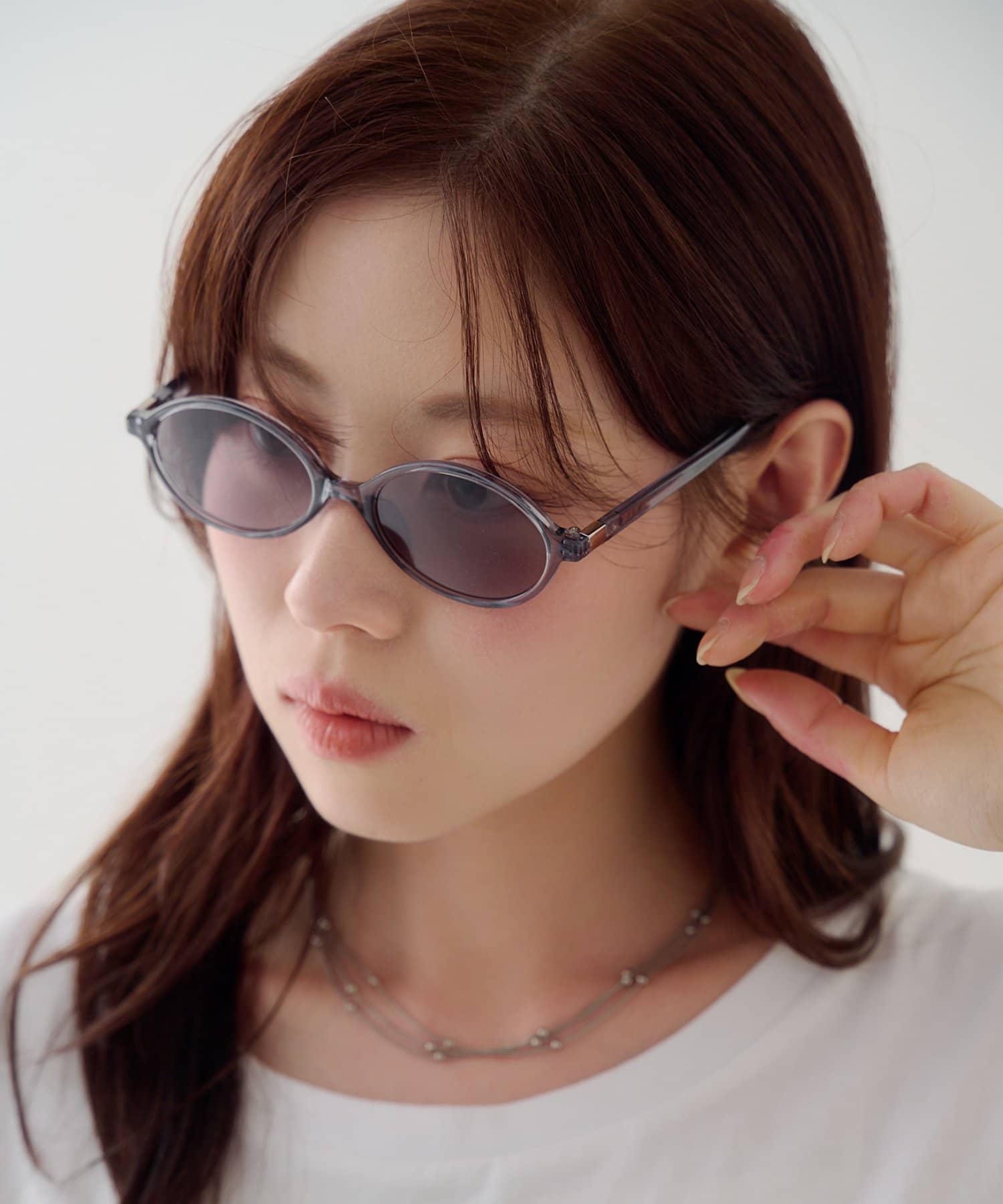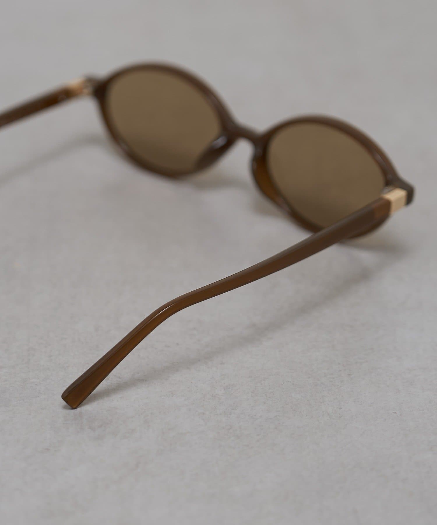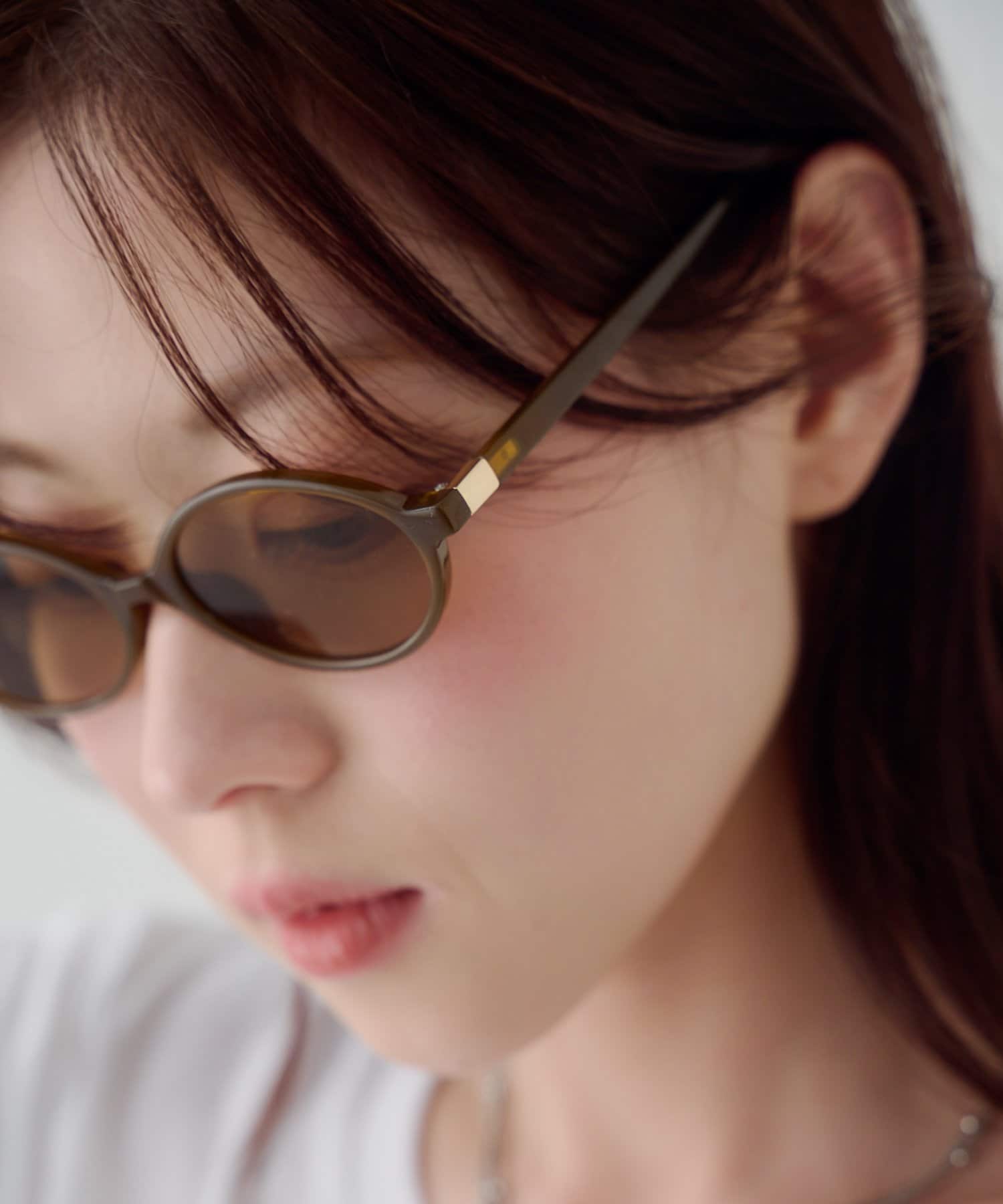 繊細で細身なオーバルフレームが印象的な、モダンかつ上品なサングラス。