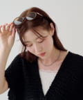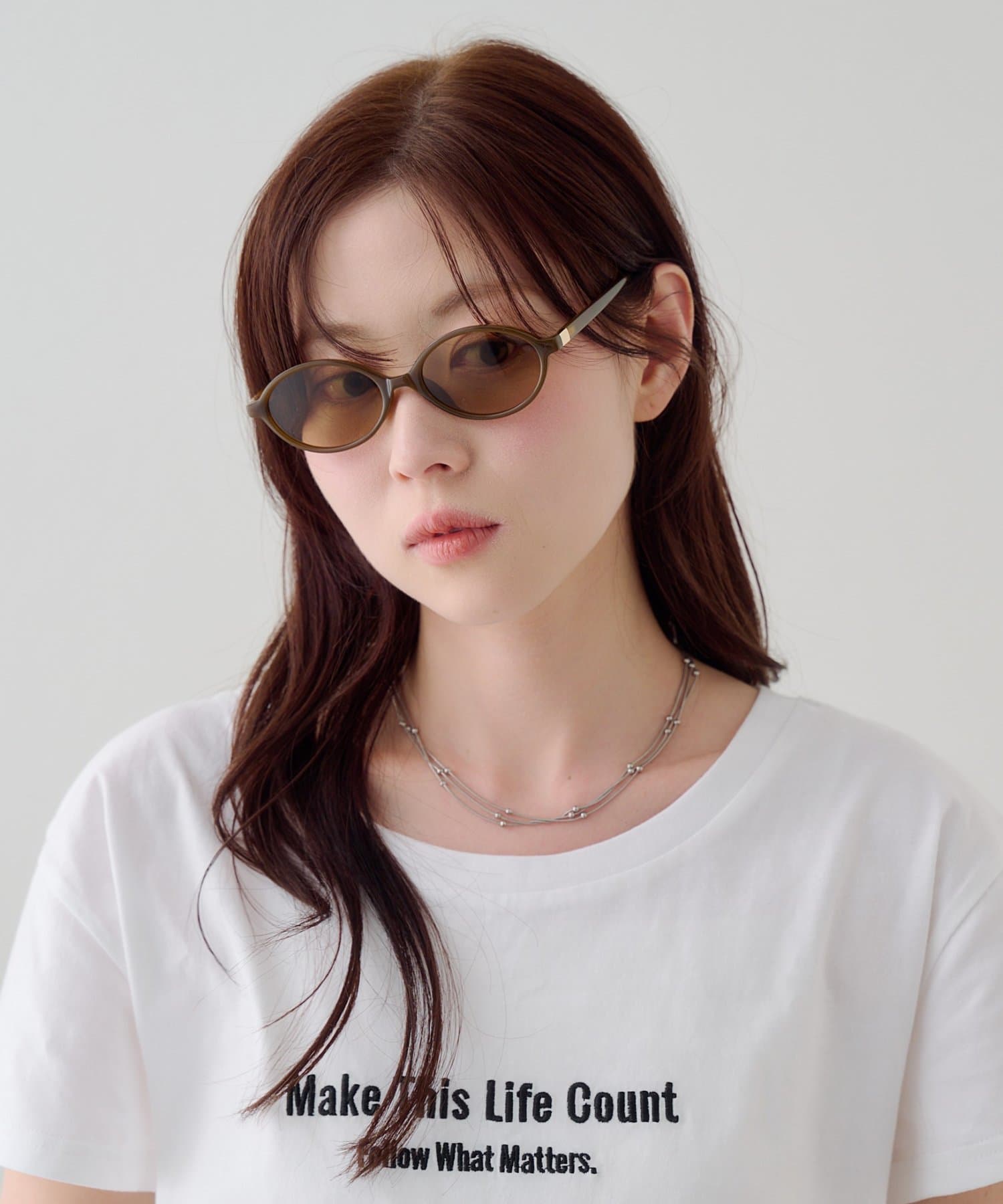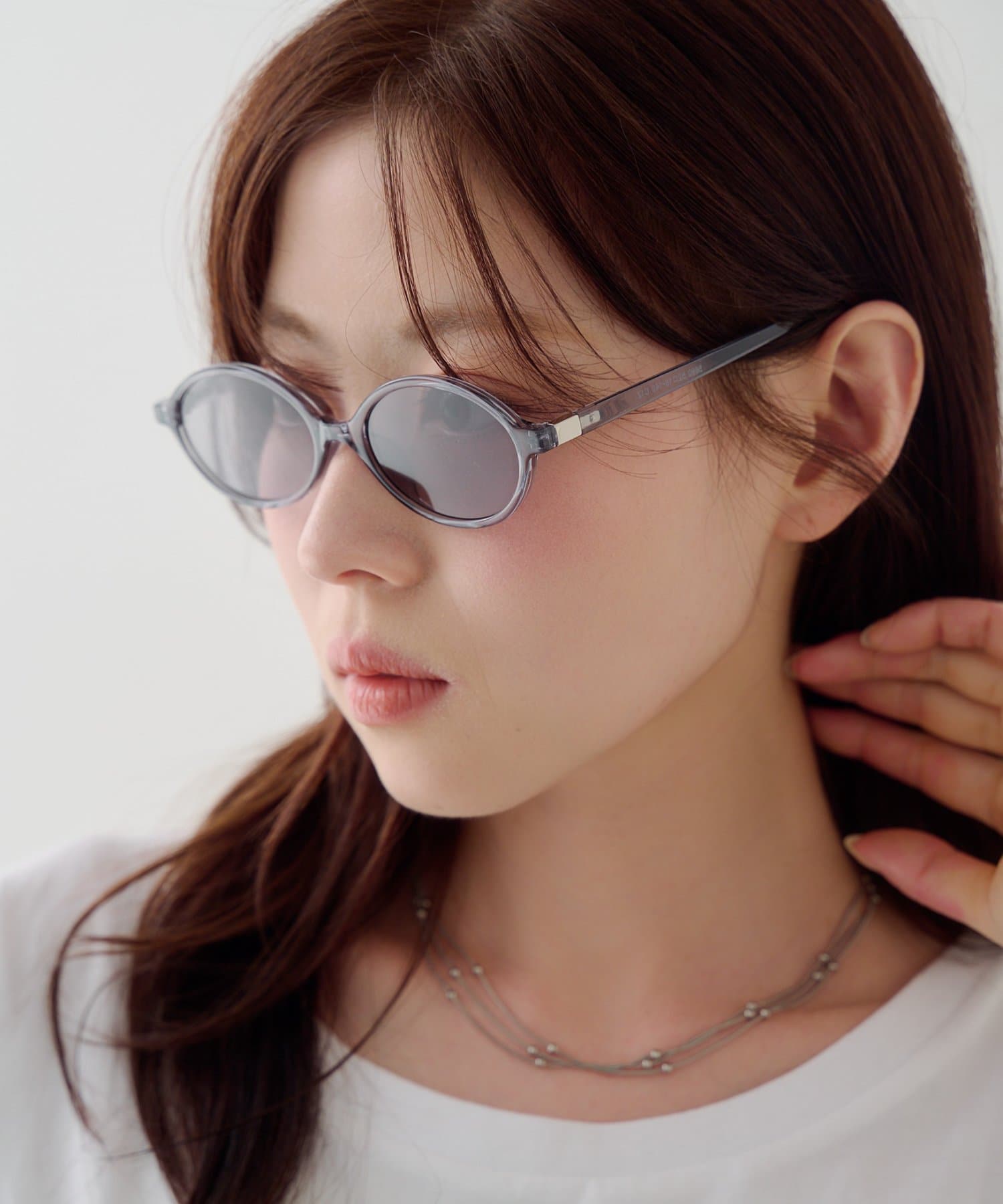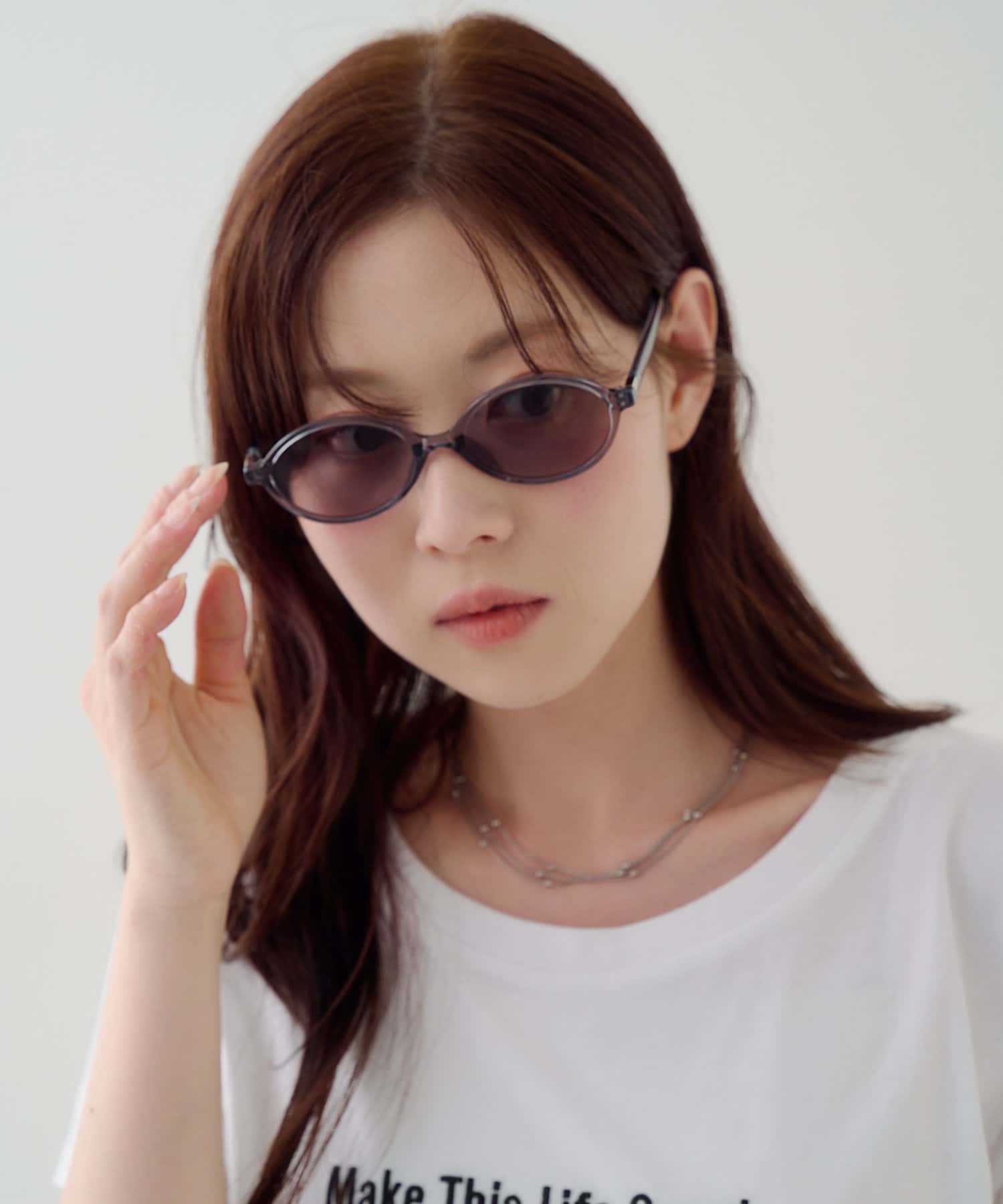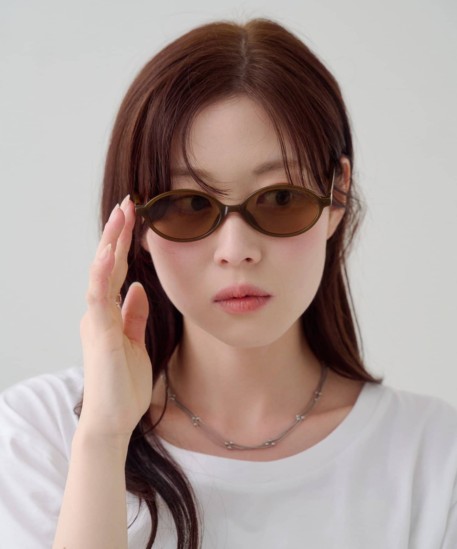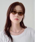繊細で細身なオーバルフレームが印象的な、モダンかつ上品なサングラス。