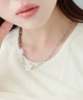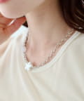 艶やかなシェル素材のフラワーモチーフが目を惹くネックレス。