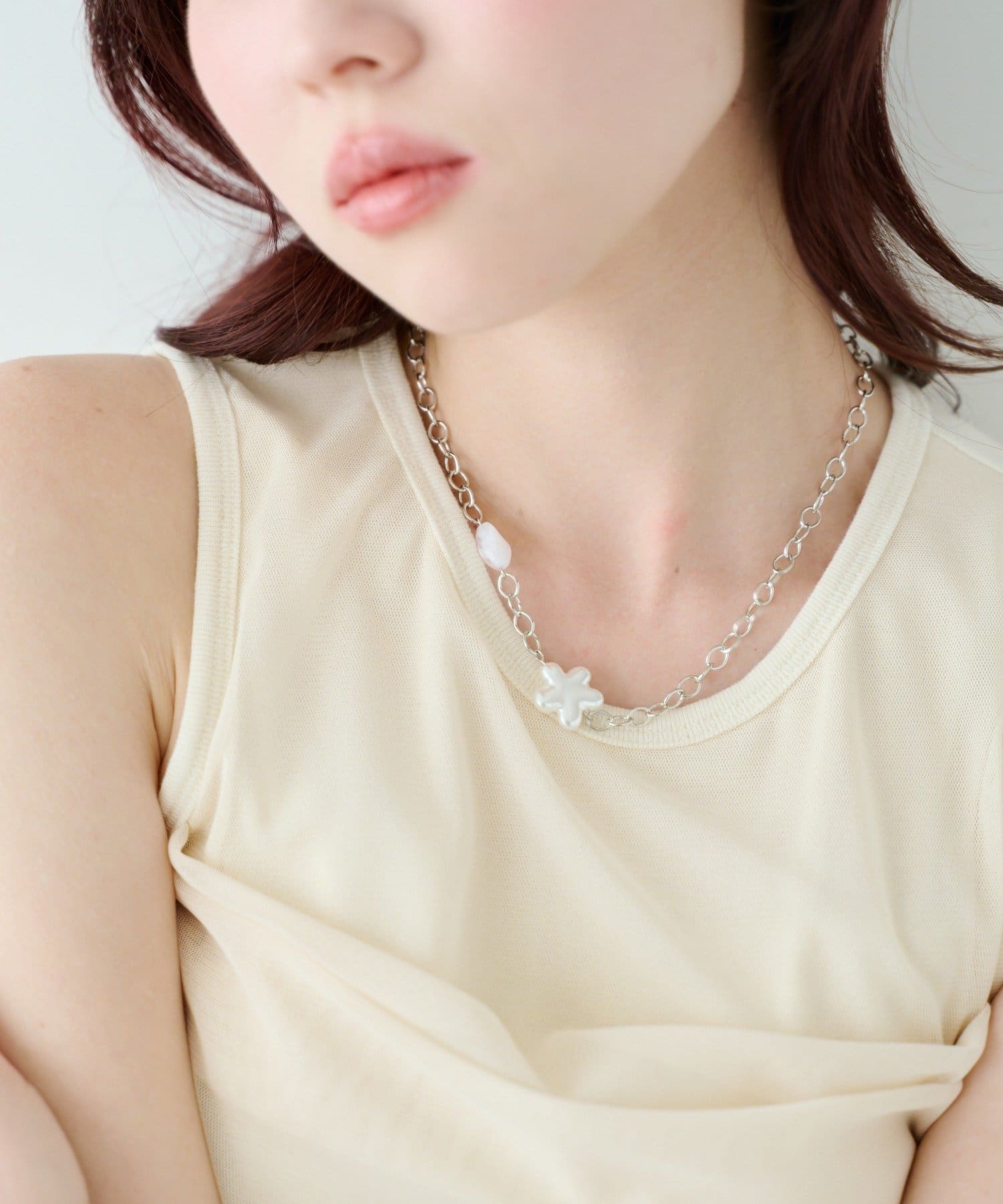 抜け感をつくる、こなれフラワーネックレス