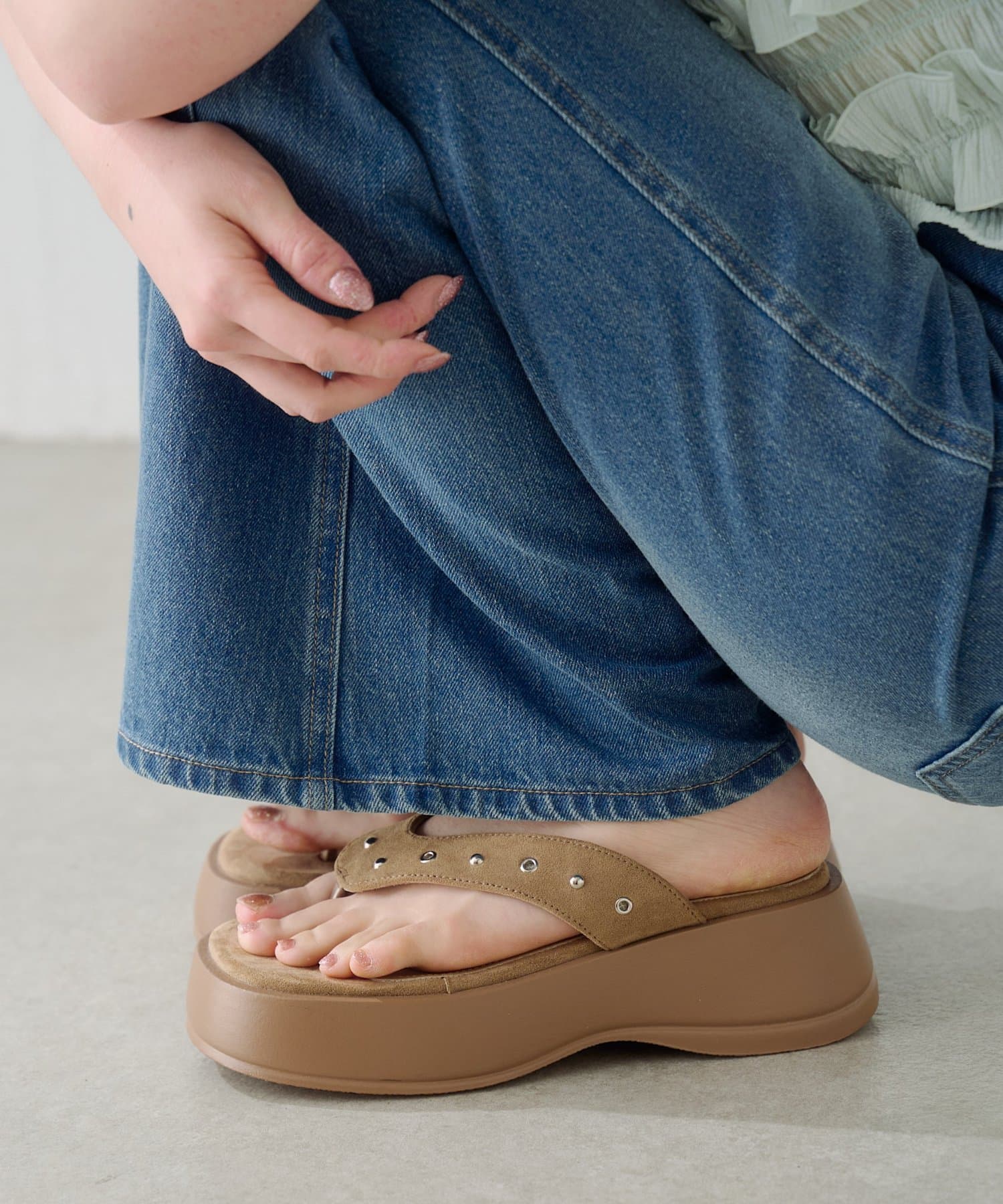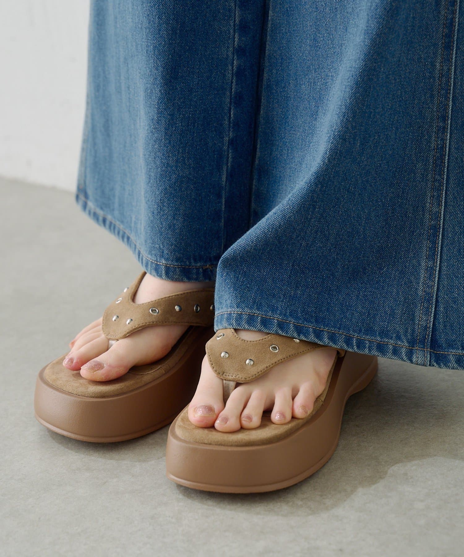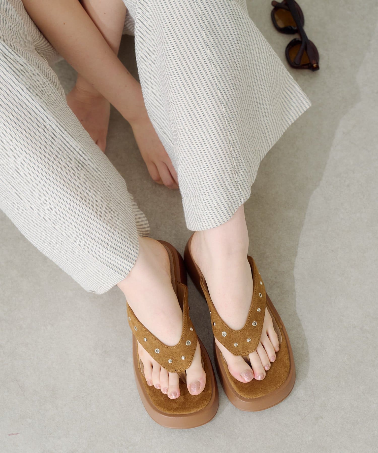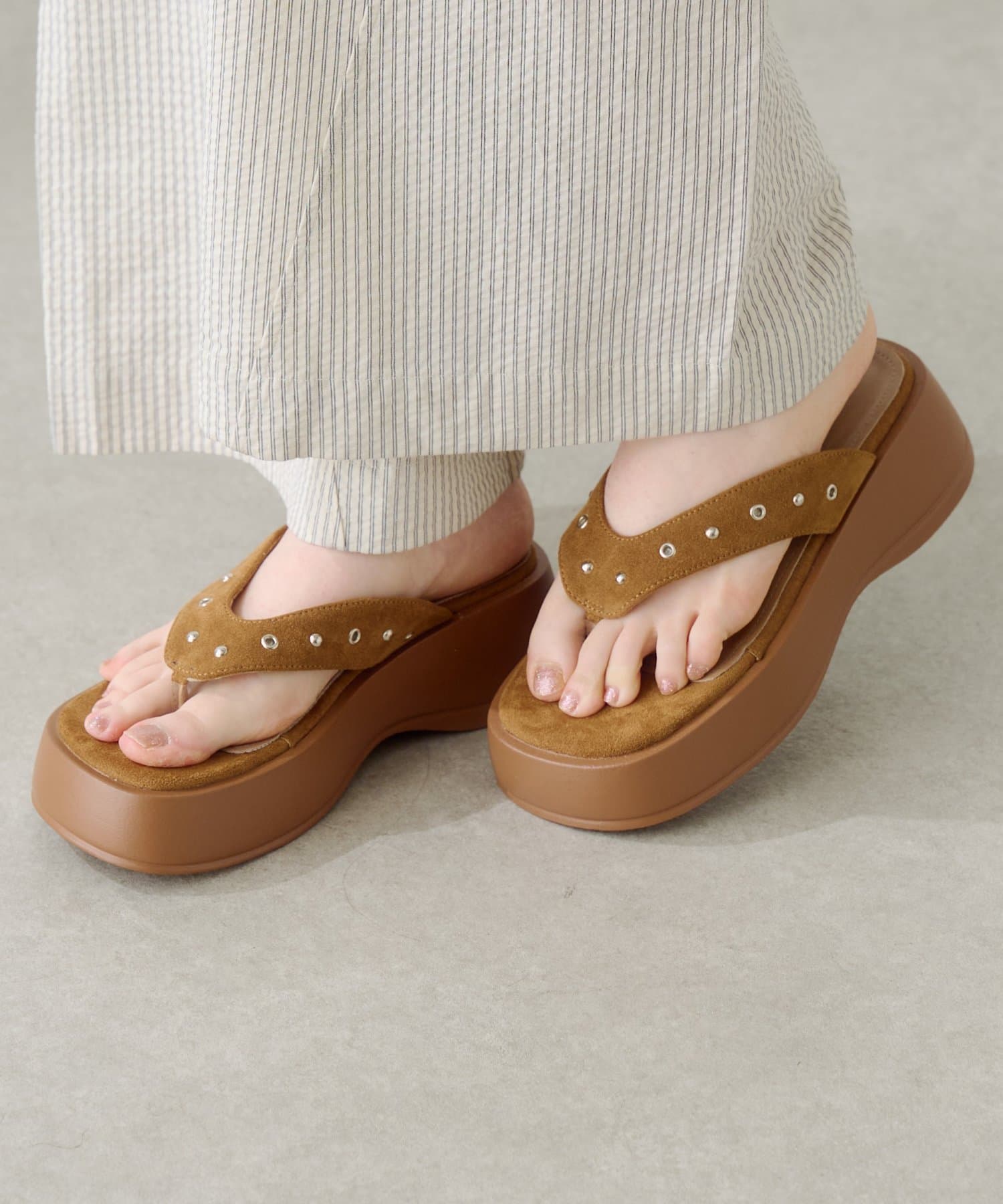 スタッズスエードトングサンダル