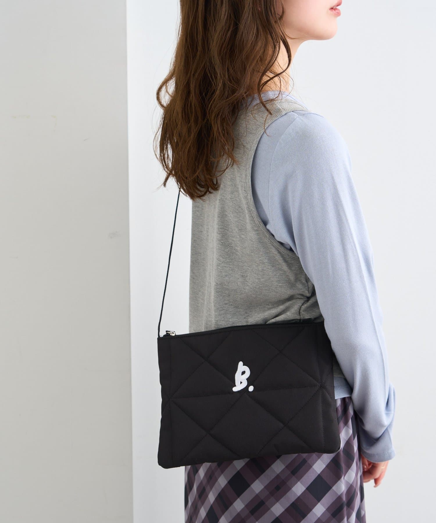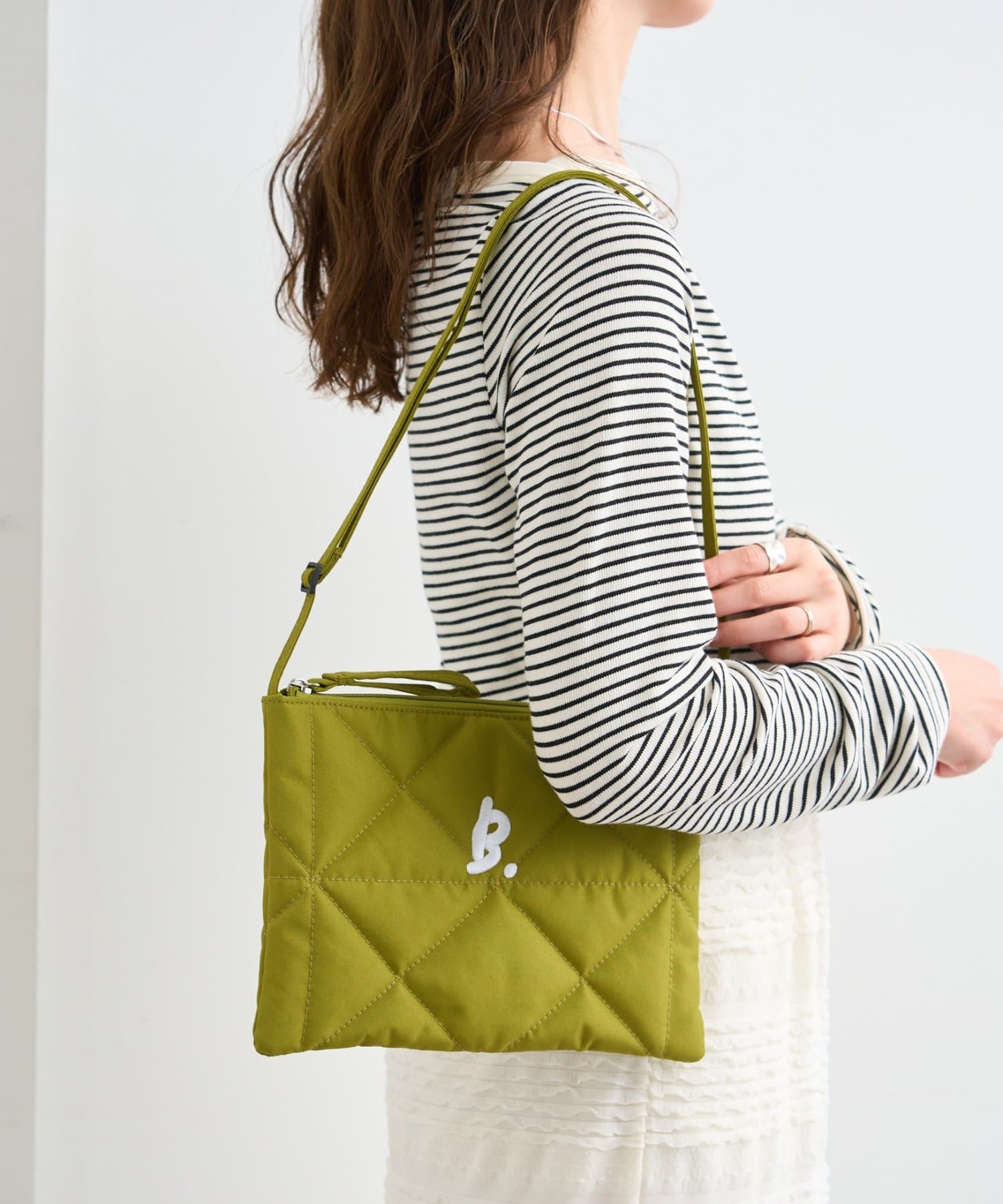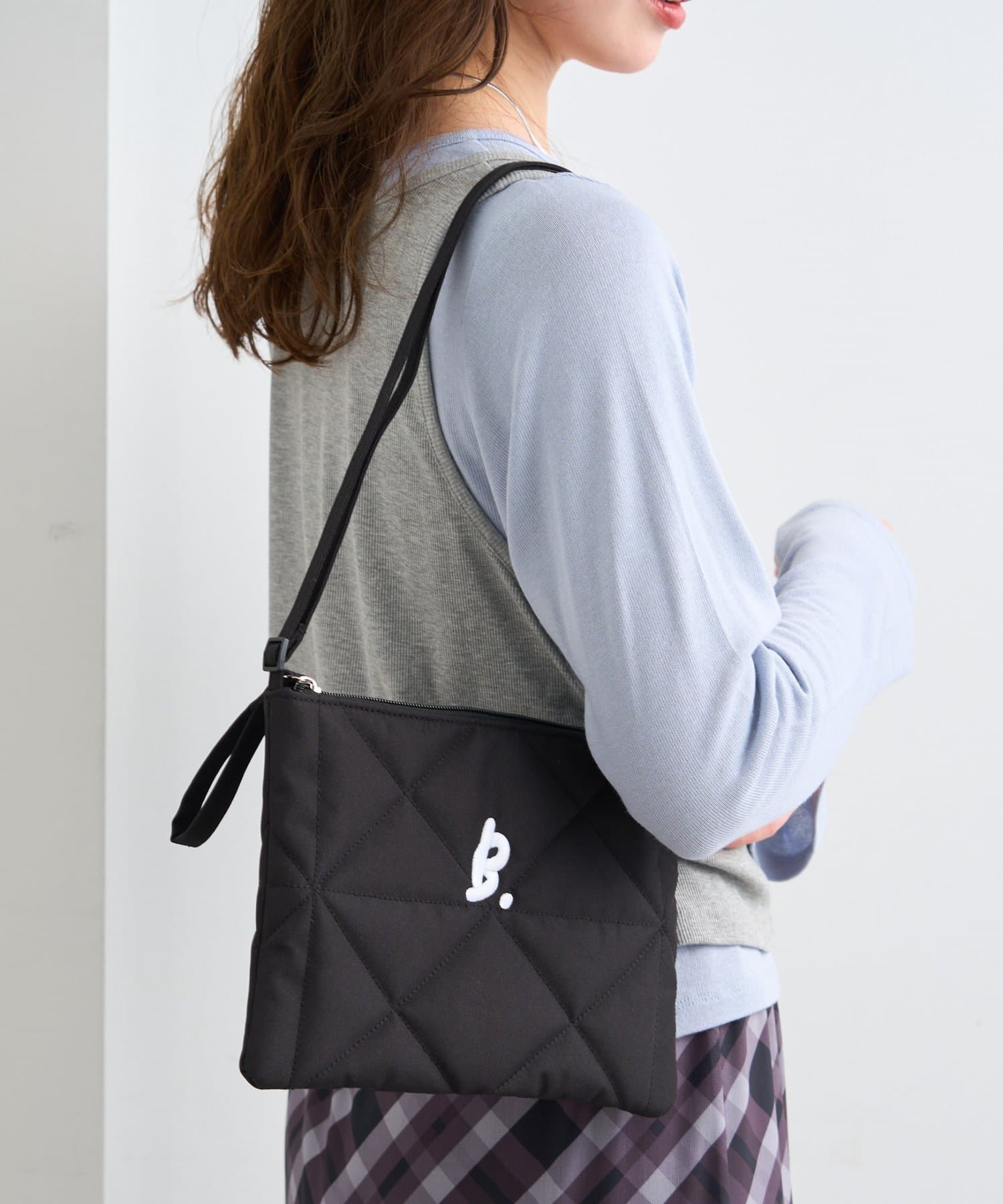 ワンポイント刺繍が効いた、軽やかキルティングサコッシュ