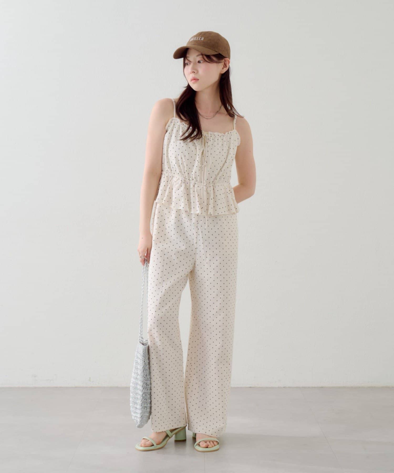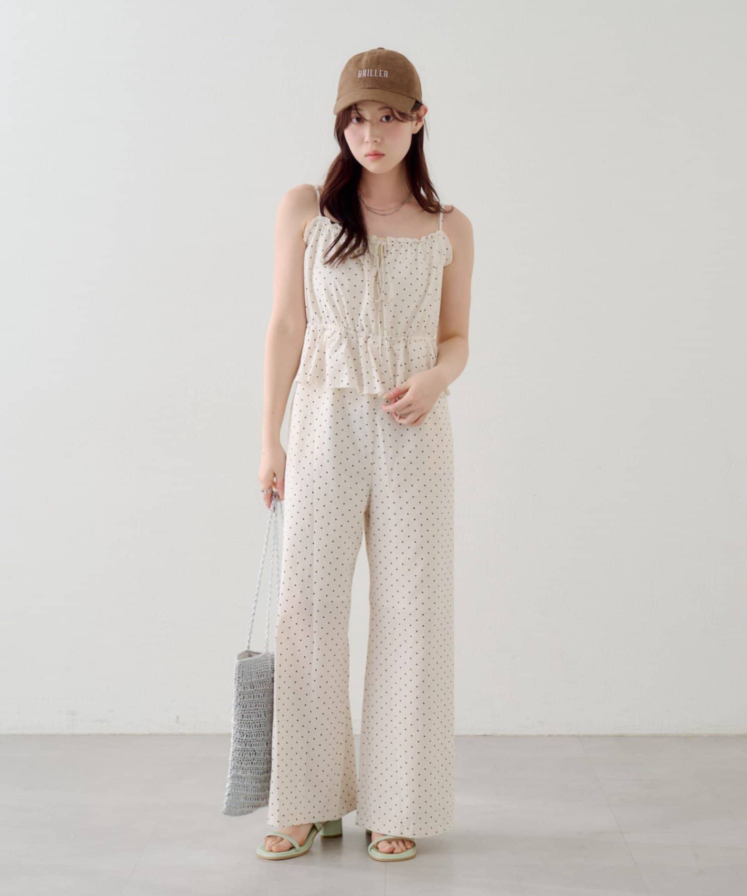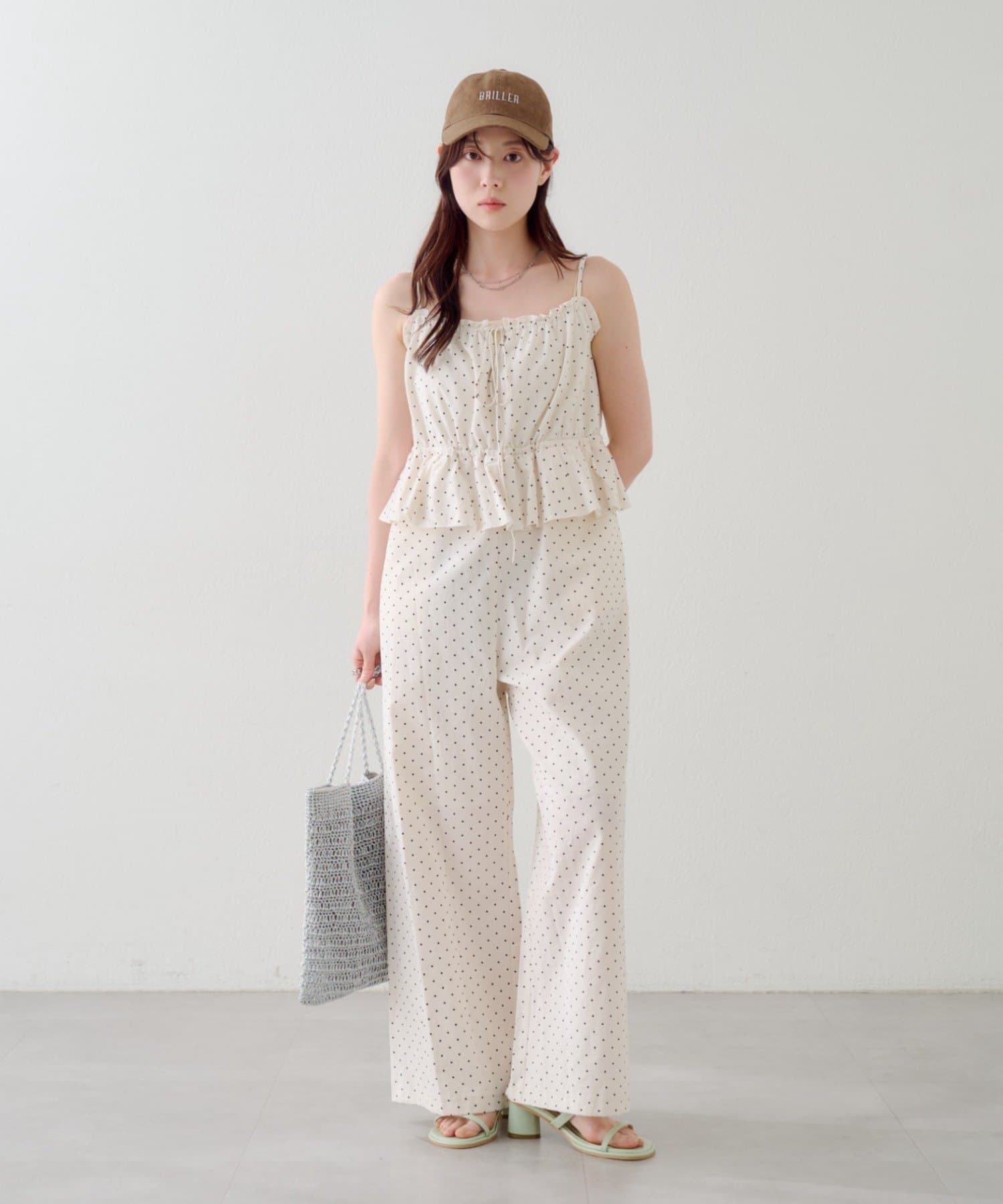 ペプラムデザインが華やかなアクセントを添えるキャミサロペット。