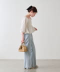 淡いライトブルーのカラーが春夏らしく、コーデに軽やかさをプラス。