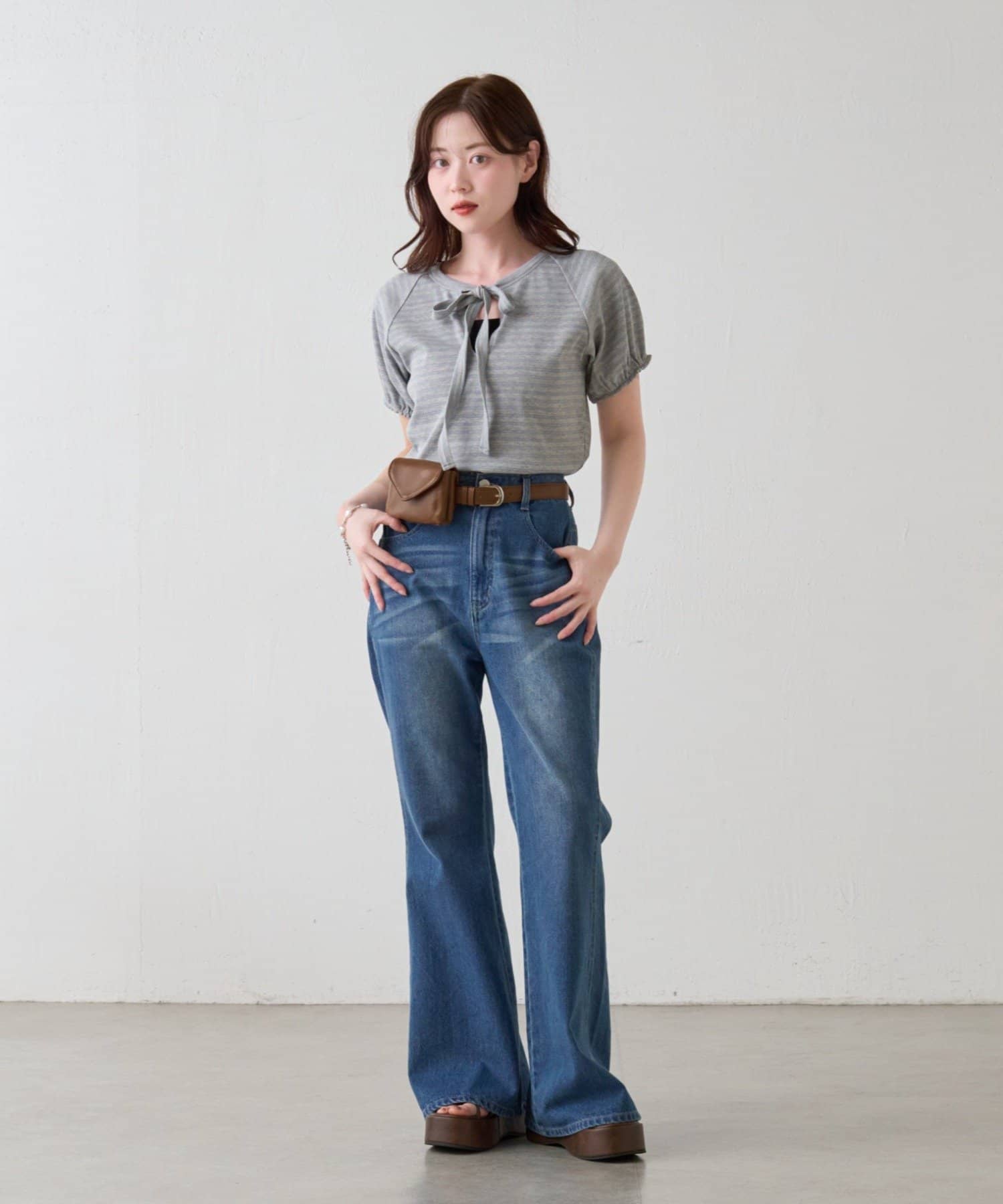 ゆるっとしたシルエットで、こなれ感を演出してくれるワイドデニム。