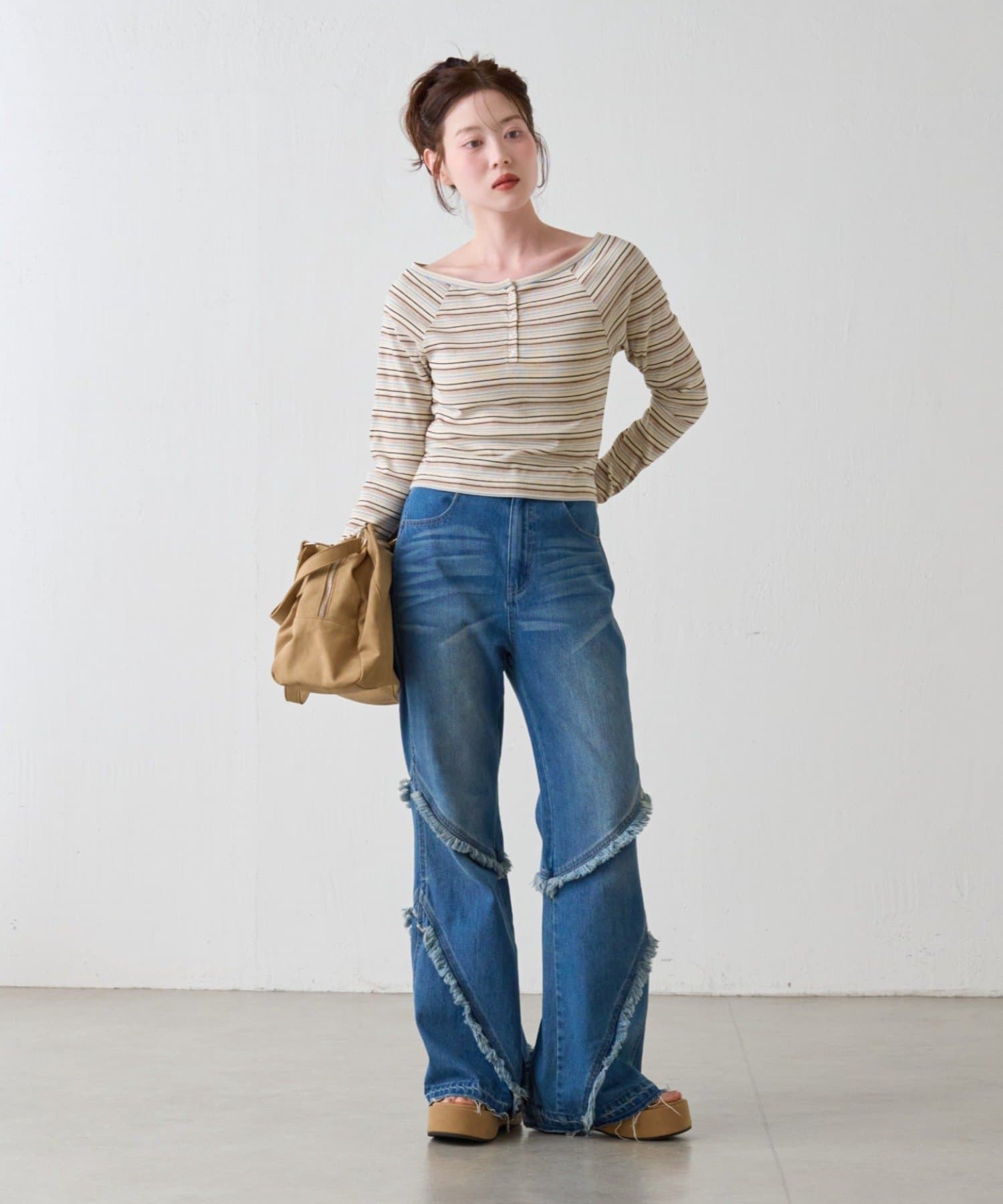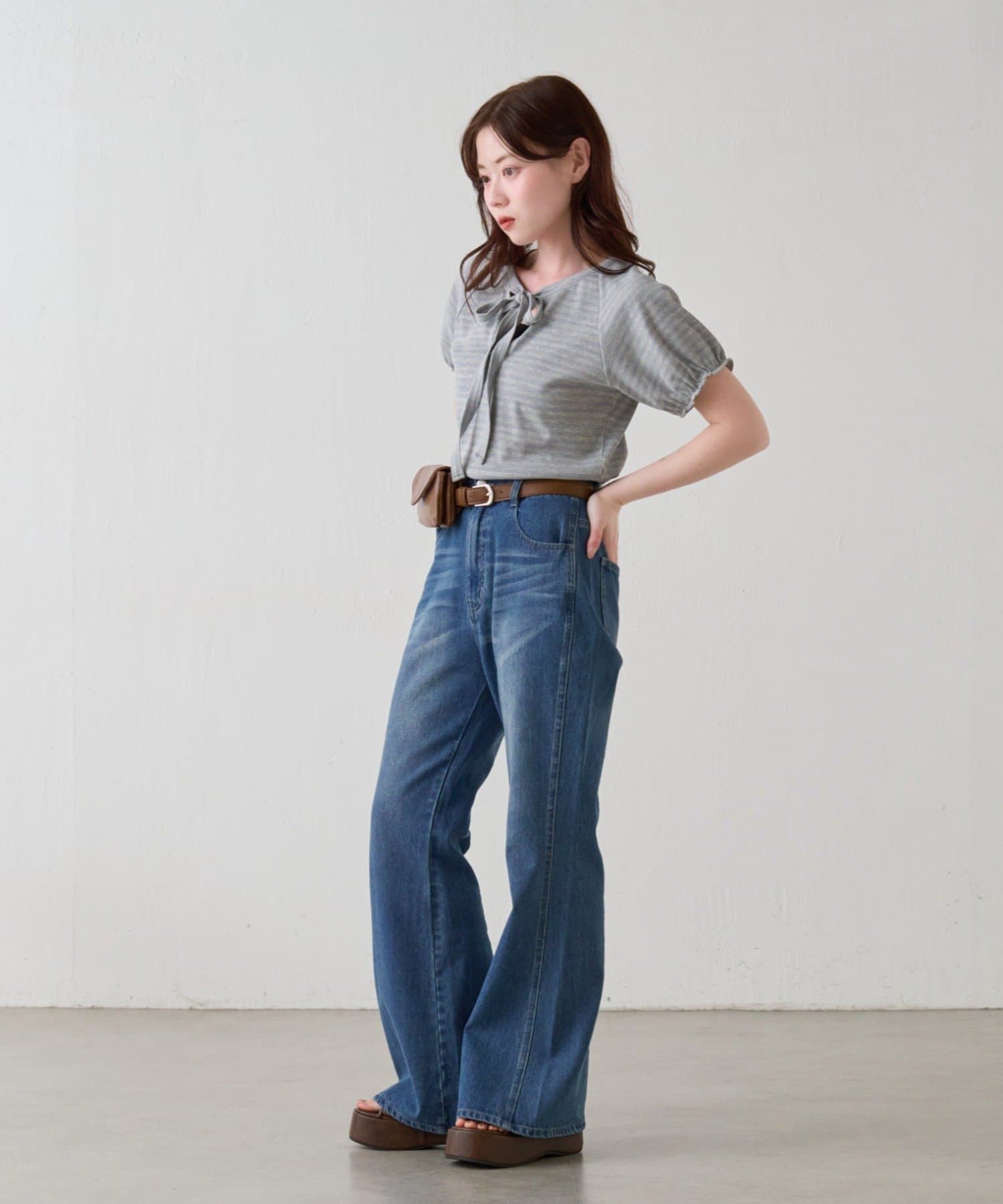 【4/5(日)0:00発売/4色展開】フレアデニムパンツ