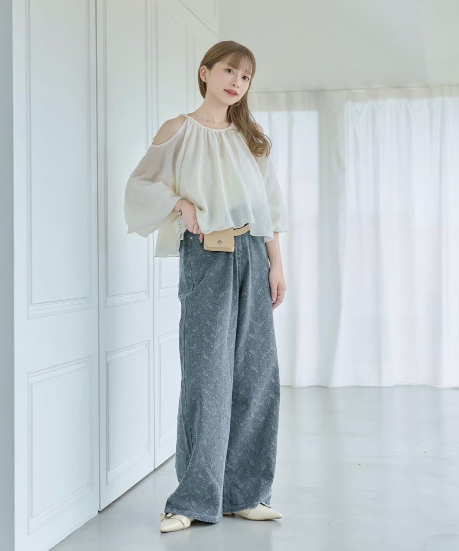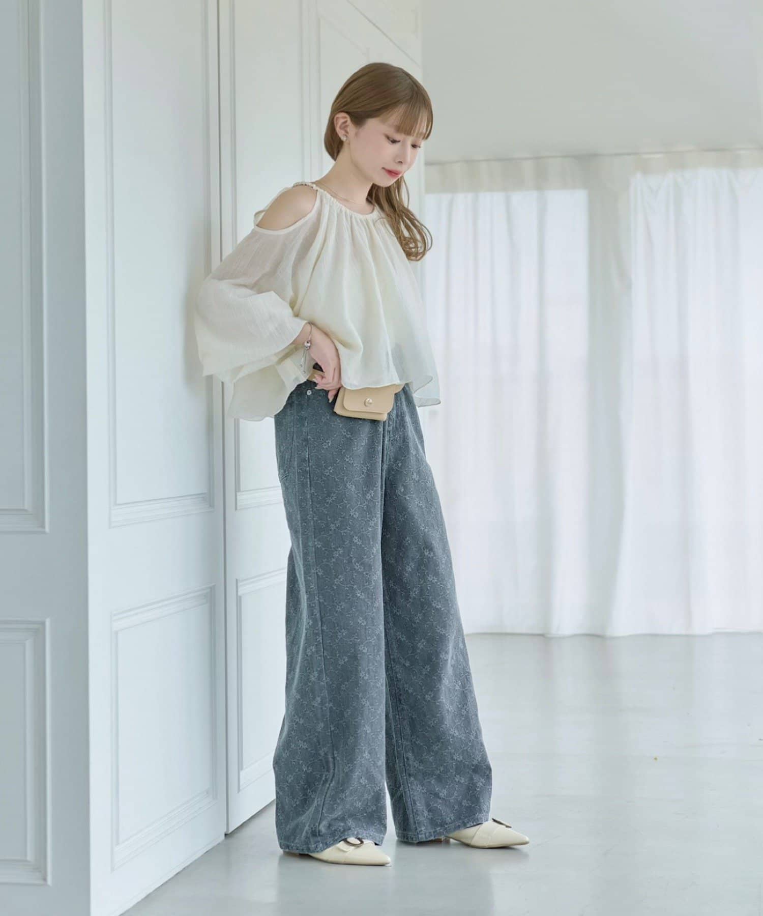 人気のフラワーエンブロイダリーデニムにワイドver.が登場!