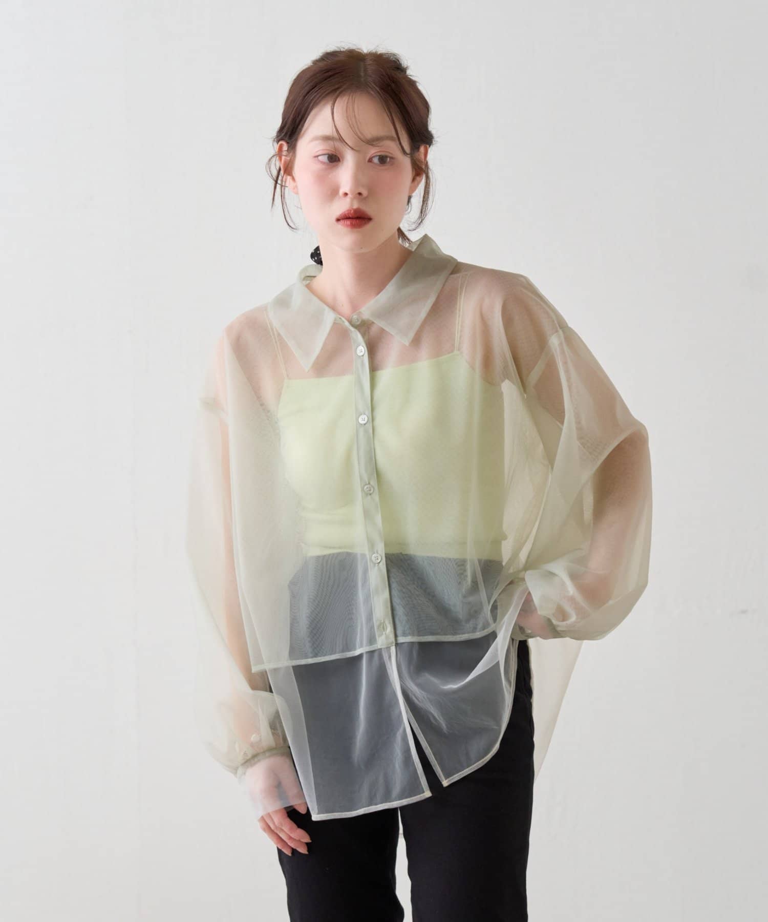 透け感で差がつくレイヤード風シャツ
