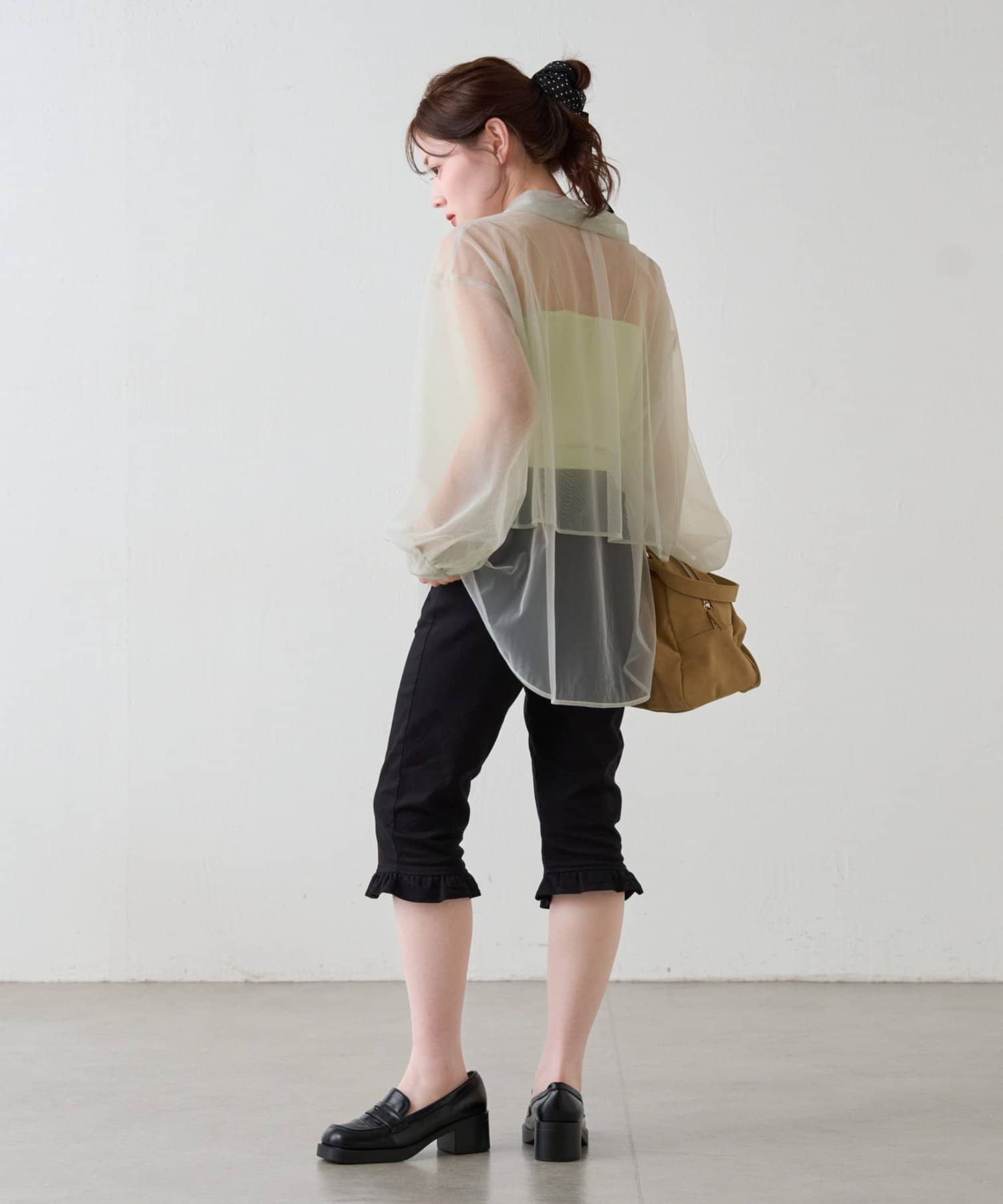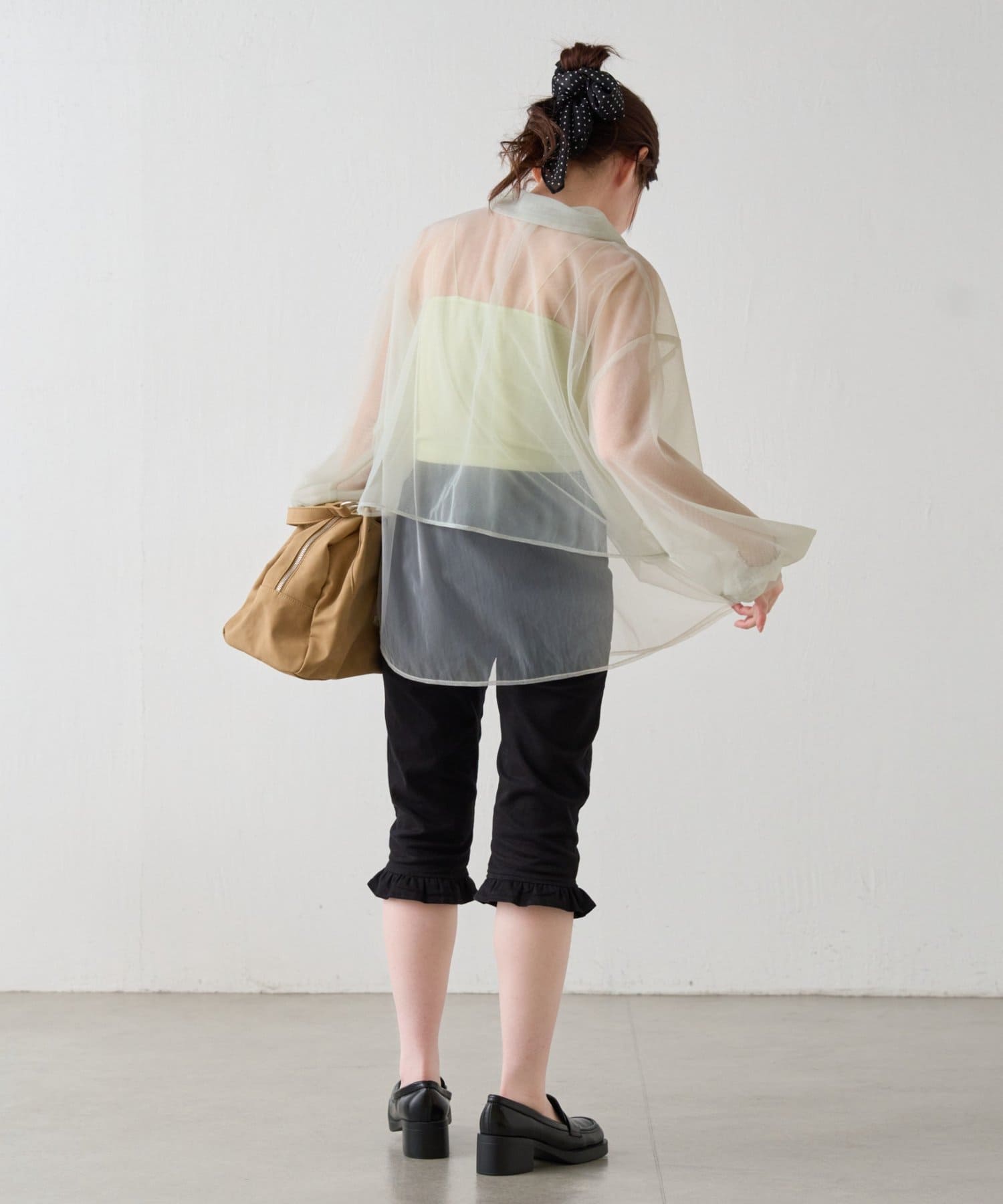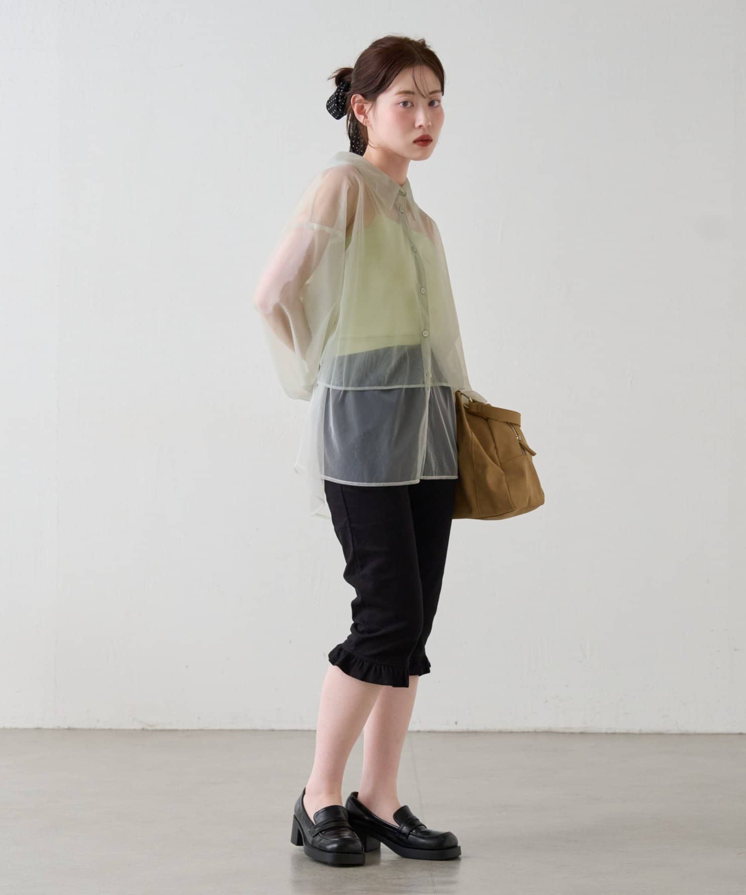 軽くて柔らかいシアー素材。程よい透け感で春夏らしい涼しげな印象に。