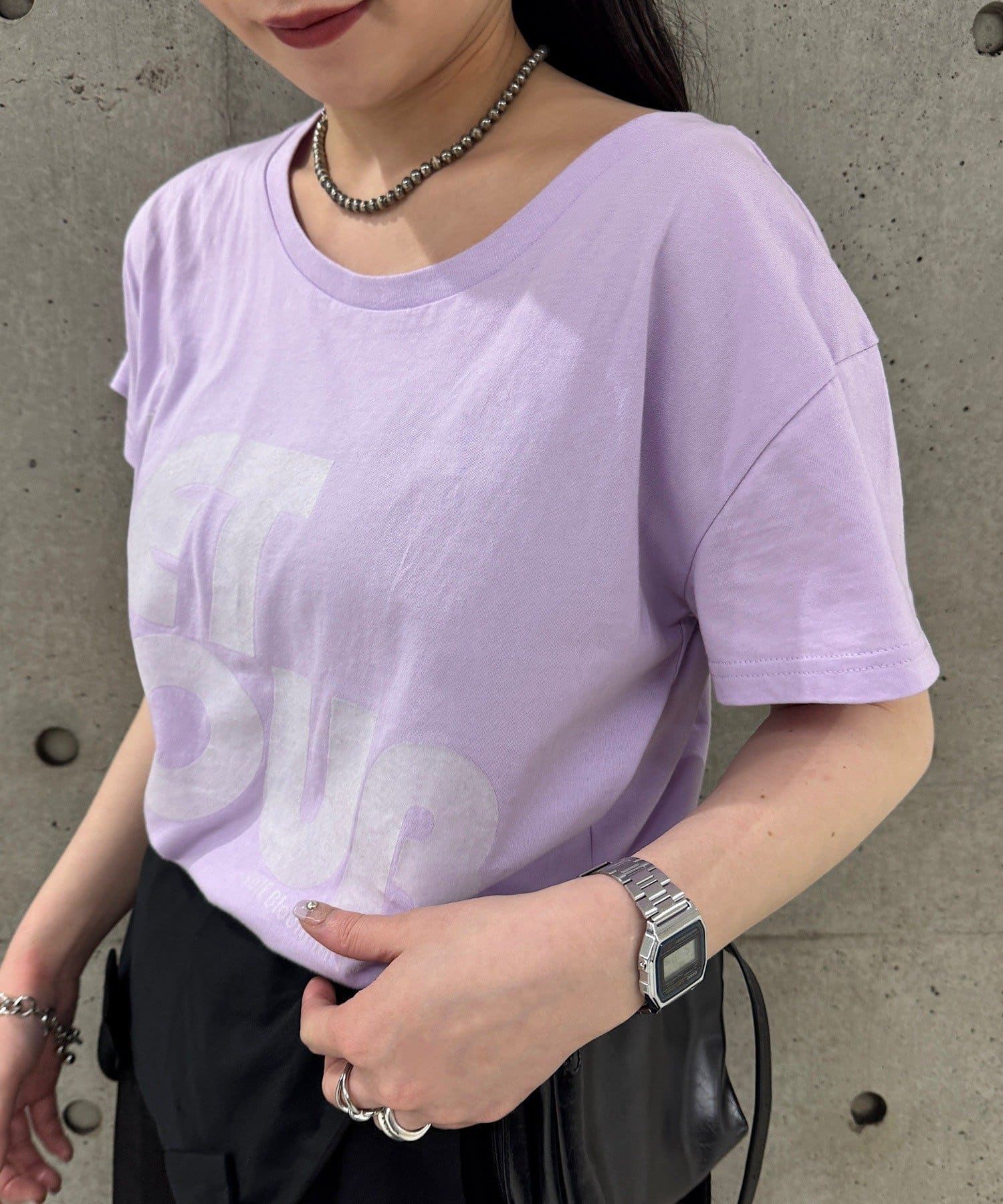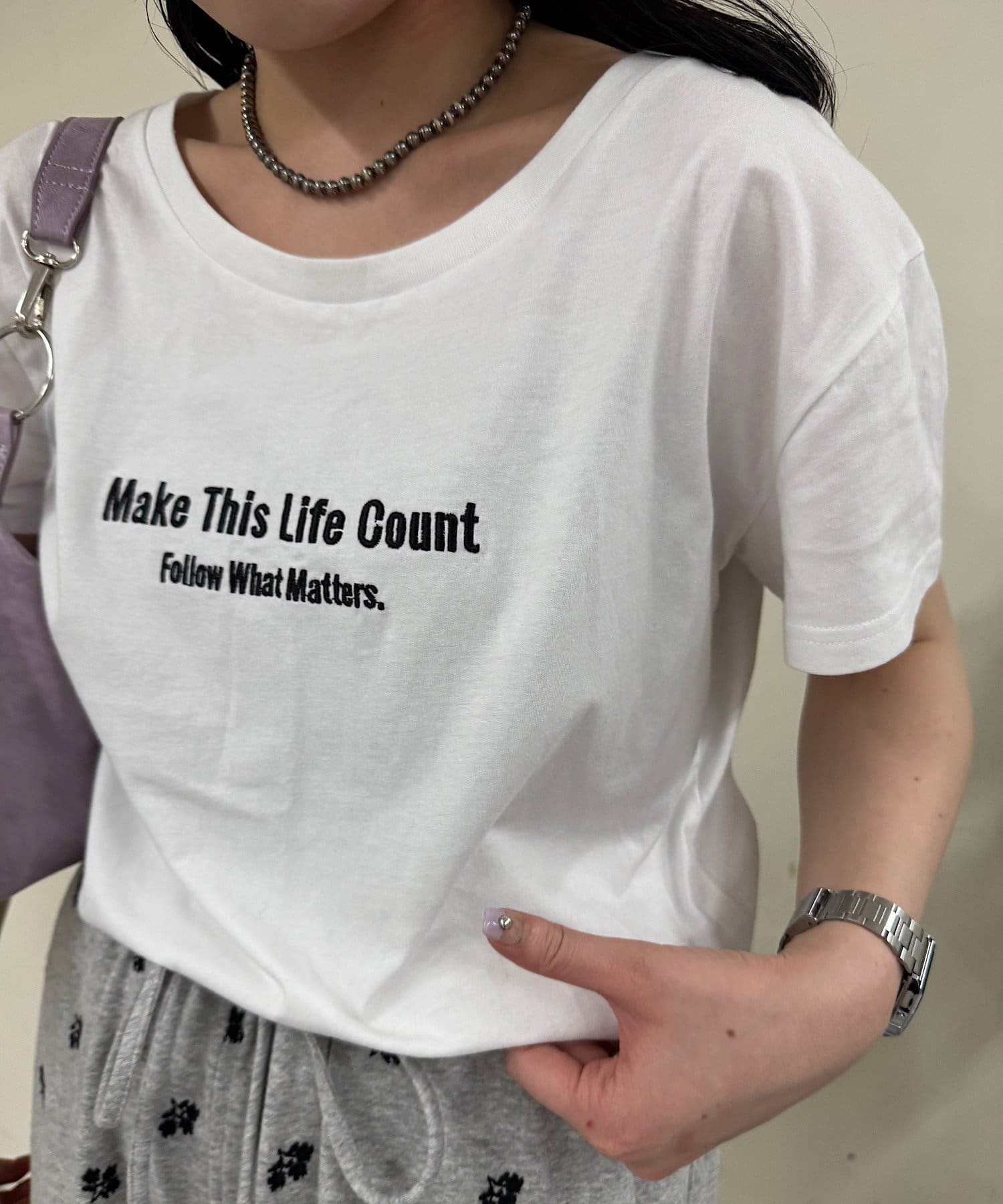 ベーシックに使えるシンプル白Tと、カラーがアクセントになるカラーTデザインの組み合わせ。