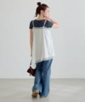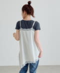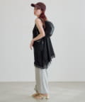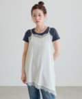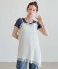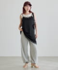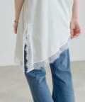 軽やかで落ち感があり、動くたびに女性らしいニュアンスを演出します。レース部分は繊細で柔らかく、肌当たりもやさしい仕上がりです。