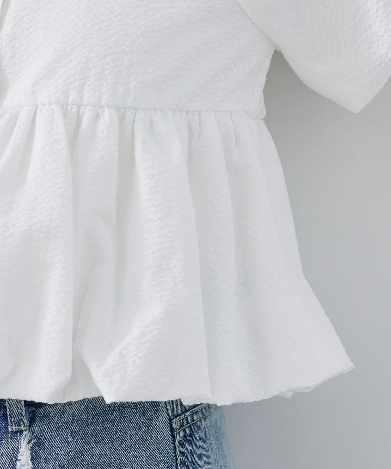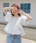 ウエストからふんわり広がるペプラムシルエットでスタイルアップも叶う一枚。