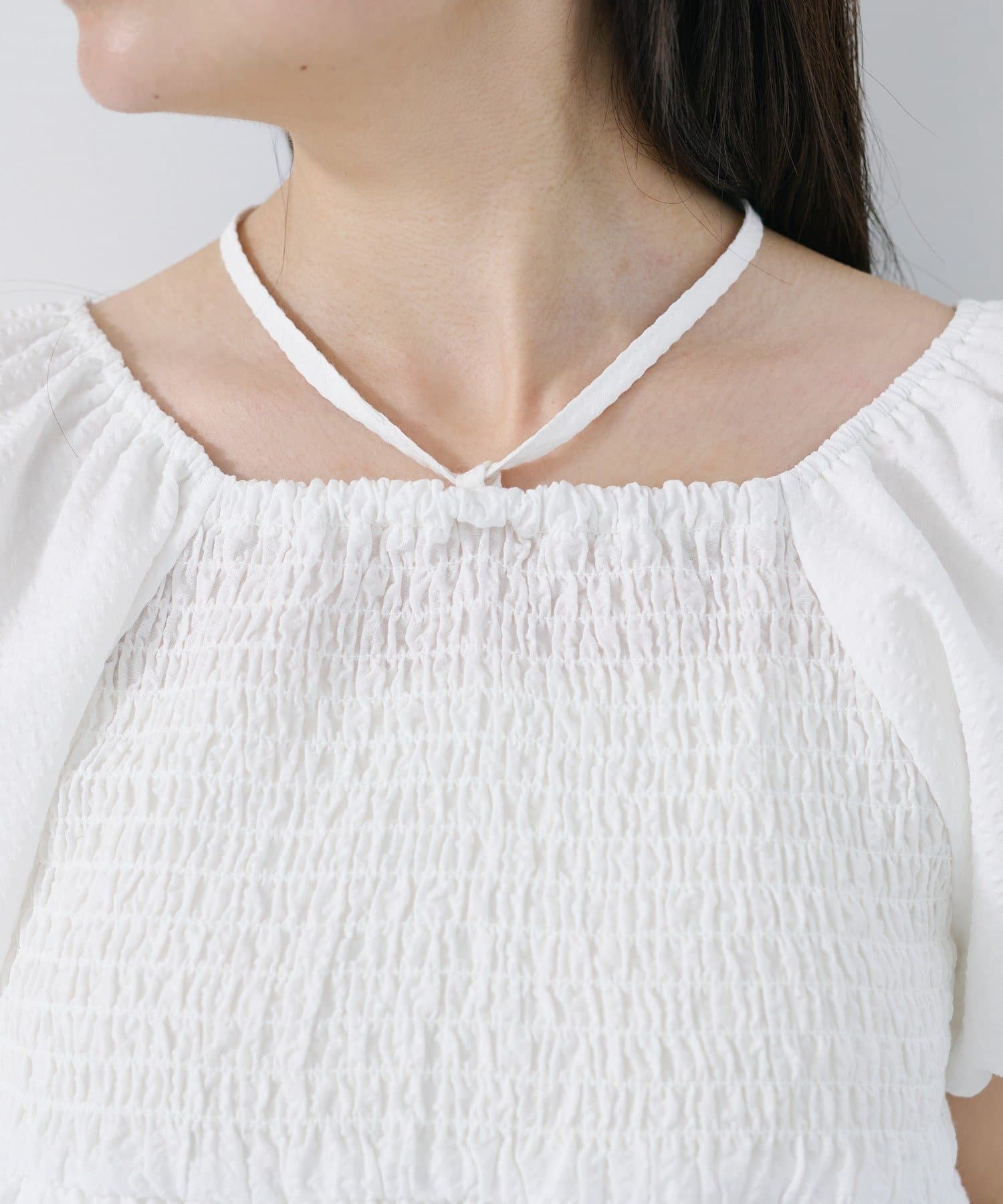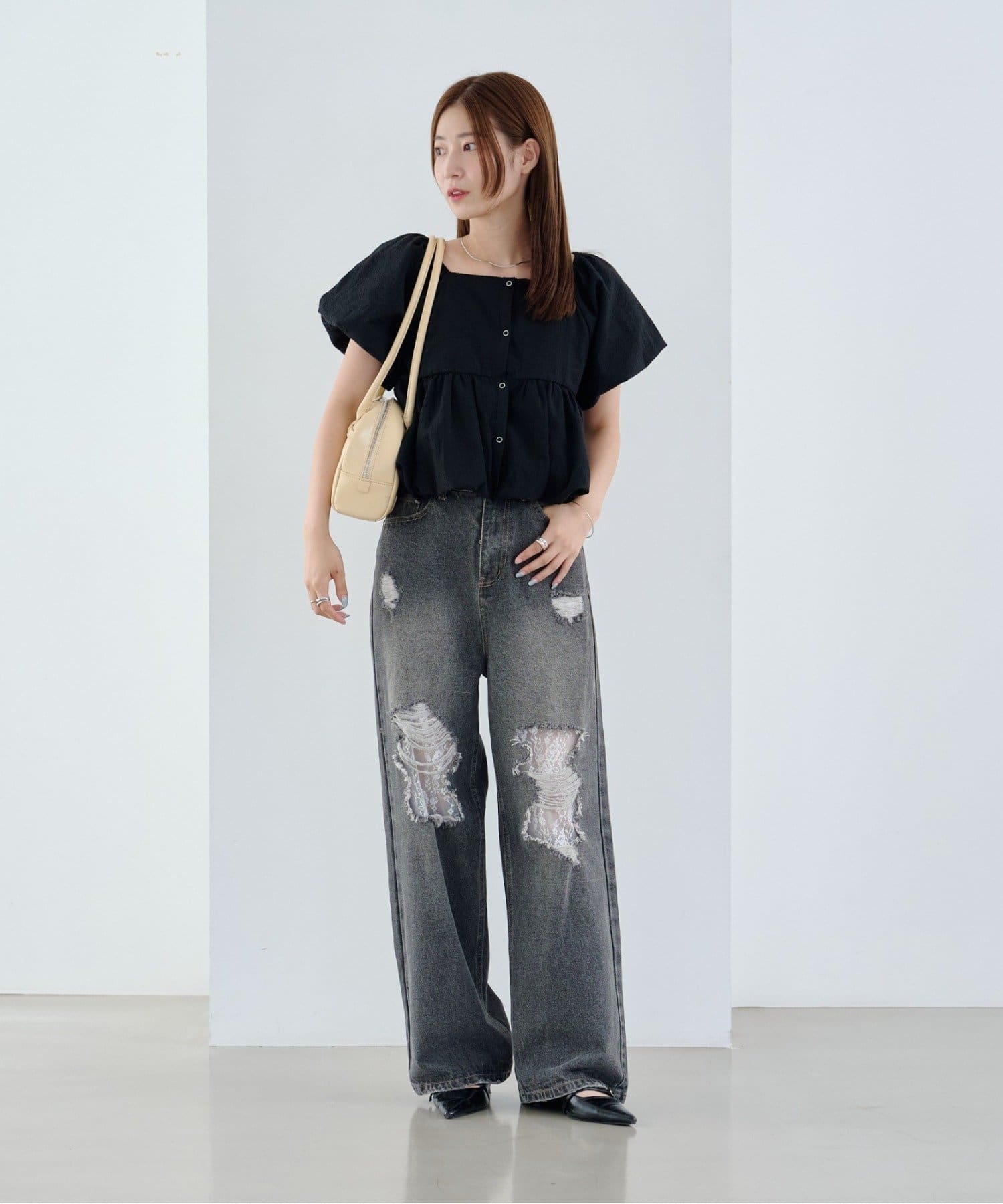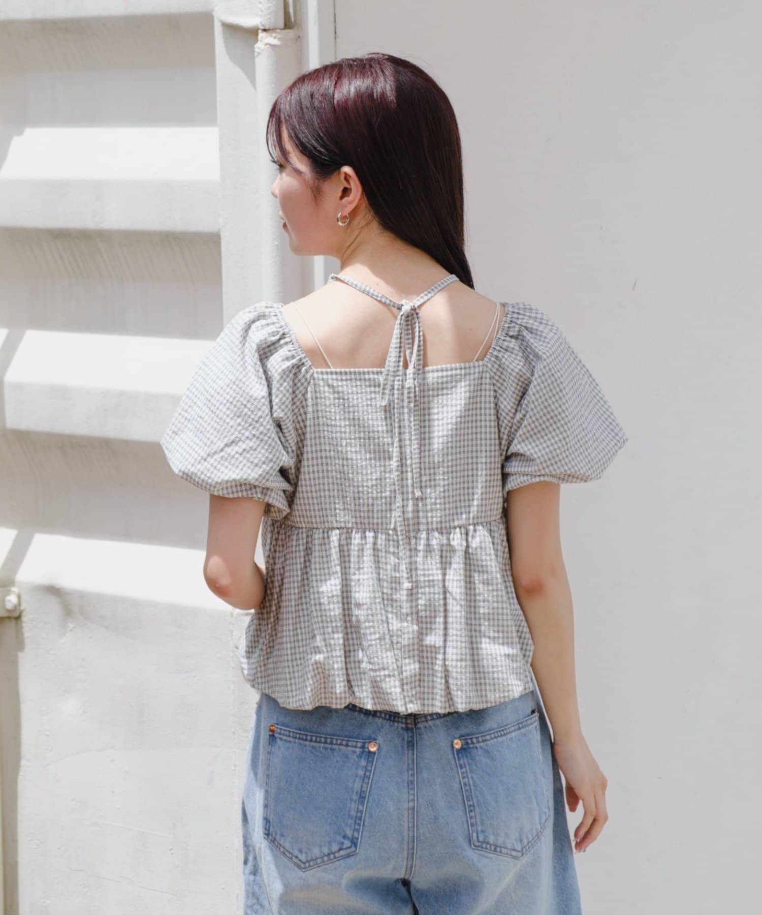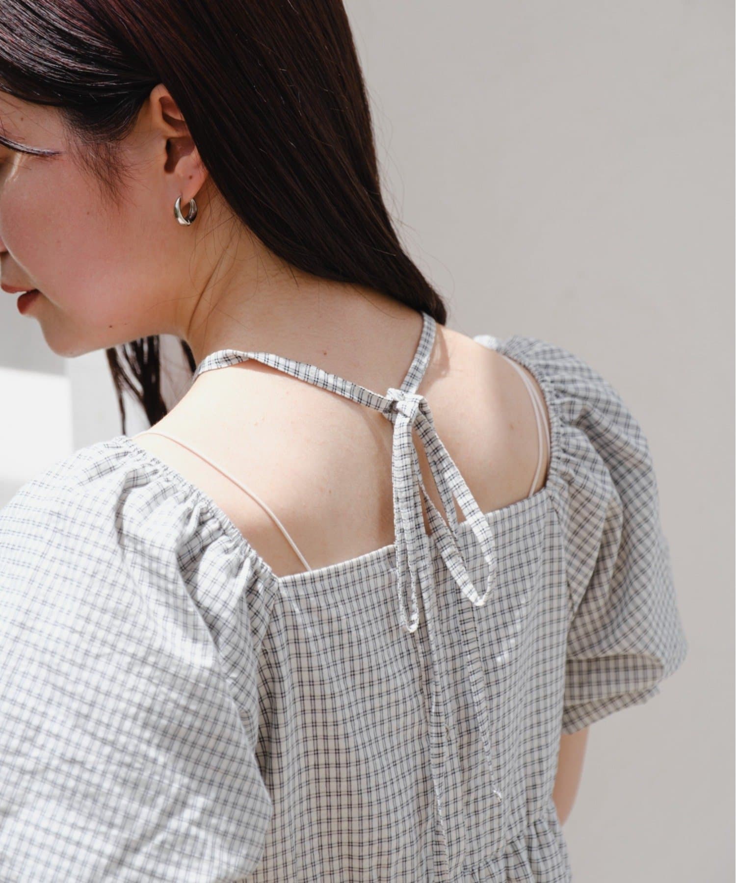 ボリュームのあるパフスリーブが華奢見えに。