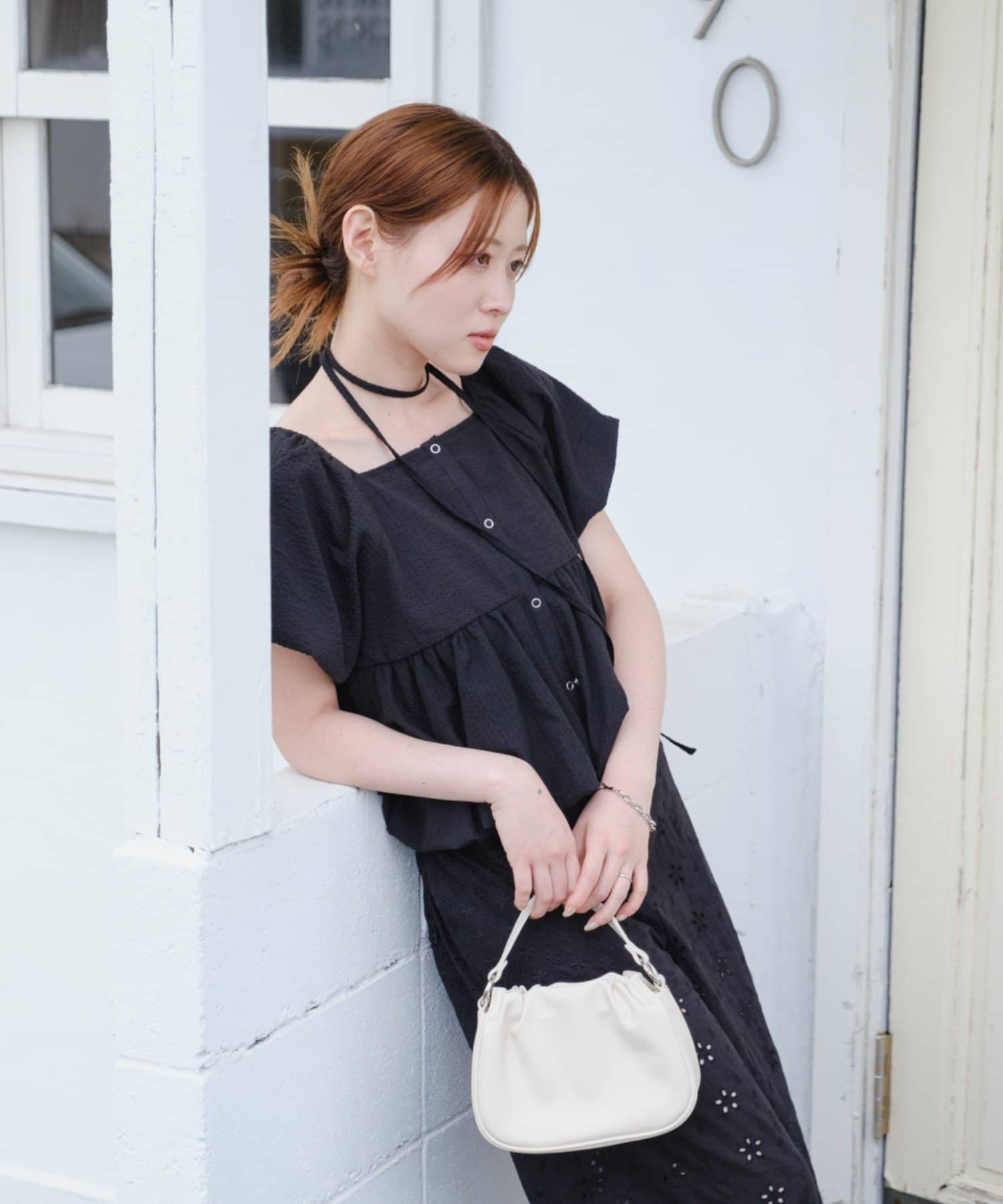 首紐は取り外し可能でホルダーネックにもチョーカー風にも使えます。