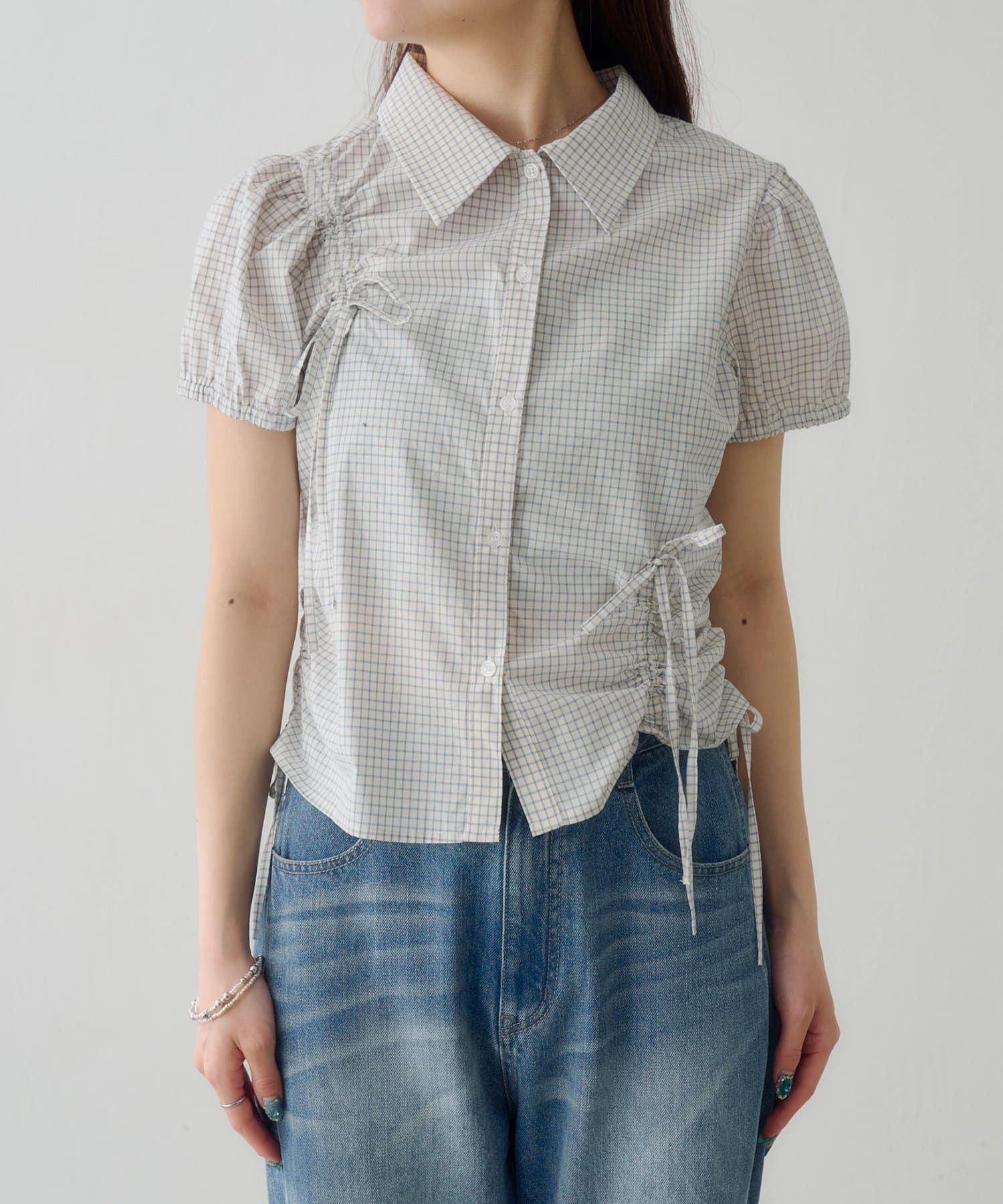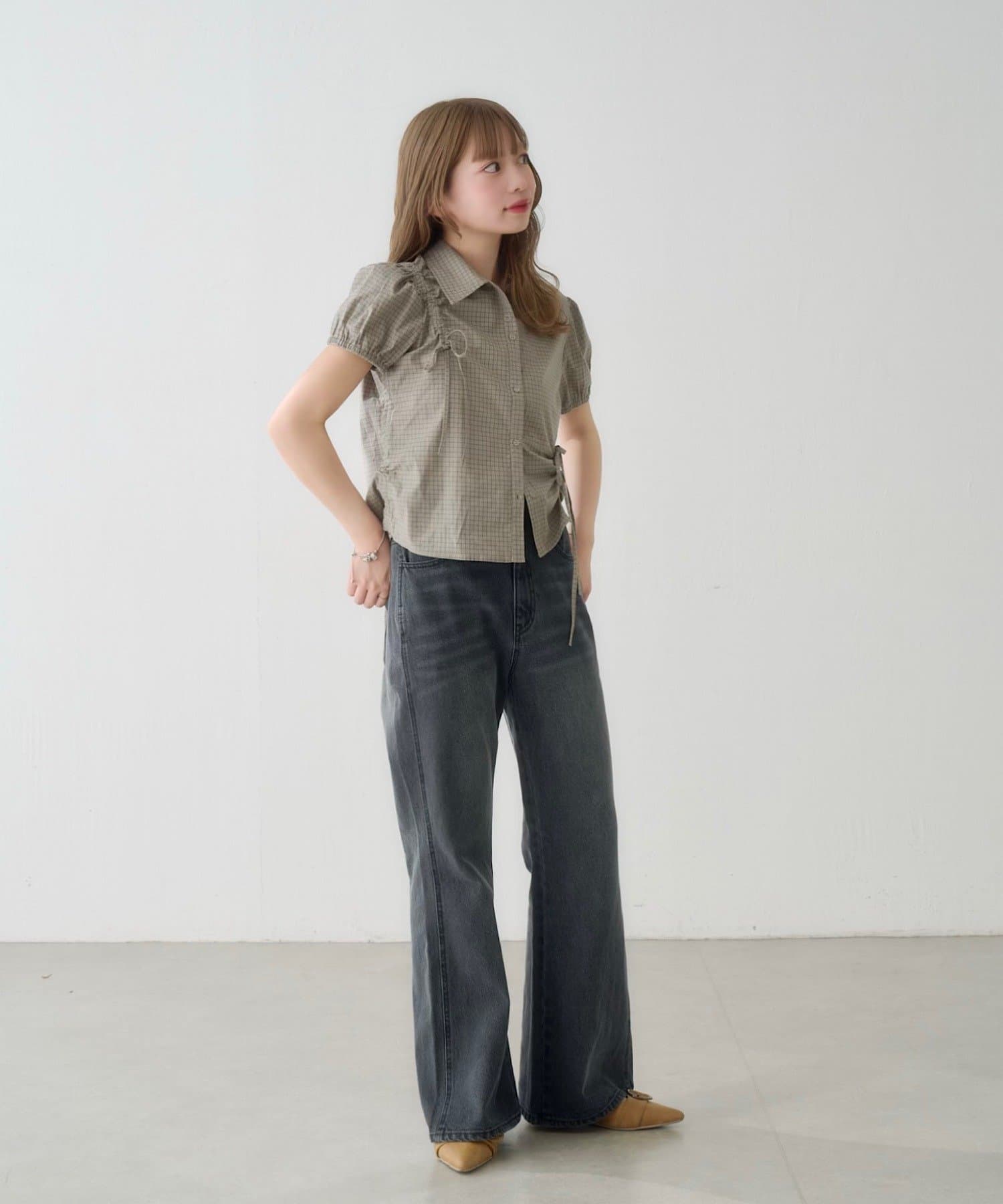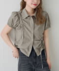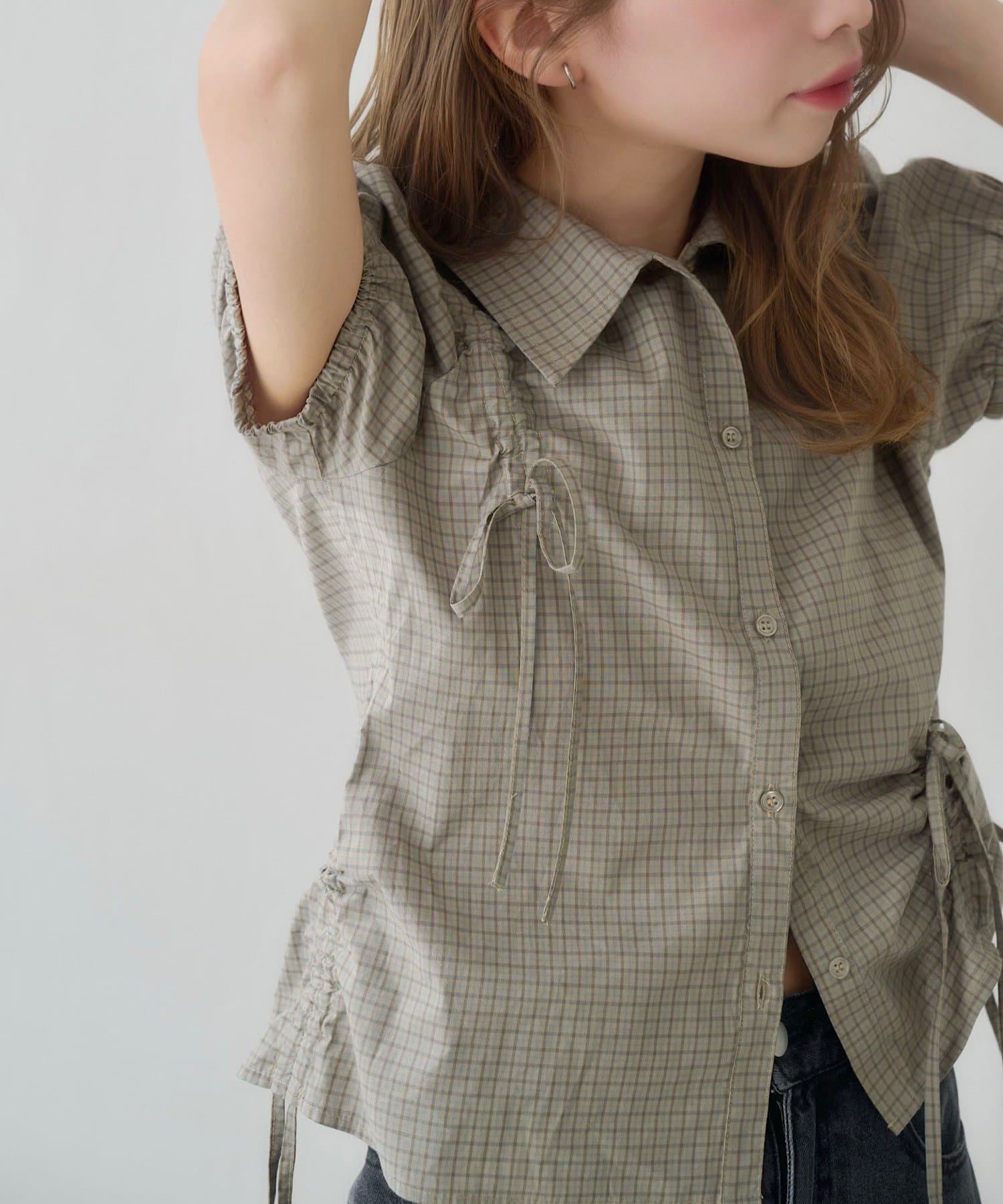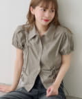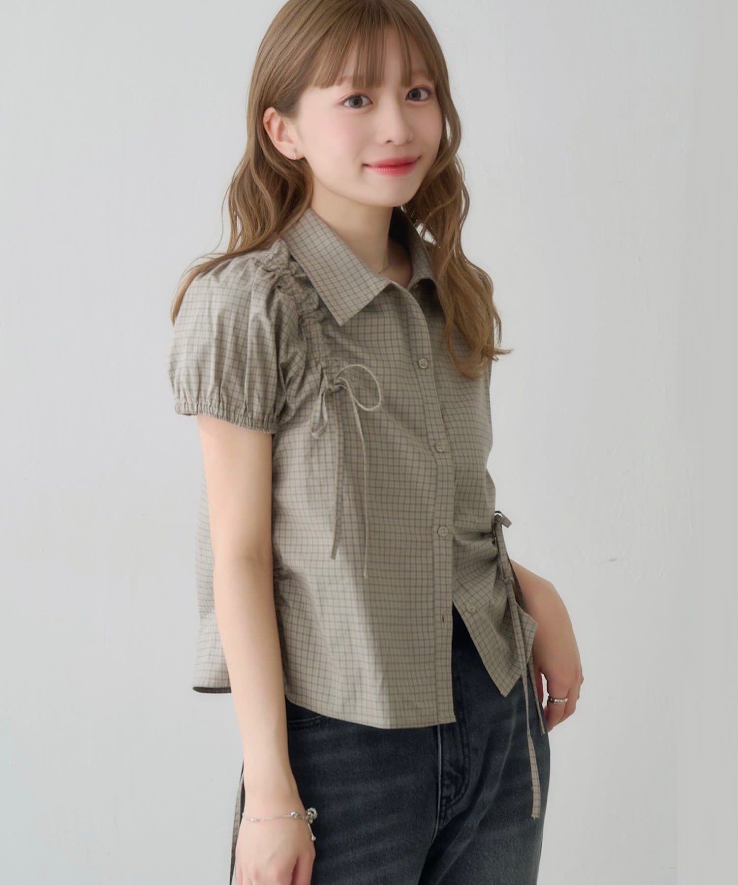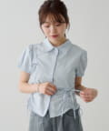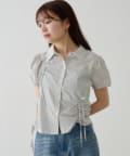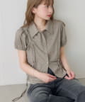 立体感のあるパフスリーブと、サイドのリボンディテールが印象的なデザインシャツ。