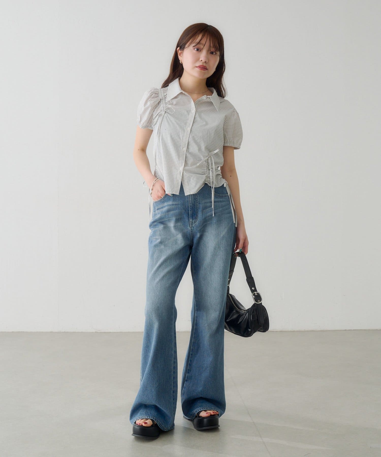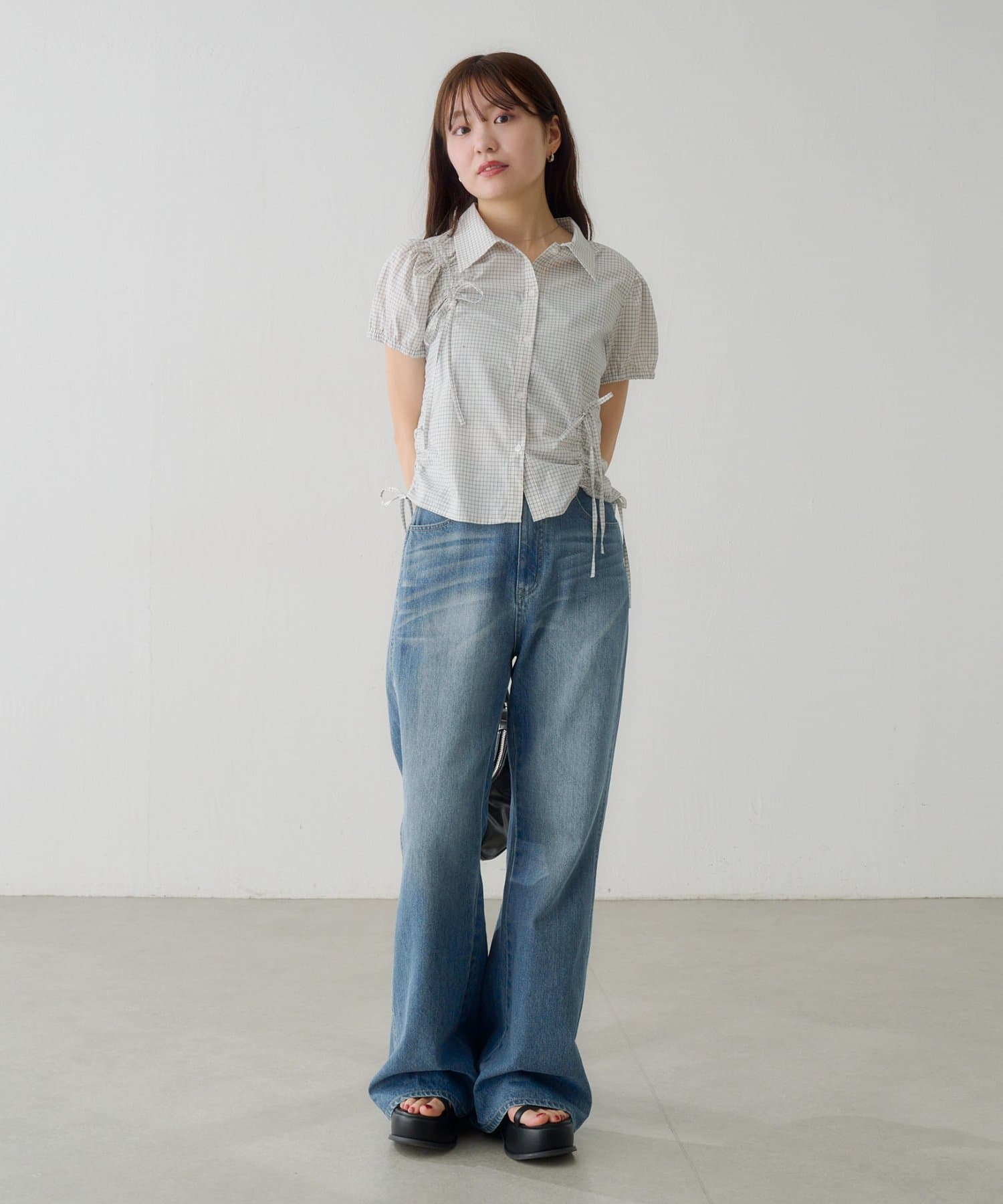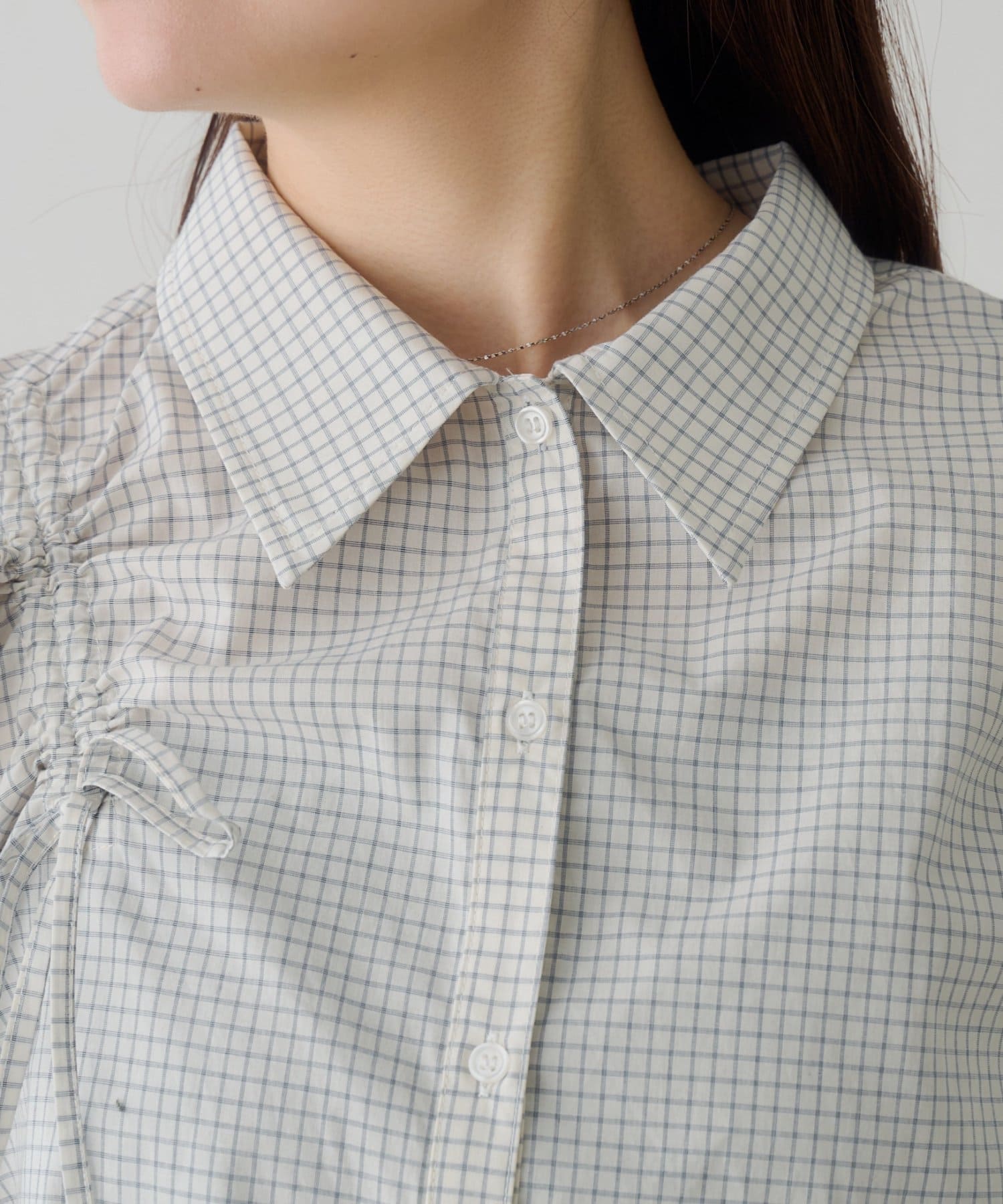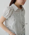 【WEB先行/チェック&無地】パフリボンシャツ