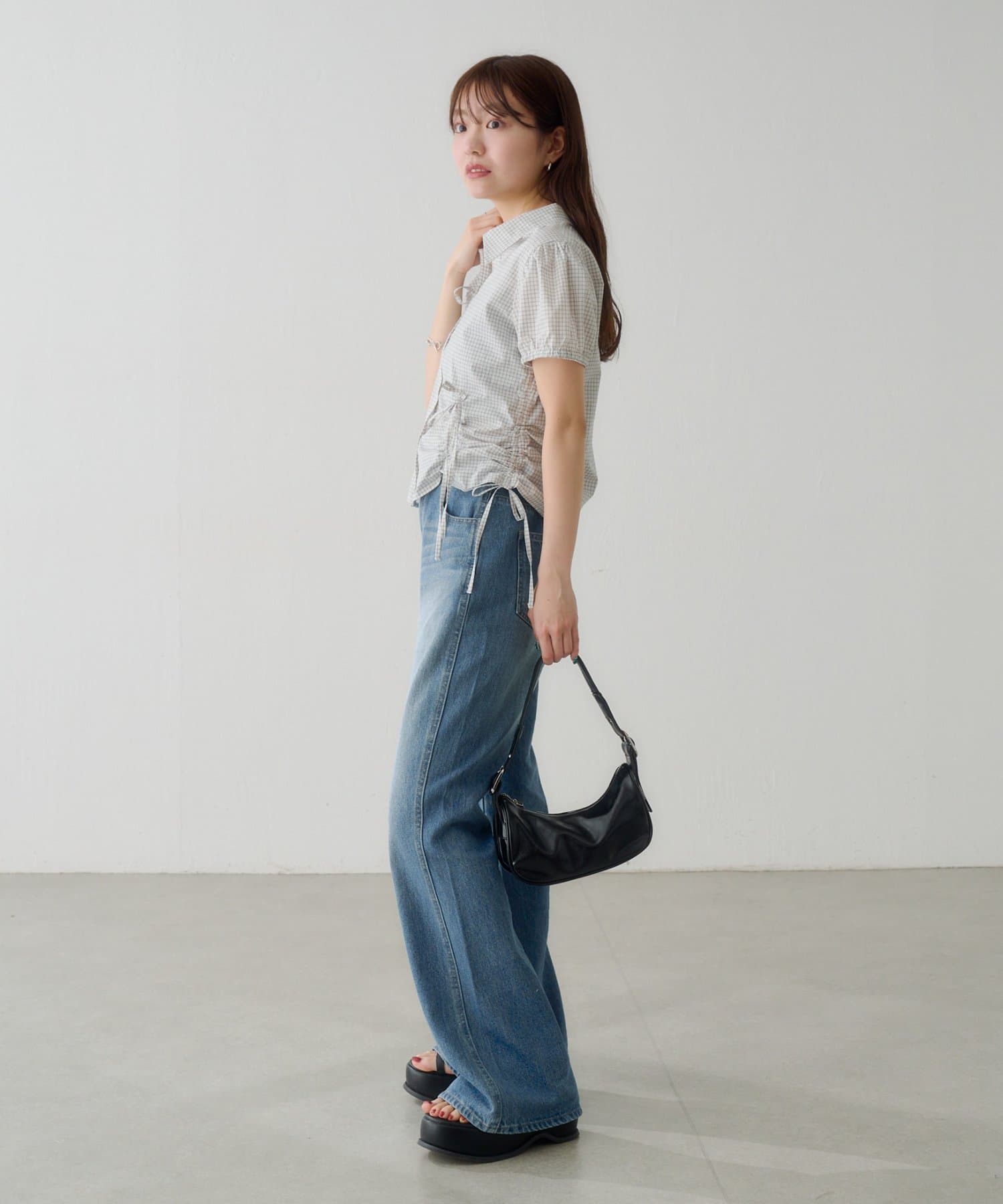 フレア、ストレートデニムと合わせて、抜け感のある大人カジュアルに。コンパクトなトップスが脚長効果を演出し、バランスの良いシルエットに仕上がります。