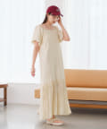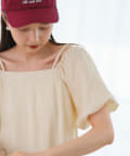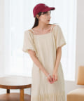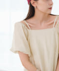 すっきりと開いたスクエアネックが、デコルテラインを綺麗に魅せてくれます。